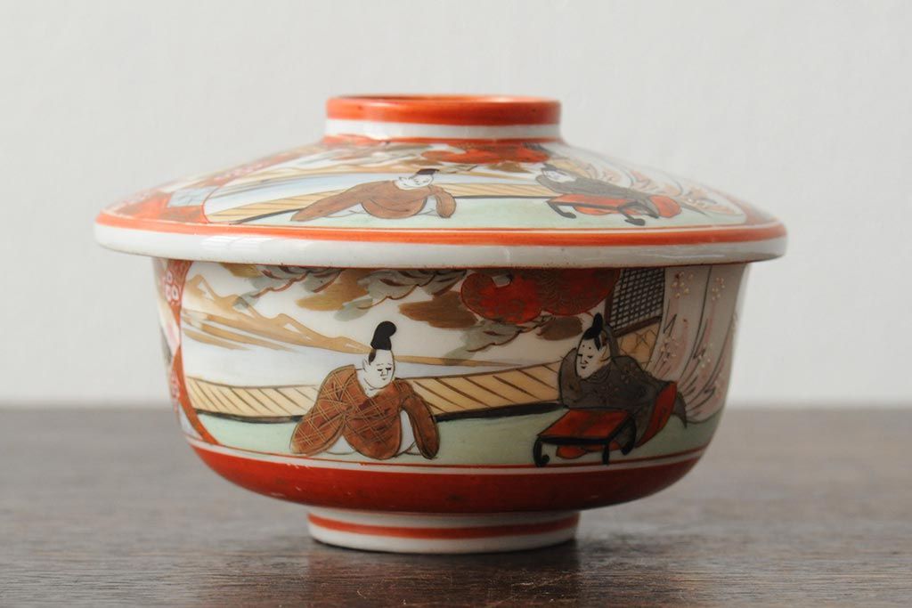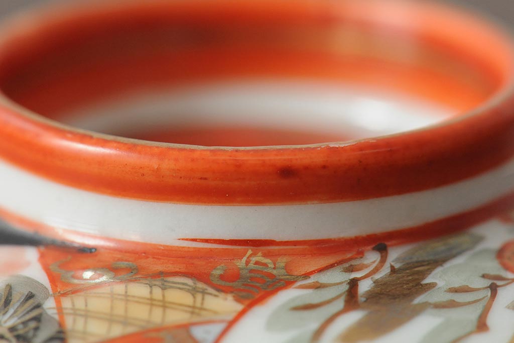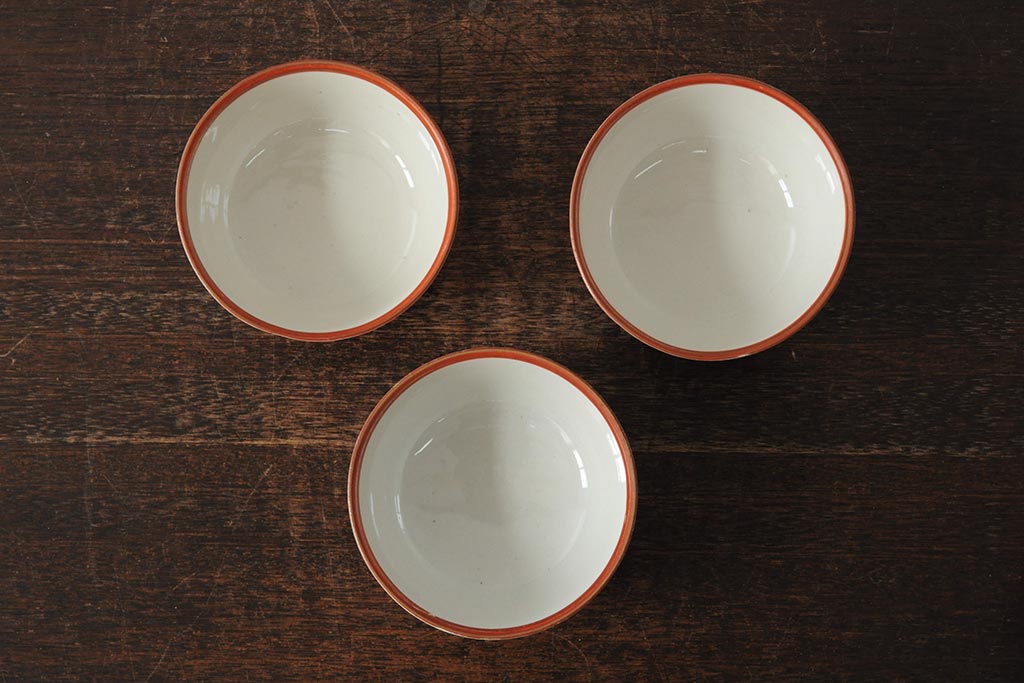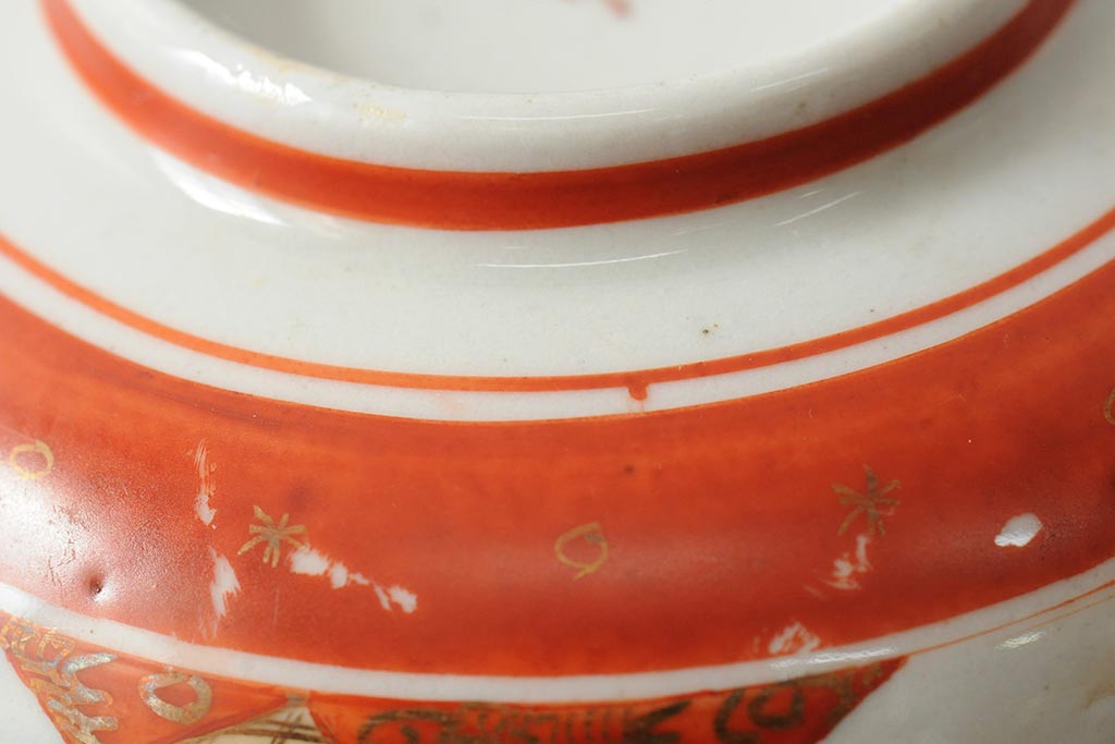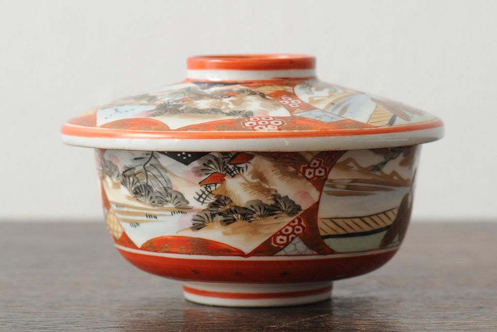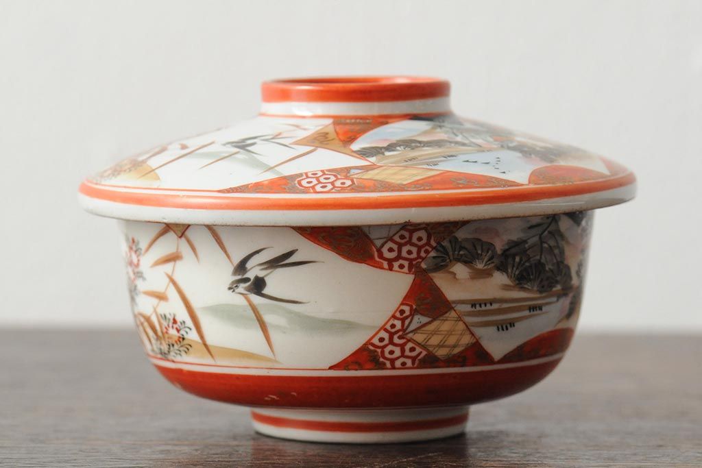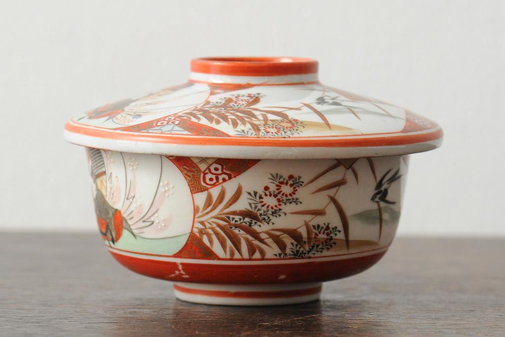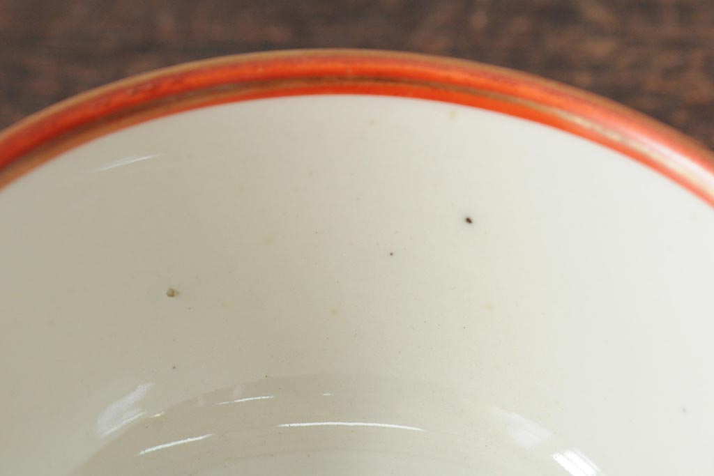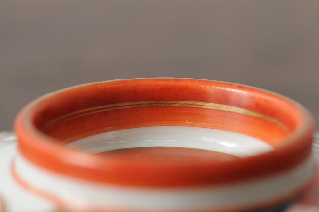 アンティーク雑貨 明治期 九谷焼赤絵蓋茶碗3客(和食器)(R-043515)