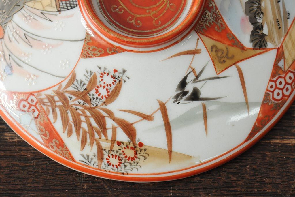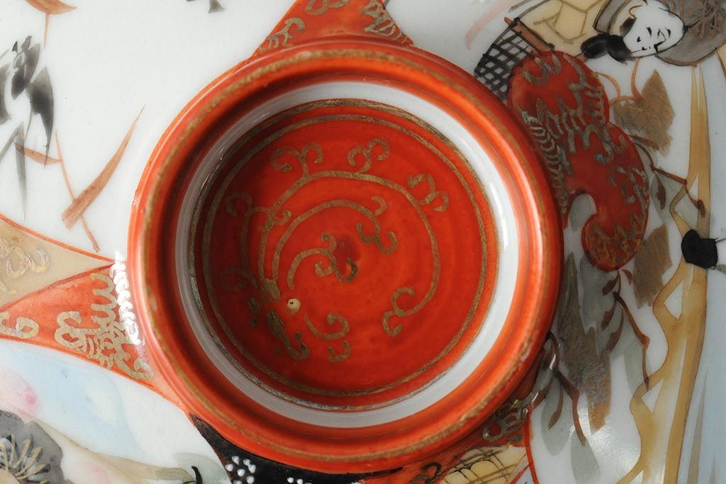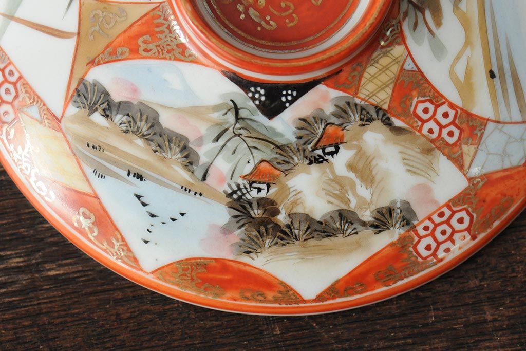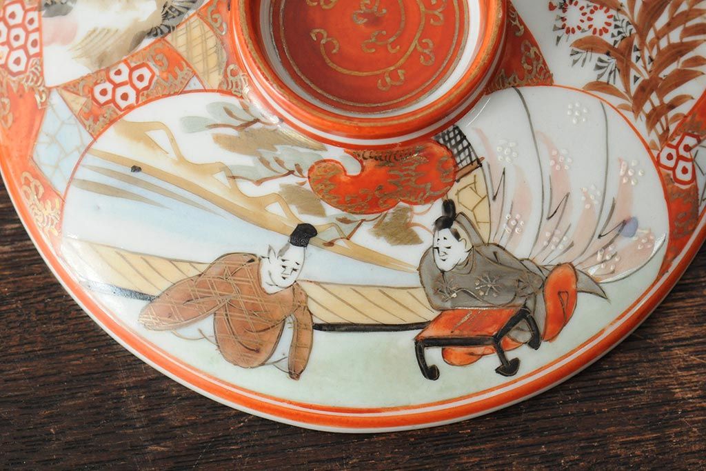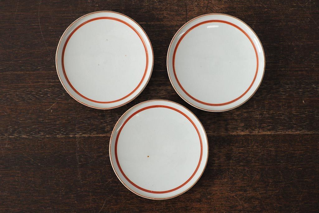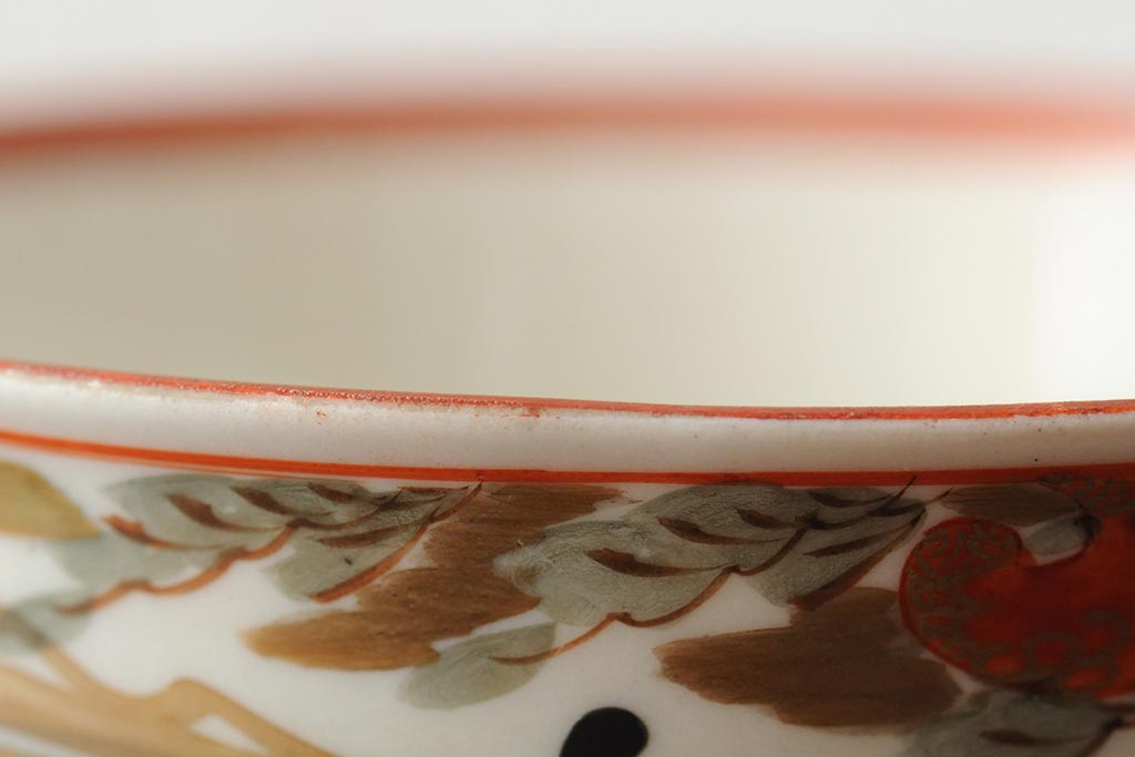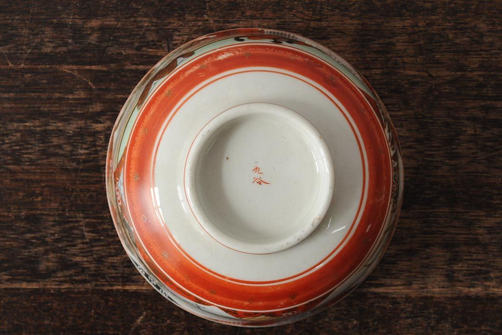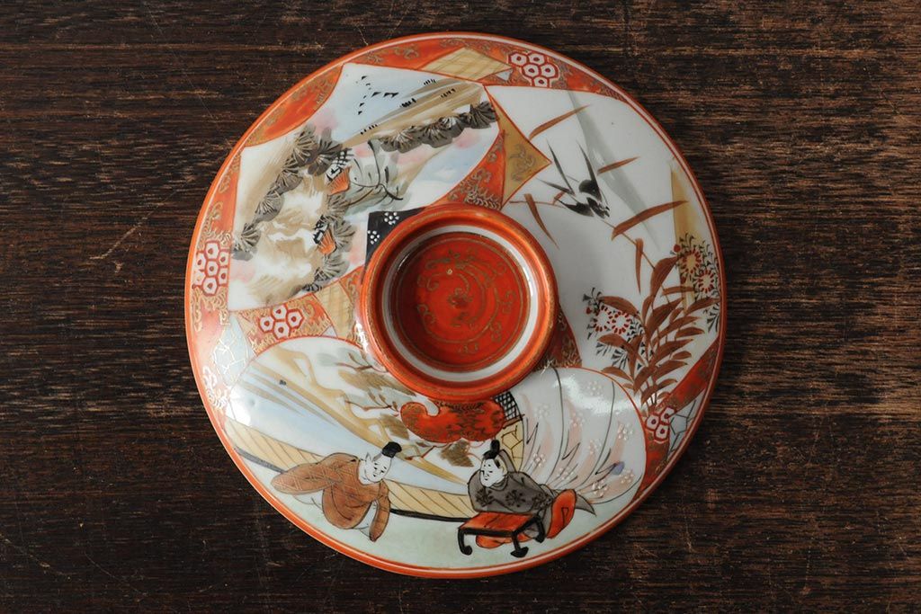 アンティーク雑貨 明治期 九谷焼赤絵蓋茶碗3客(和食器)(R-043515)