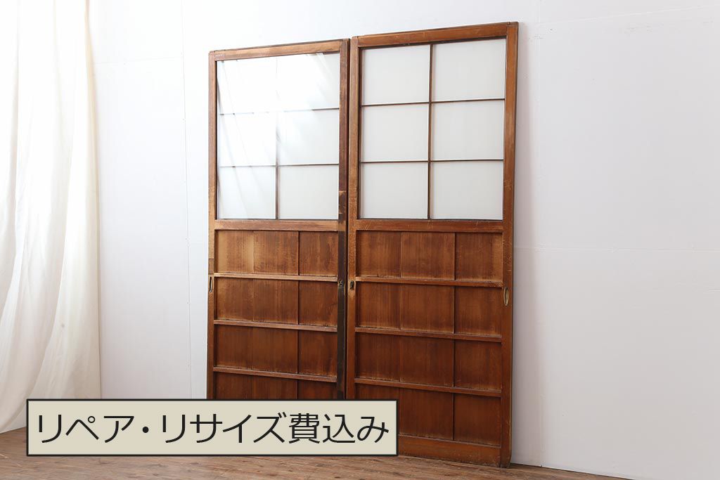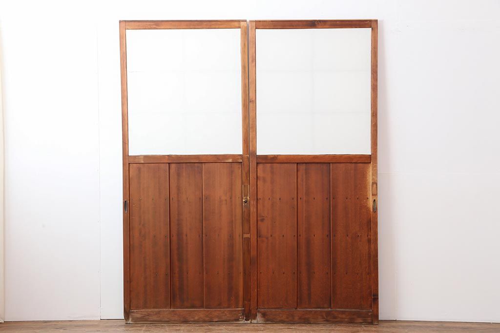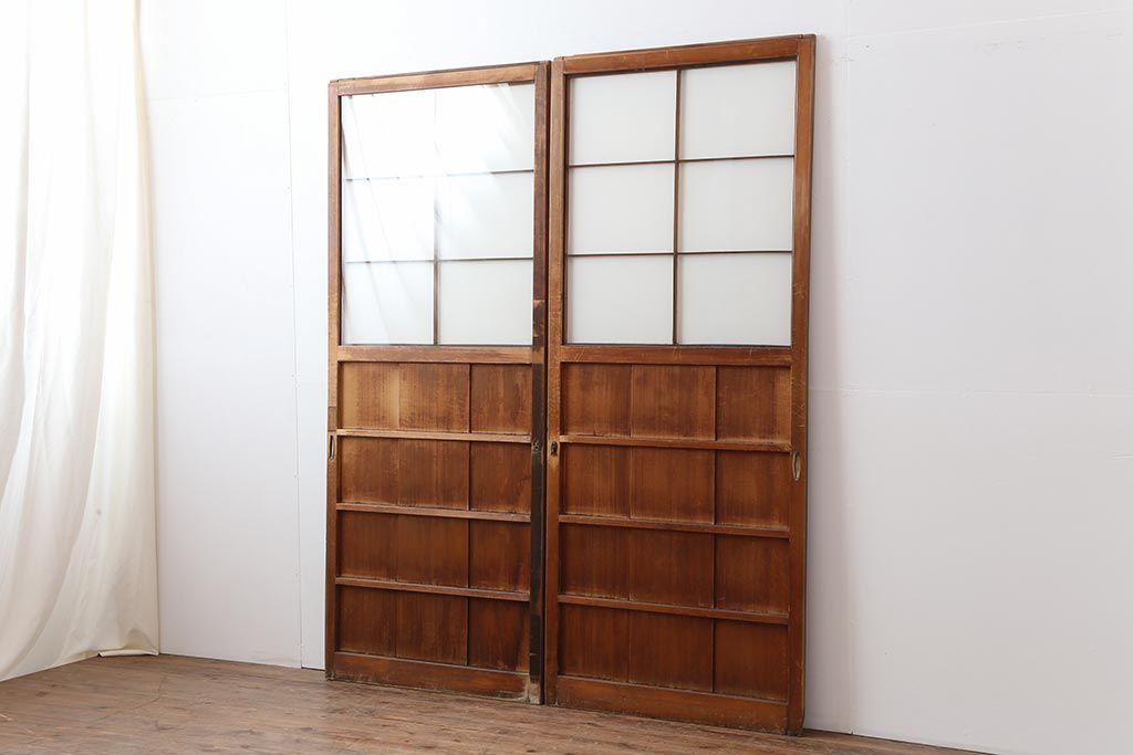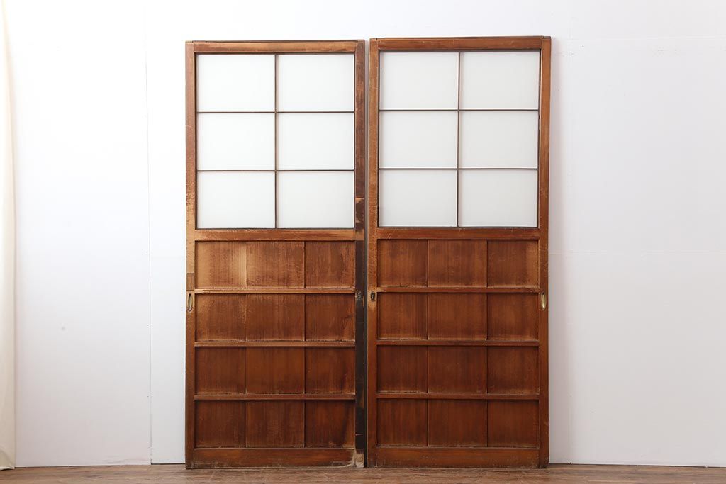 アンティーク建具 昭和初期 レトロスタイルにおすすめのガラス障子戸2枚セット(腰付障子、腰高障子、建具、引き戸)(R-043867)