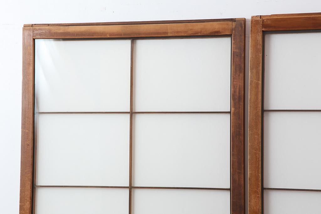 ラフジュ工房> ドア・建具> 障子戸 > アンティーク建具 昭和初期 レトロスタイルにおすすめのガラス障子戸2枚セット(腰付障子、腰高障子、建具、引き戸)(R-043867)