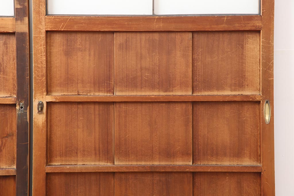 ラフジュ工房> ドア・建具> 引き戸 > アンティーク建具 昭和初期 レトロスタイルにおすすめのガラス障子戸2枚セット(腰付障子、腰高障子、建具、引き戸)(R-043867)