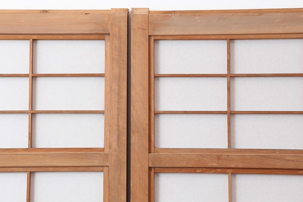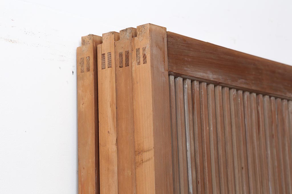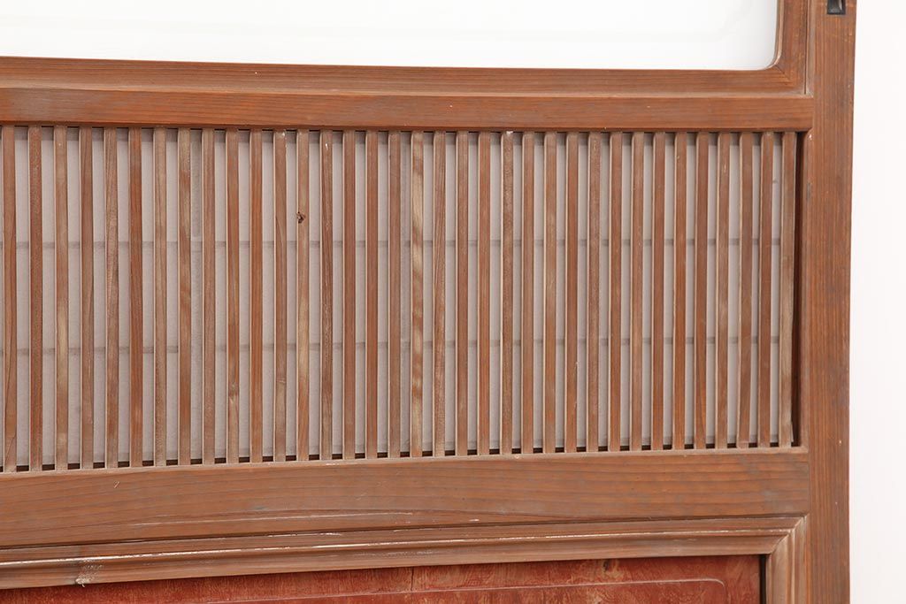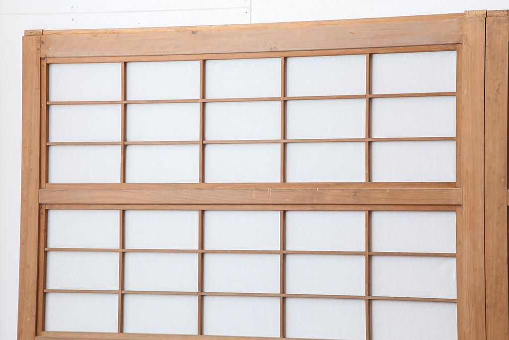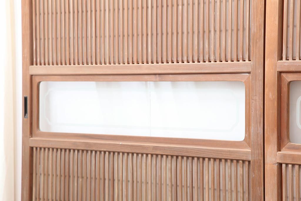 ラフジュ工房> ドア・建具> 引き戸 > アンティーク建具 昭和中期 腰板ケヤキ材 裏障子付きの格子戸4枚セット(建具、ガラス帯戸、引き戸)(R-043866)
