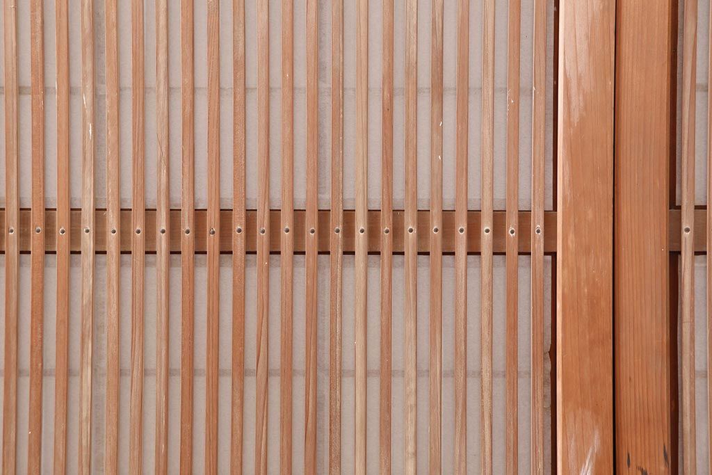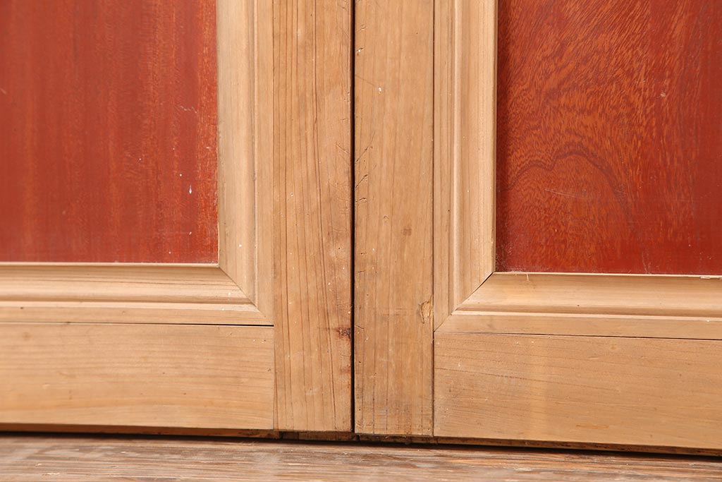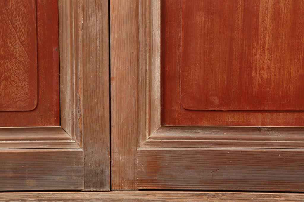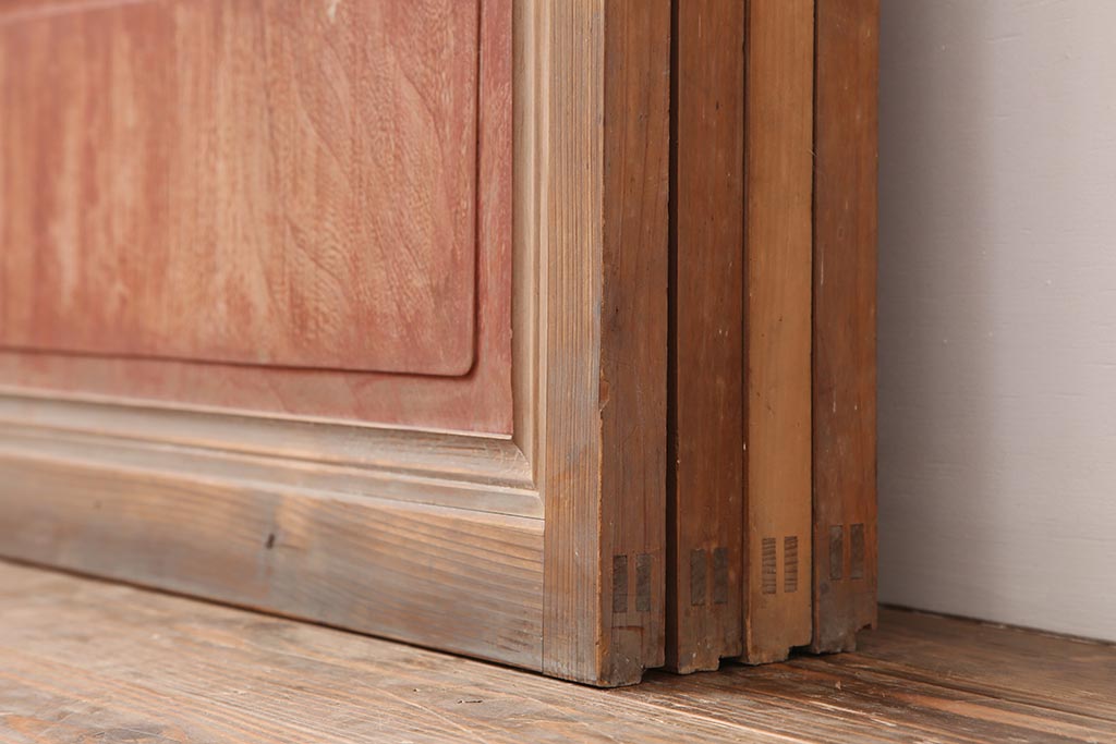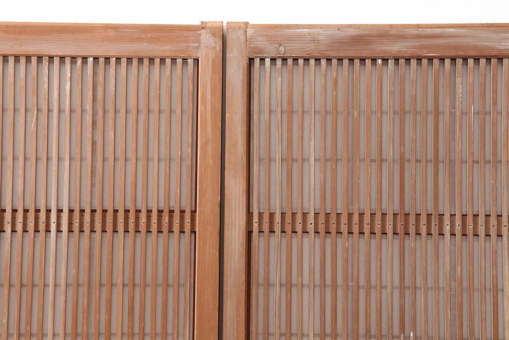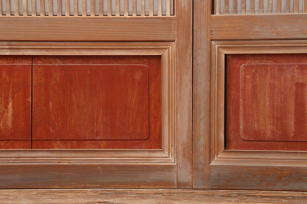 ラフジュ工房> ドア・建具> 引き戸 > アンティーク建具 昭和中期 腰板ケヤキ材 裏障子付きの格子戸4枚セット(建具、ガラス帯戸、引き戸)(R-043866)