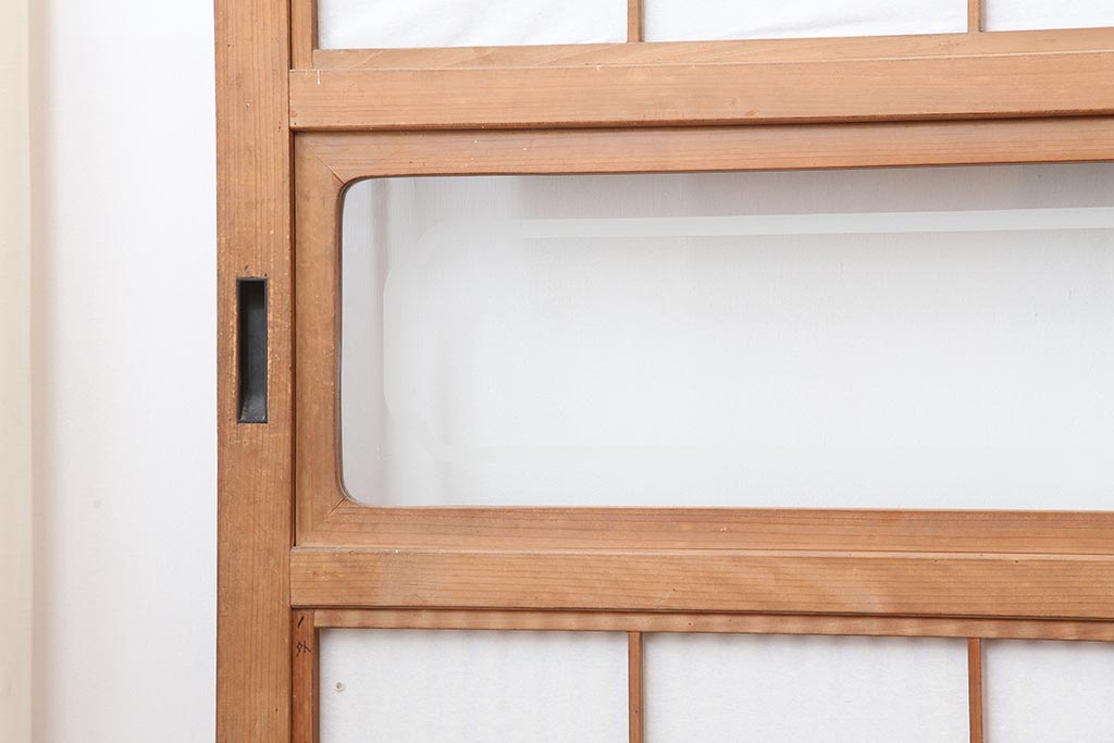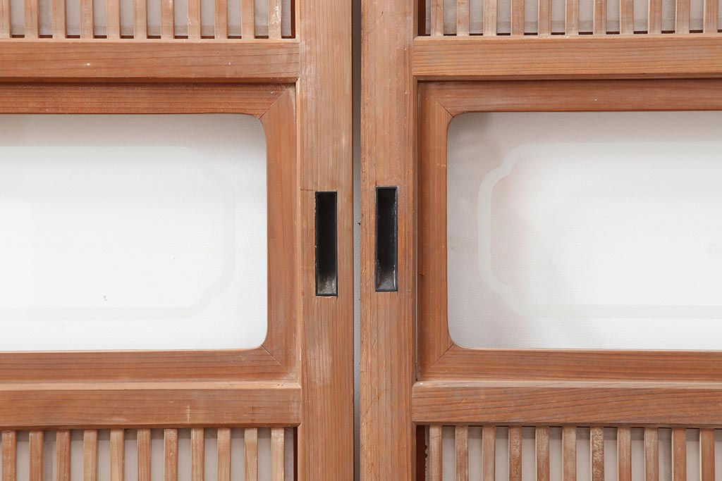 ラフジュ工房> ドア・建具> 障子戸 > アンティーク建具 昭和中期 腰板ケヤキ材 裏障子付きの格子戸4枚セット(建具、ガラス帯戸、引き戸)(R-043866)