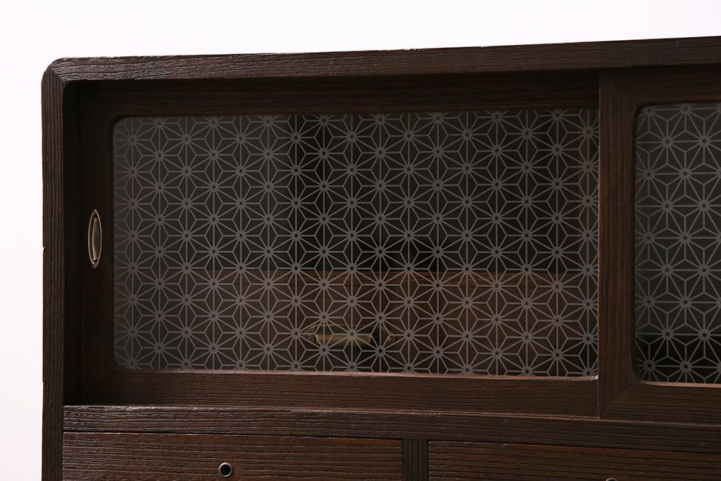 引き戸には当店オリジナルガラスを組合せ、