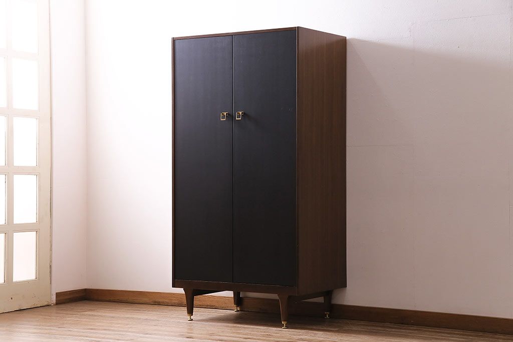 ヴィンテージ家具 G-PLAN(ジープラン) チーク材 ブラックペイントが格好いいワードローブ(収納棚、ビンテージ)(R-043935)