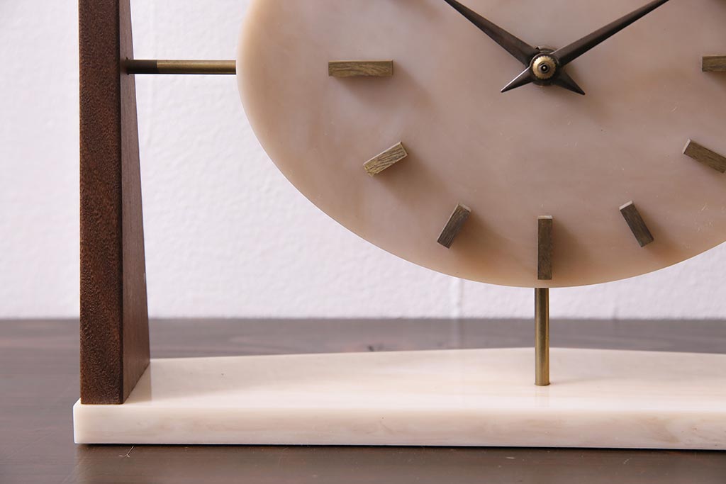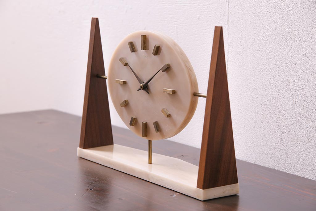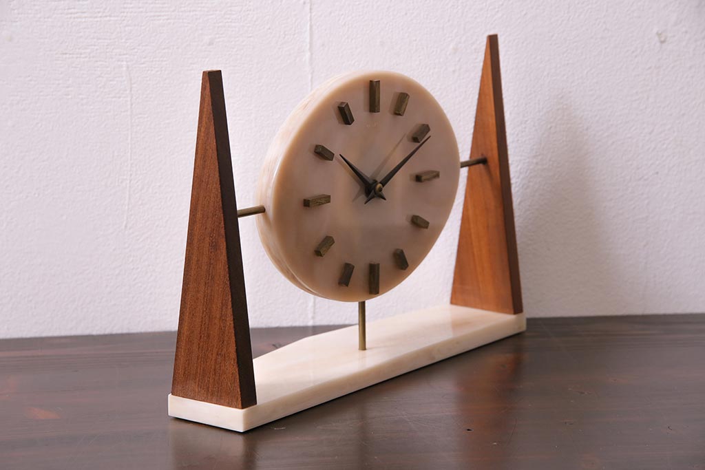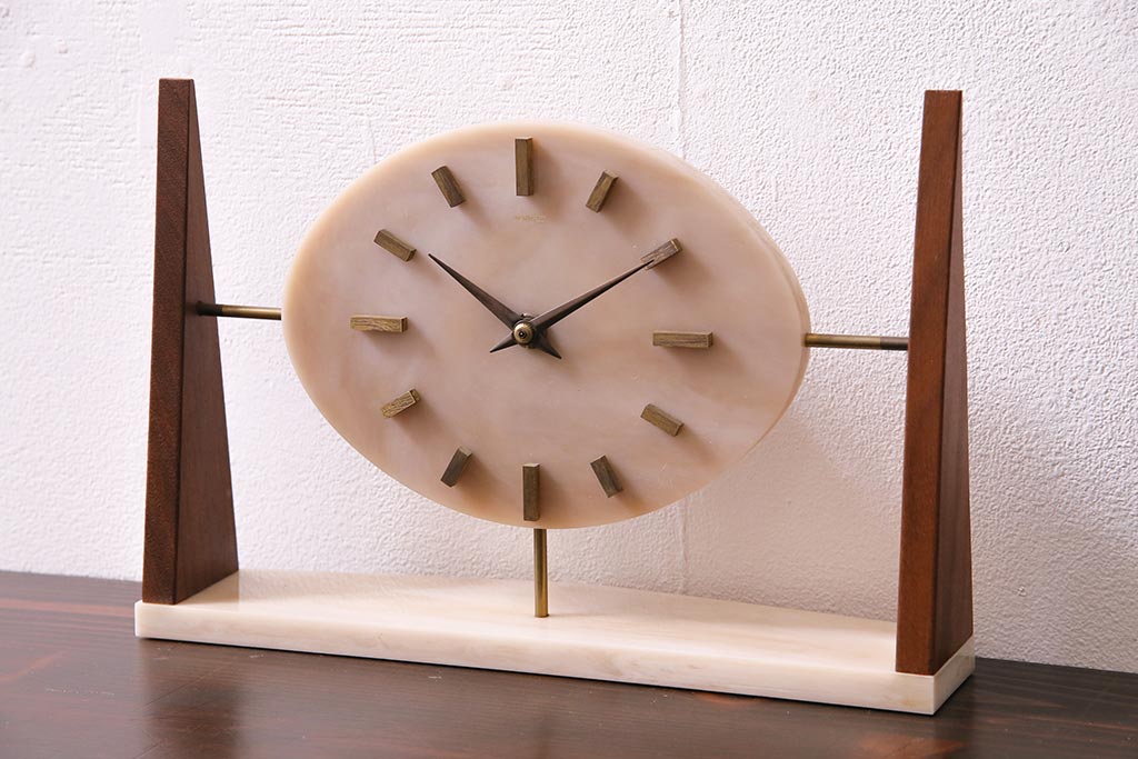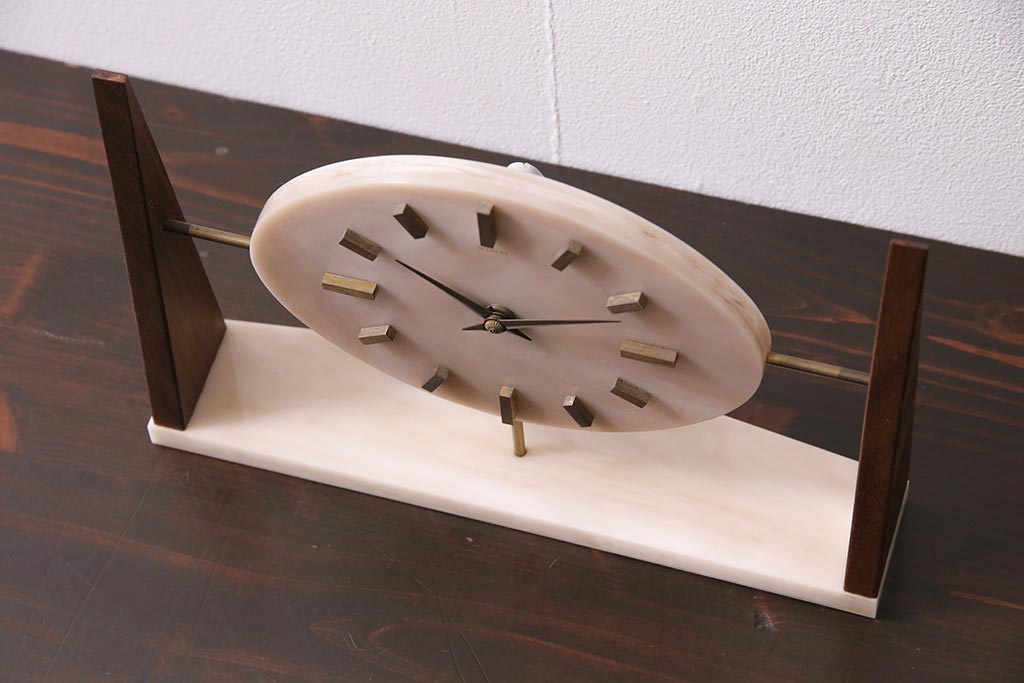 ヴィンテージ雑貨 西ドイツ MANLEY 大理石風 モダンなデザインがお洒落なテーブルクロック(置き時計、ビンテージ)(R-043945)
