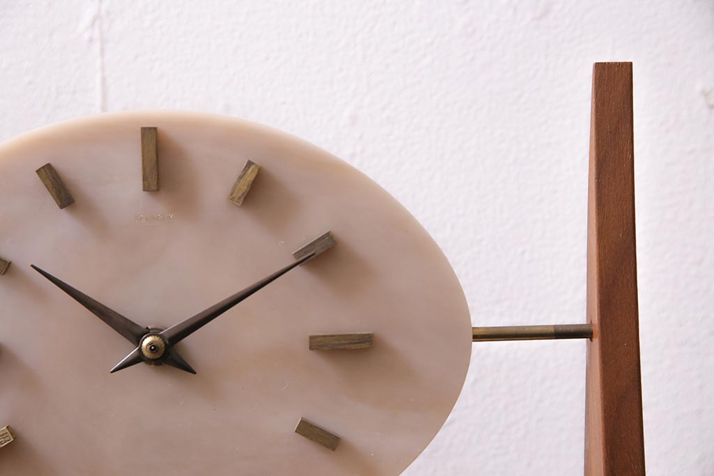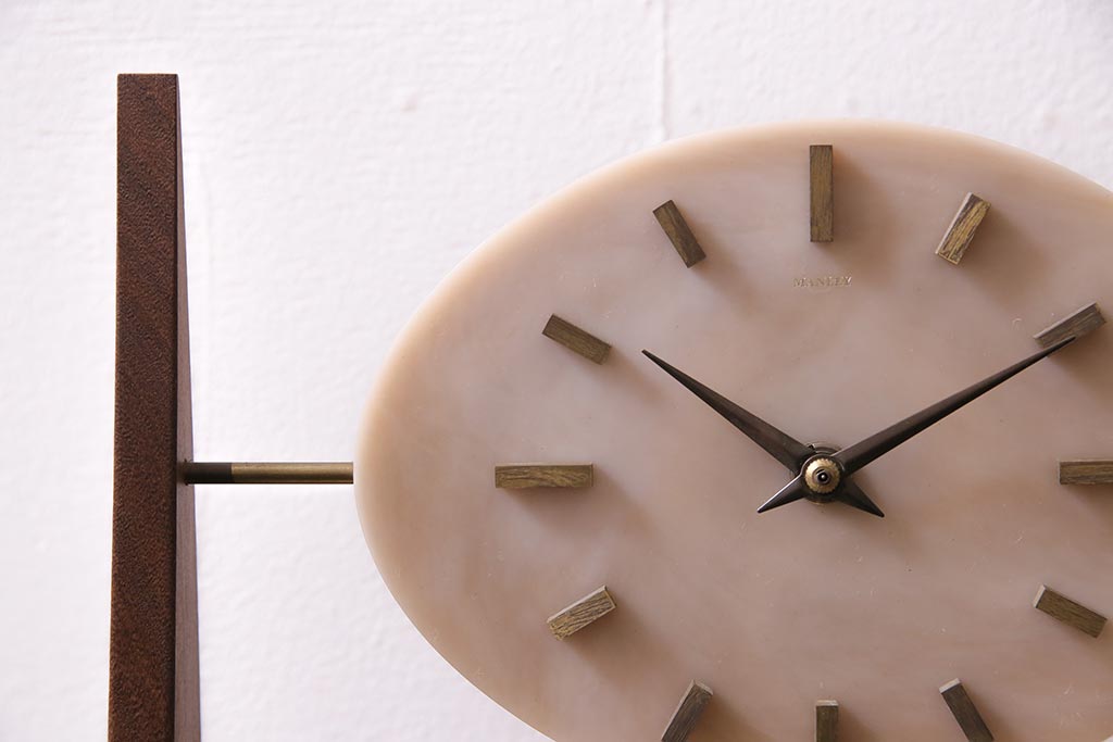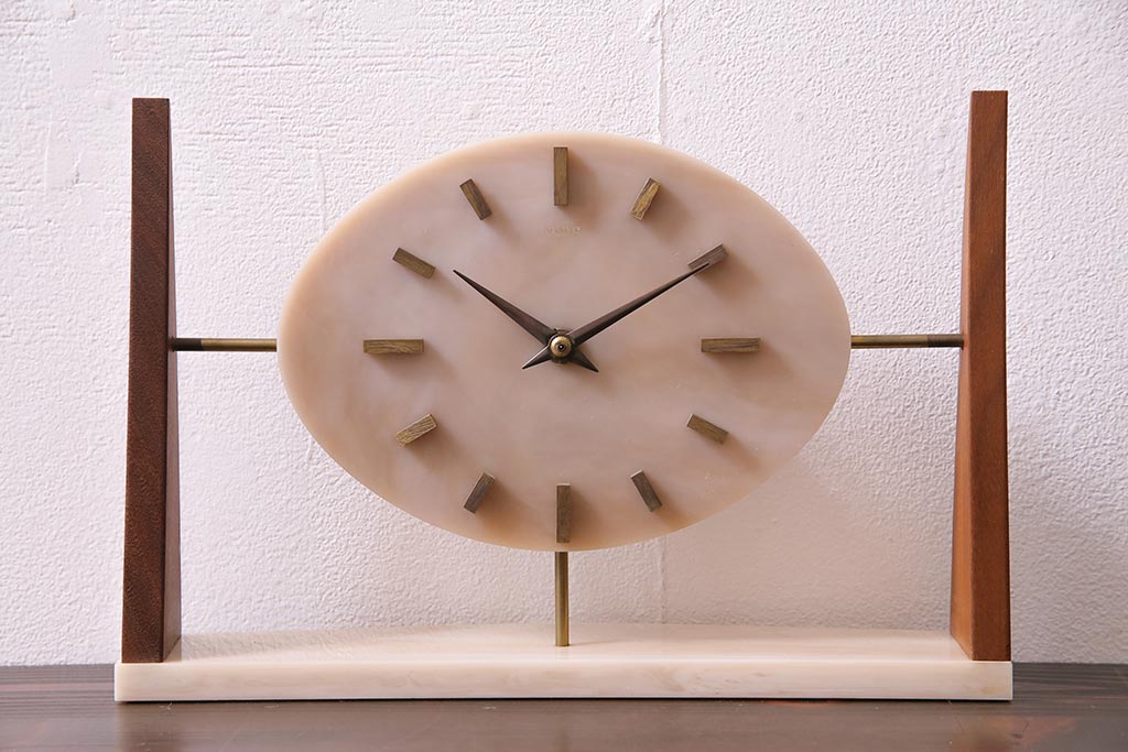 時計> 置き時計 > ヴィンテージ雑貨 西ドイツ MANLEY 大理石風 モダンなデザインがお洒落なテーブルクロック(置き時計、ビンテージ)(R-043945)