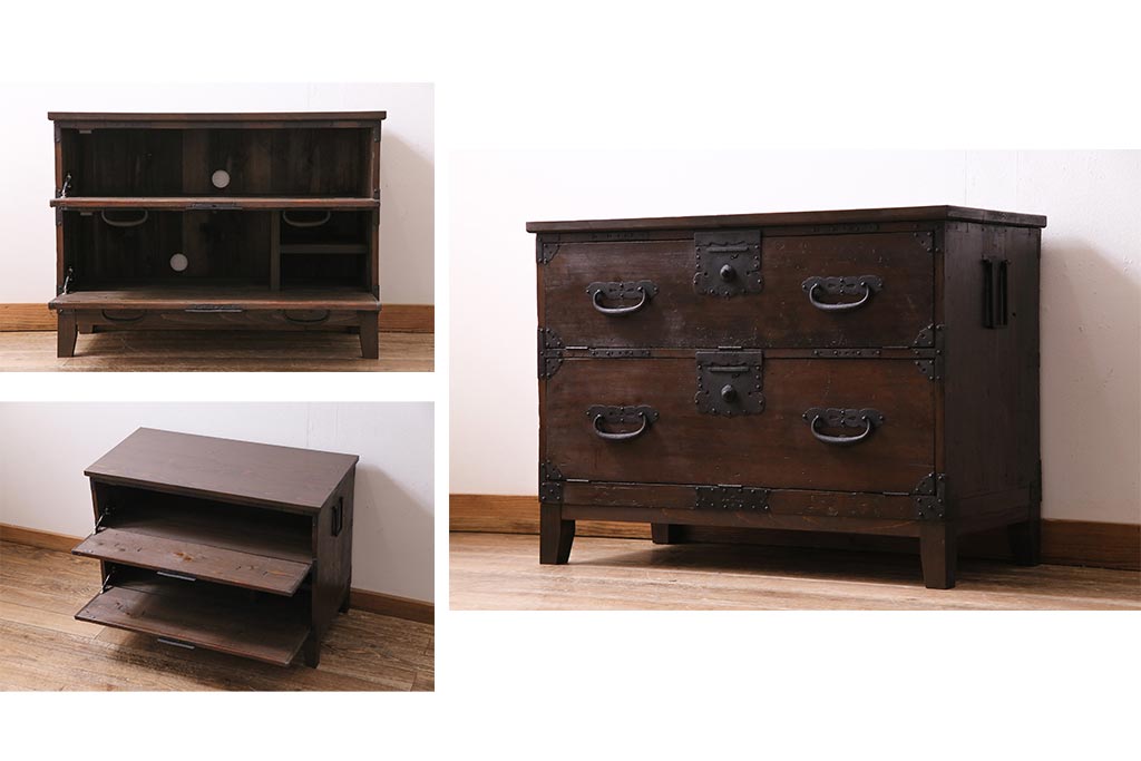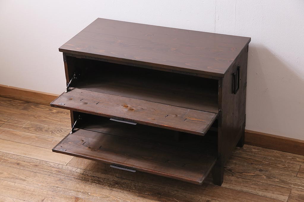 アンティーク家具 ラフジュ工房オリジナル 古箪笥リメイク フラップダウン扉のテレビ台(テレビボード、リビングボード、時代箪笥)(R-040457)
