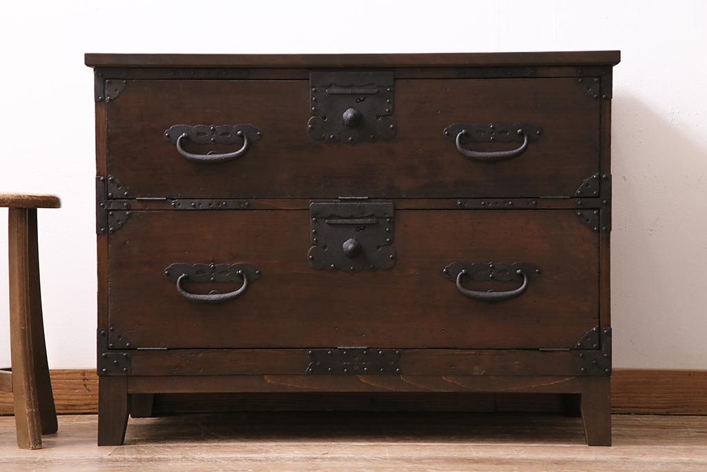 アンティーク家具 古箪笥リメイク フラップダウン扉のテレビ台(テレビボード、リビングボード、時代箪笥)(R-040457)です。