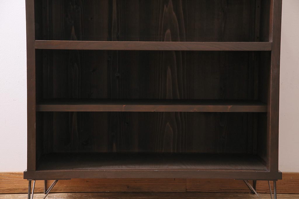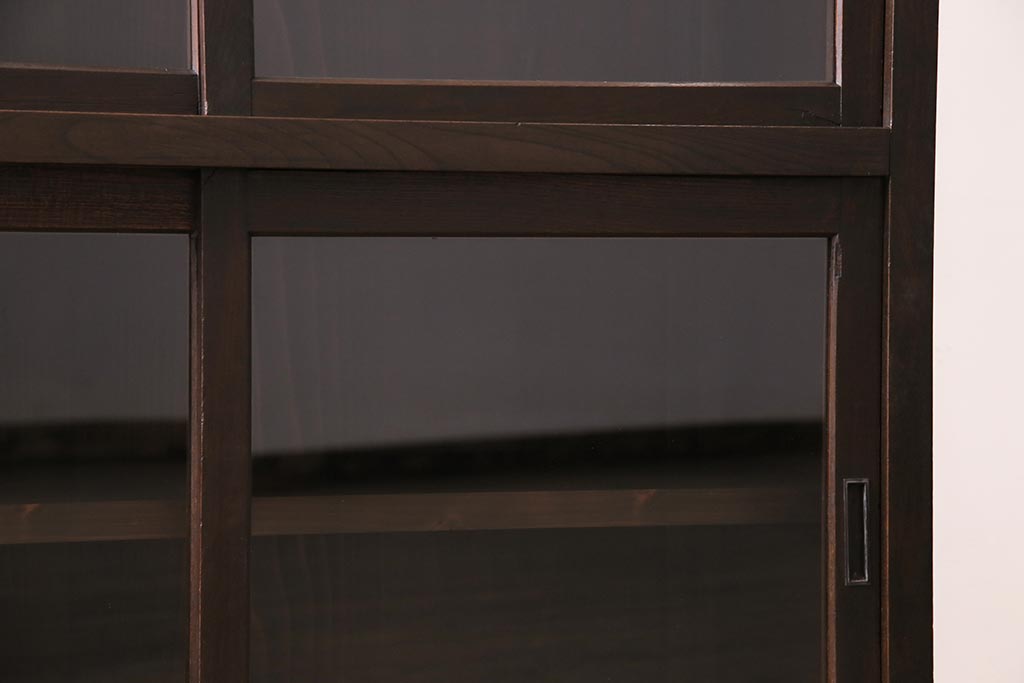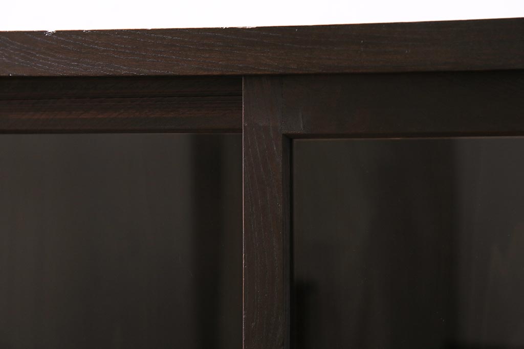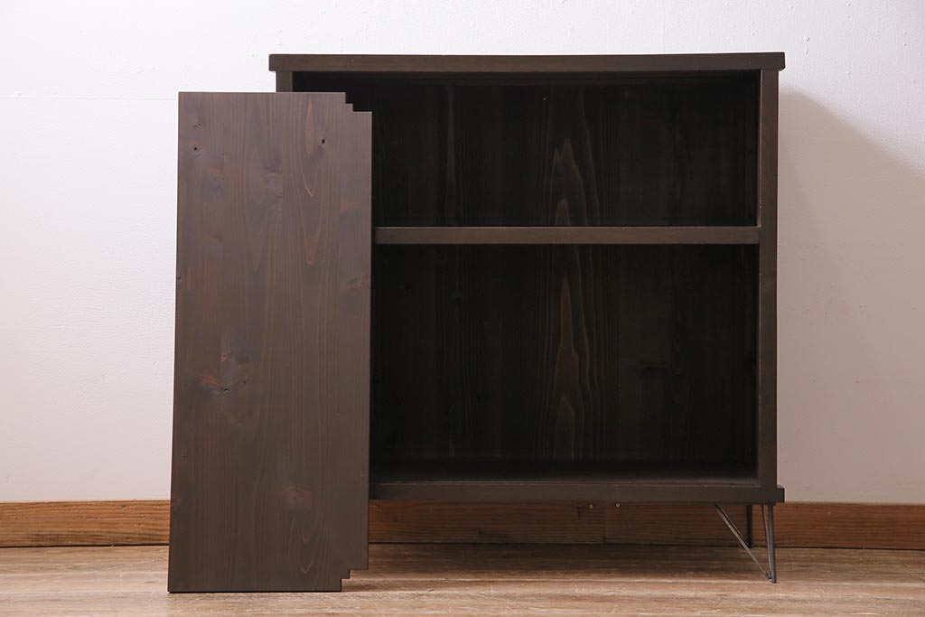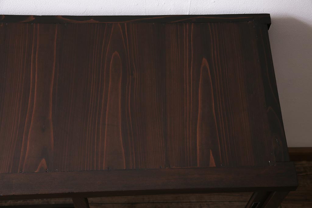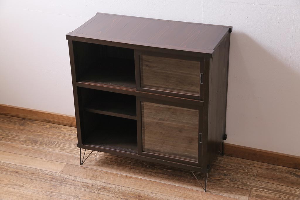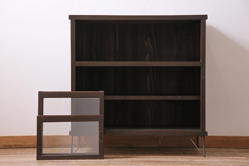 アンティーク家具 大正昭和初期 鉄脚付きリメイク 古い木の質感が味わい深いキャビネット(サイドボード、収納棚、ガラス戸棚)(R-043967)