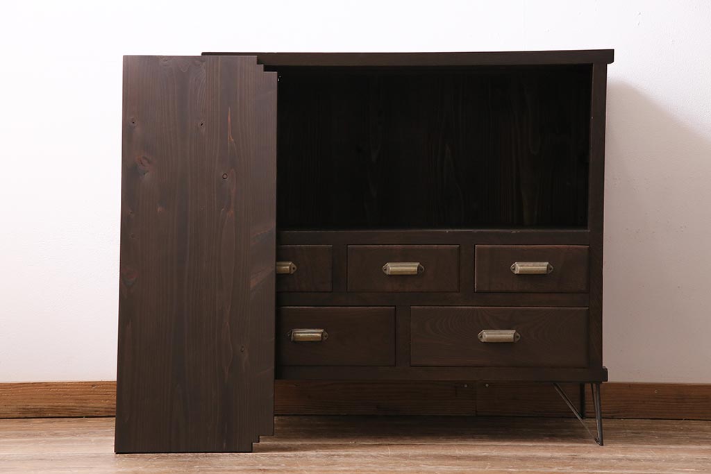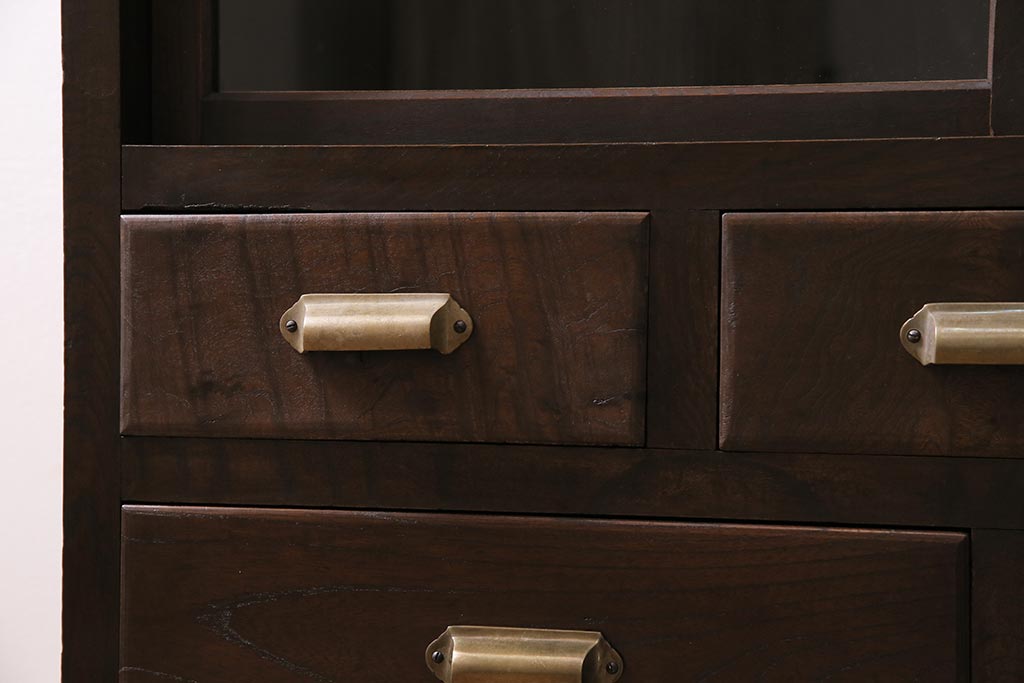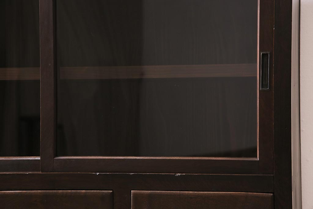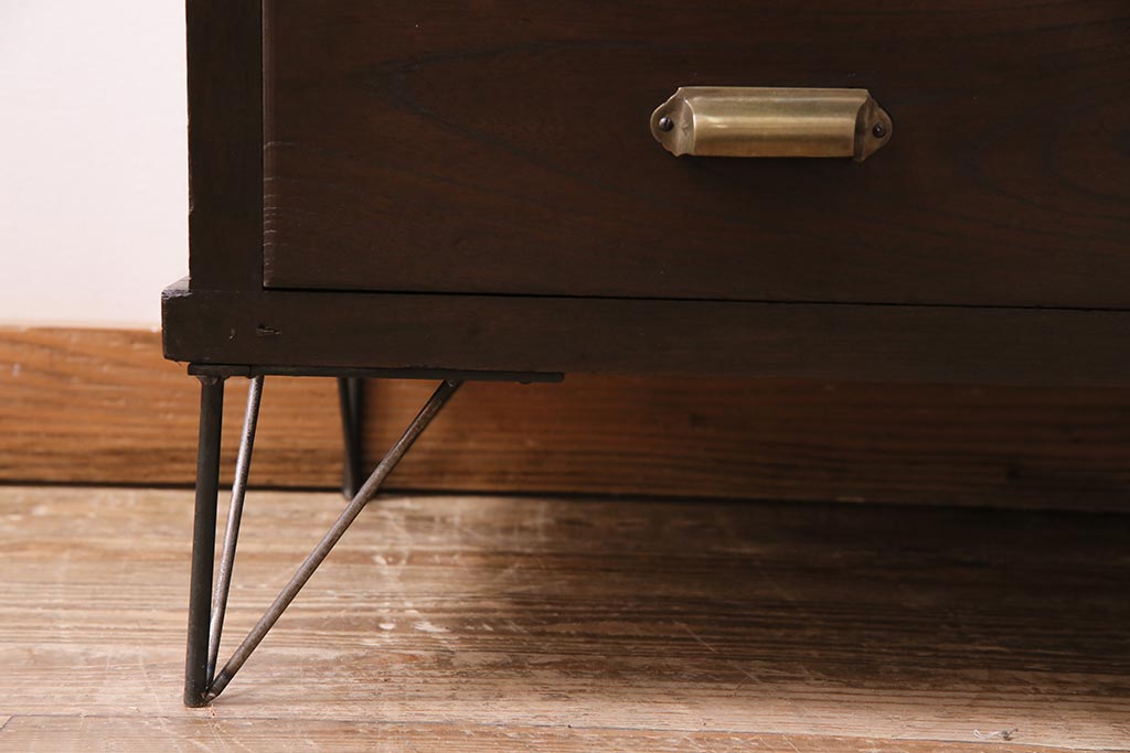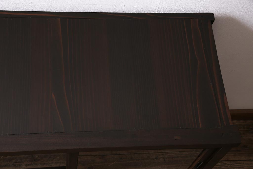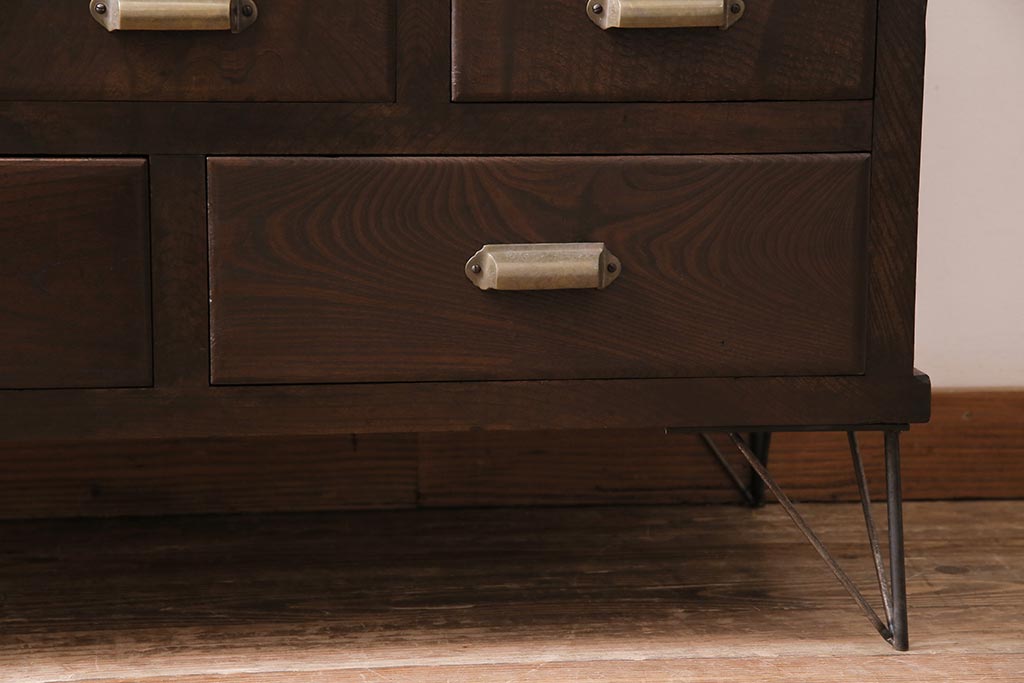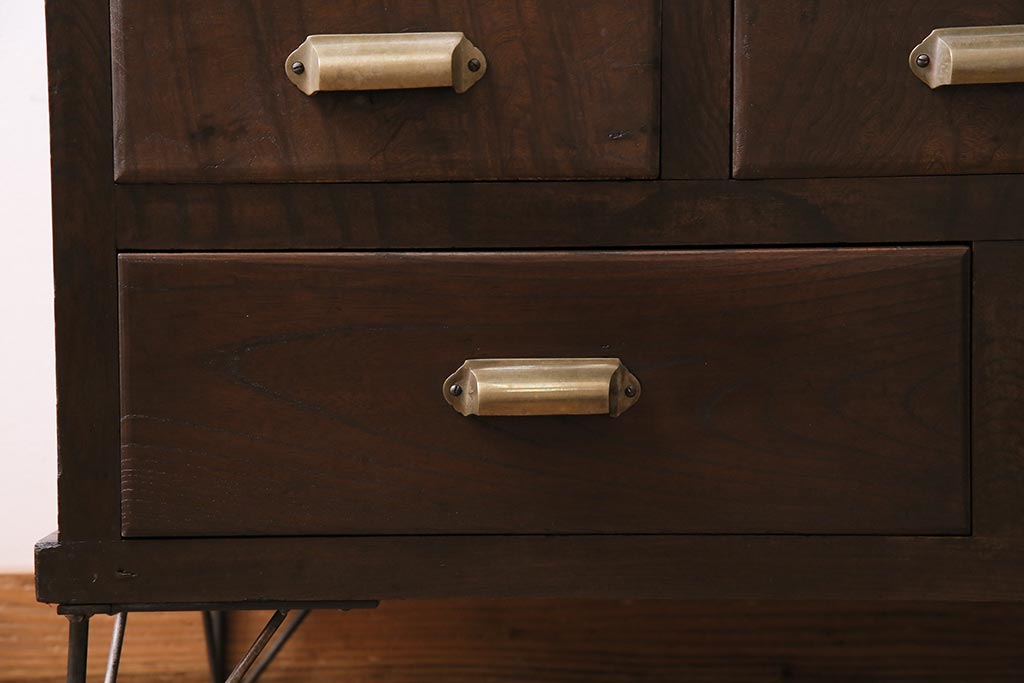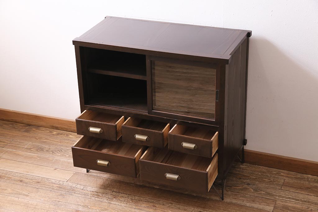 アンティーク家具 和製アンティーク ヒノキ材 レトロな雰囲気が魅力の鉄脚付き収納棚(ガラス戸棚、サイドボード、キャビネット)(R-043968)です。