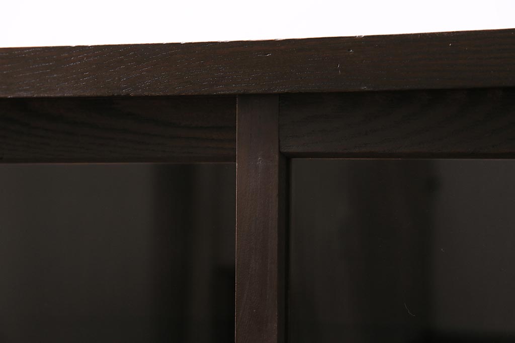 アンティーク家具 和製アンティーク ヒノキ材 レトロな雰囲気が魅力の鉄脚付き収納棚(ガラス戸棚、サイドボード、キャビネット)(R-043968)