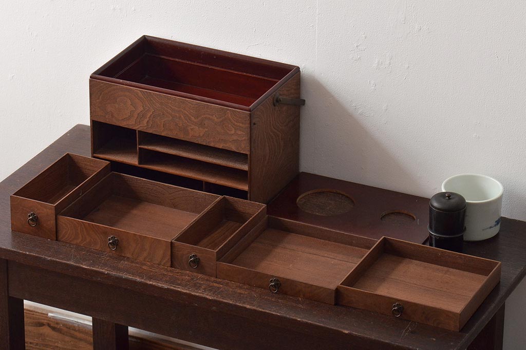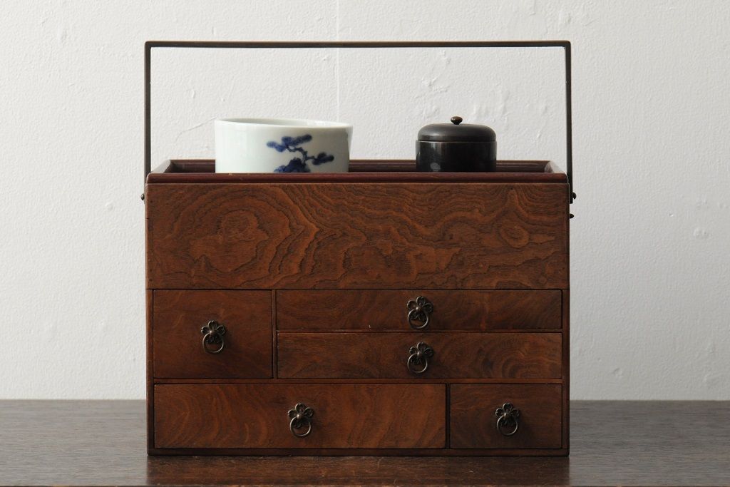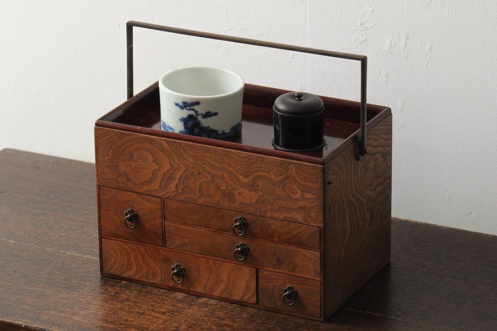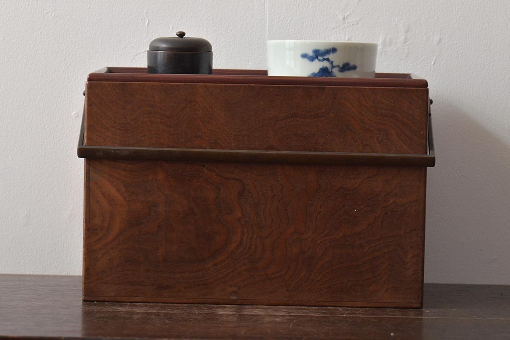 古民具 明治大正期 上手指物 本桑銅手付煙草盆 伊万里火入 灰落とし(茶道具、たばこ盆、莨盆)(R-043468)です。