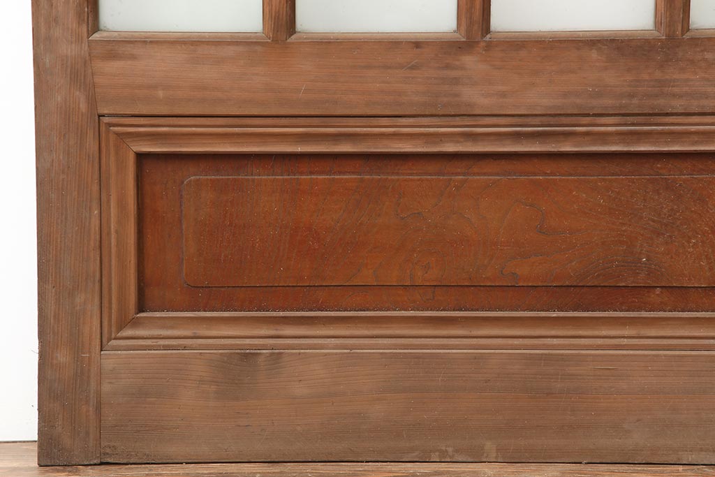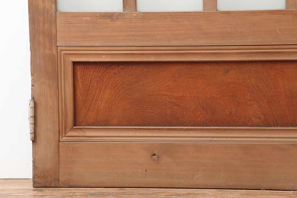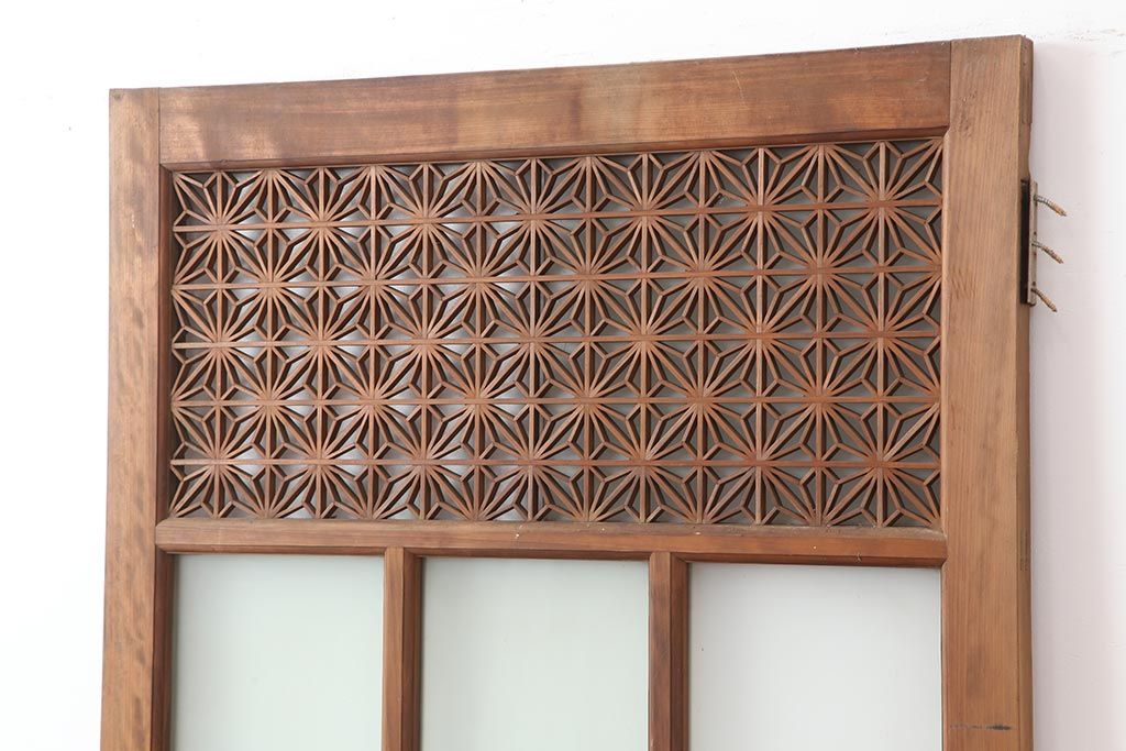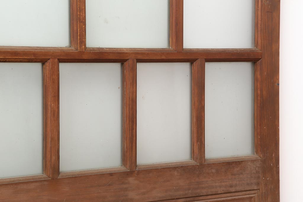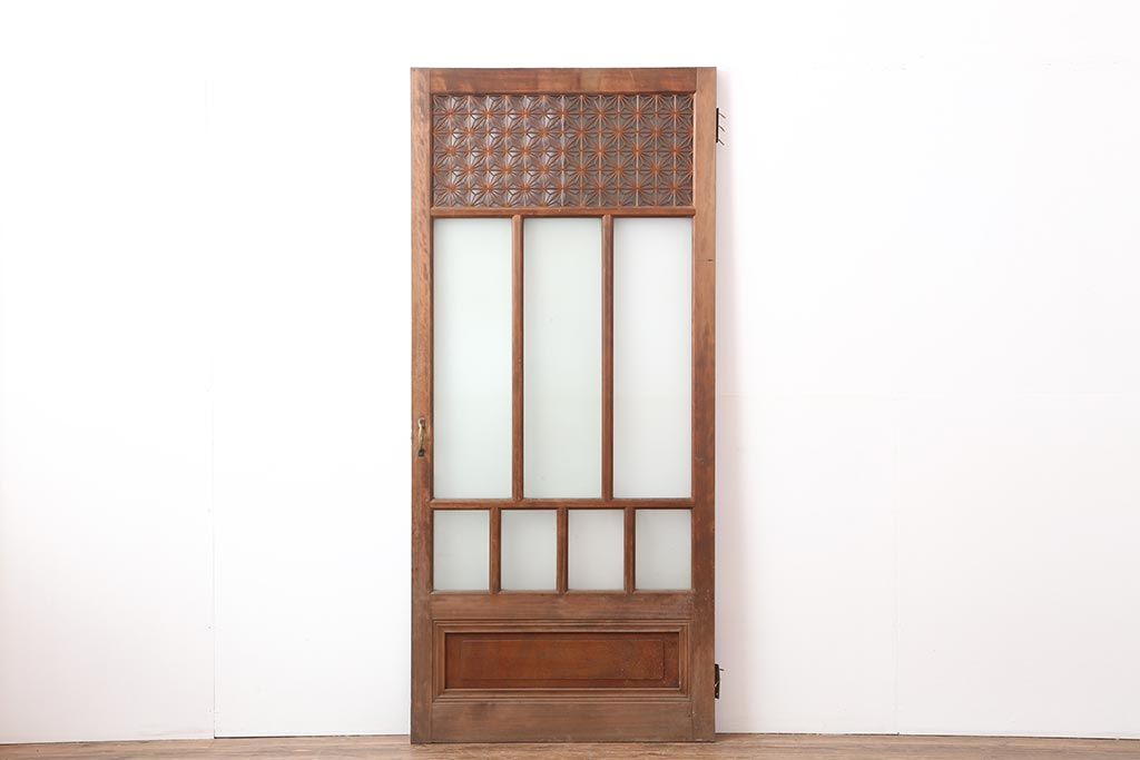 ドア・建具> ドア・扉 > アンティーク建具 昭和中期 ヒノキ材・腰板ケヤキ材 上手物!角麻の組子細工がおしゃれな木製ドア(木製扉、ガラス扉、開き戸)(R-043971)