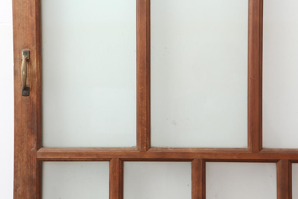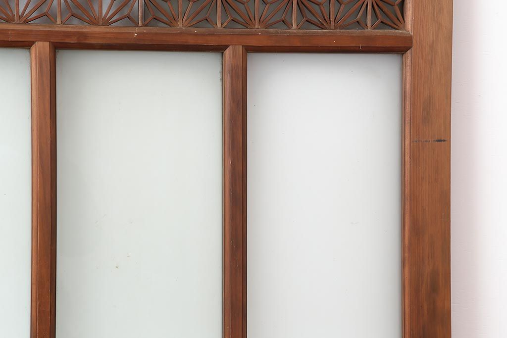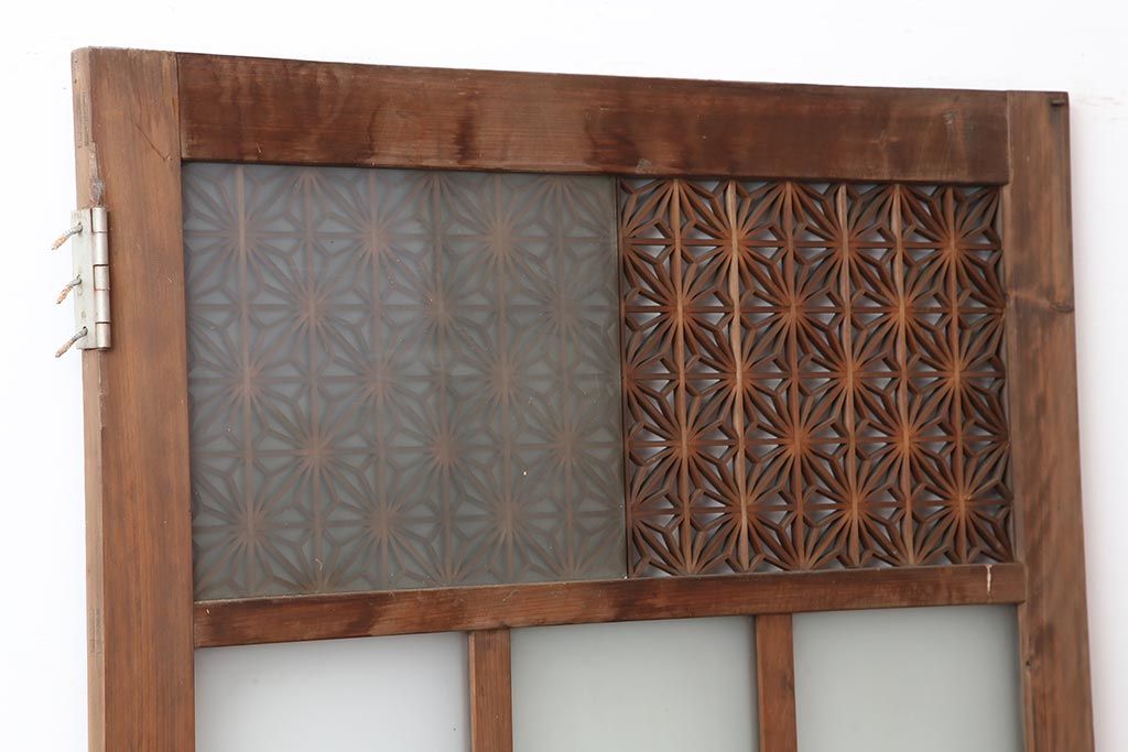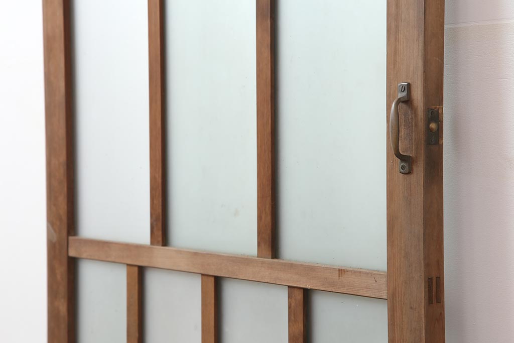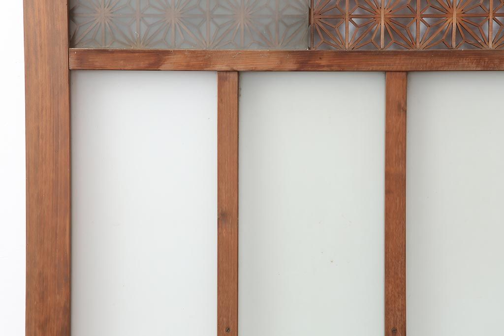 ドア・建具> ドア・扉 > アンティーク建具 昭和中期 ヒノキ材・腰板ケヤキ材 上手物!角麻の組子細工がおしゃれな木製ドア(木製扉、ガラス扉、開き戸)(R-043971)