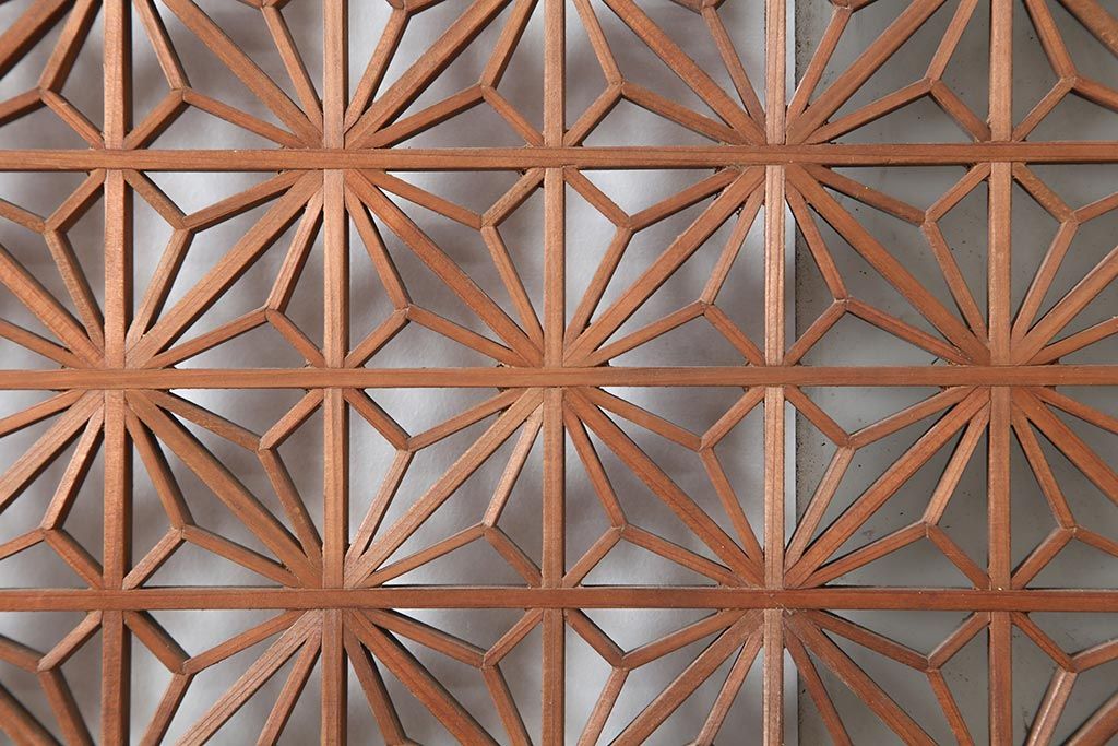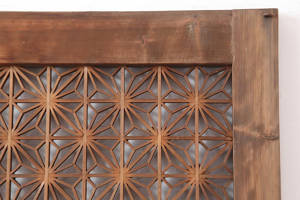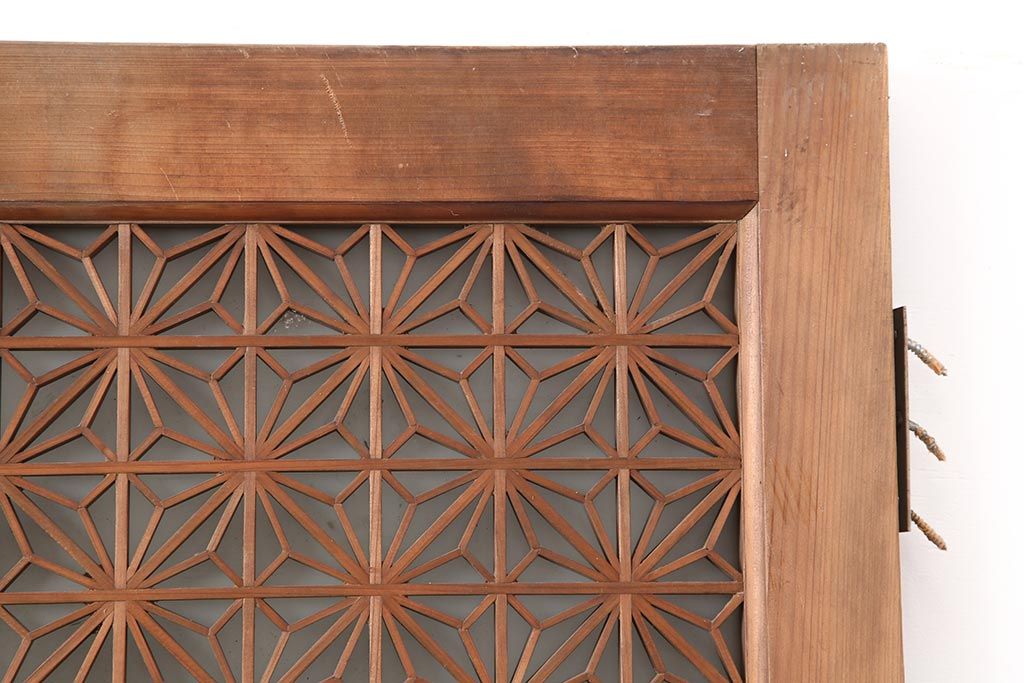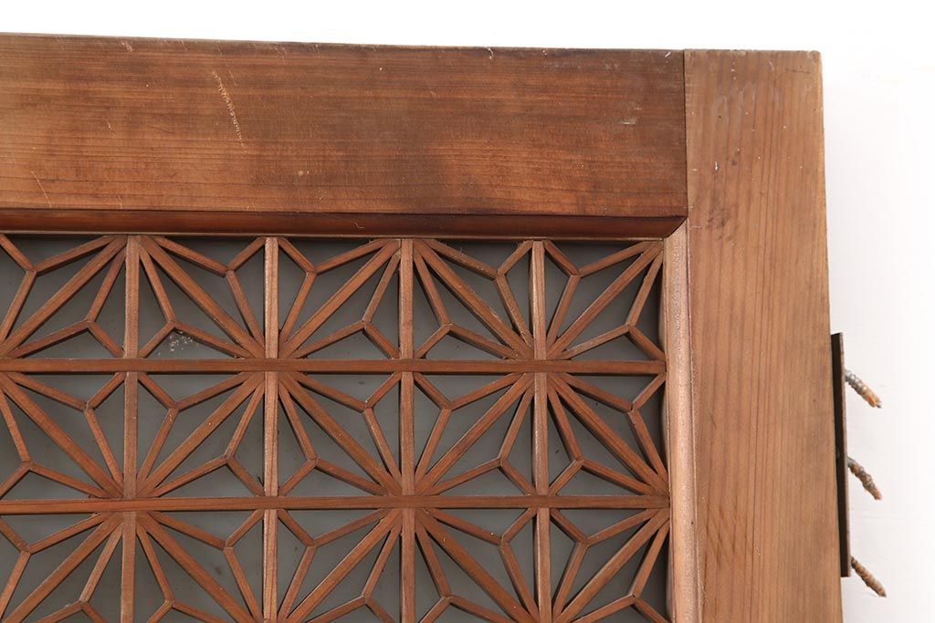 伝統工芸品> 組子細工 > アンティーク建具 昭和中期 ヒノキ材・腰板ケヤキ材 上手物!角麻の組子細工がおしゃれな木製ドア(木製扉、ガラス扉、開き戸)(R-043971)