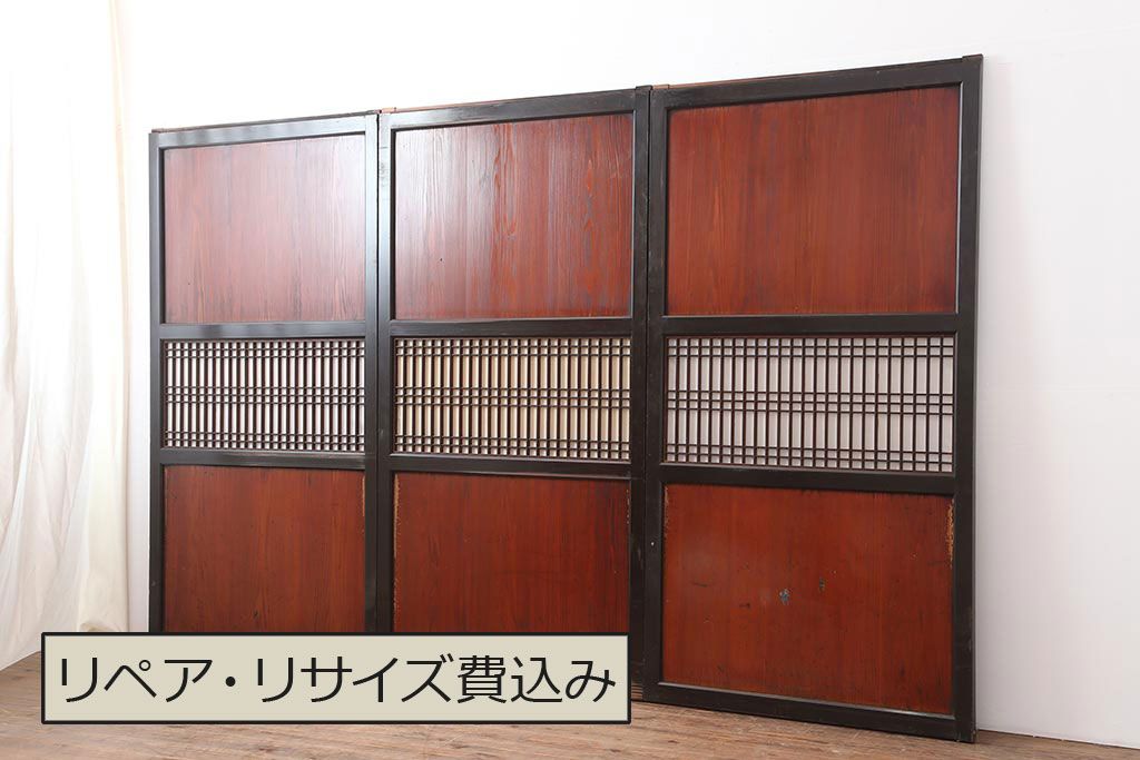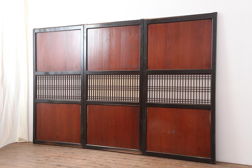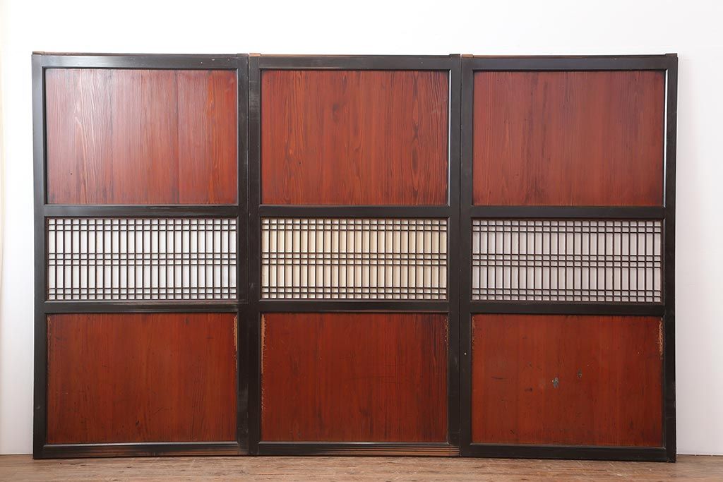 アンティーク建具 明治大正期 上品な空間作りにおすすめの格子帯戸3枚セット(引き戸、障子戸)(R-043991)