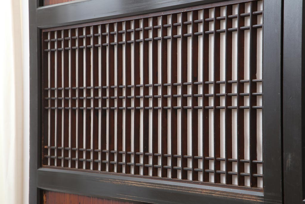 ドア・建具> 引き戸 > アンティーク建具 明治大正期 上品な空間作りにおすすめの格子帯戸3枚セット(引き戸、障子戸)(R-043991)