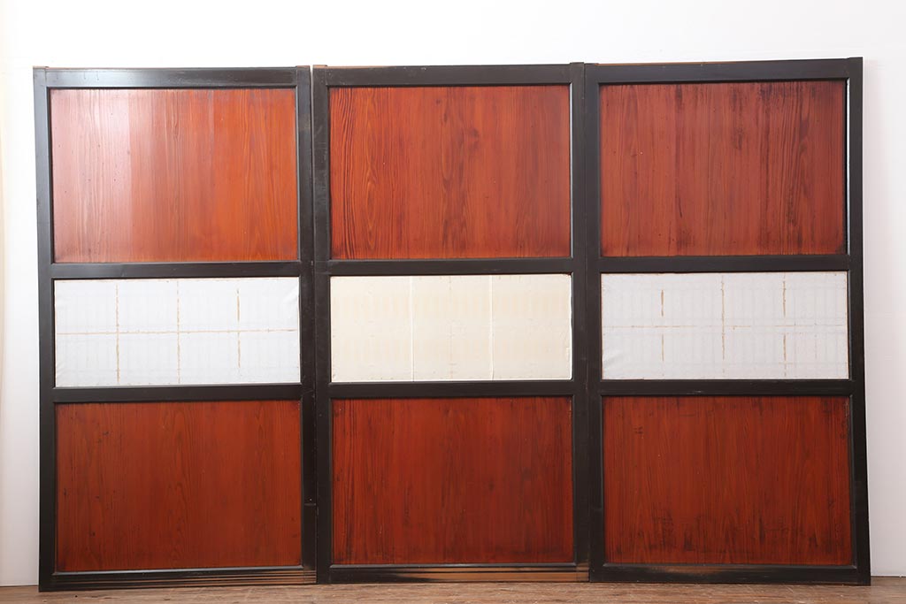 ドア・建具> 障子戸 > アンティーク建具 明治大正期 上品な空間作りにおすすめの格子帯戸3枚セット(引き戸、障子戸)(R-043991)