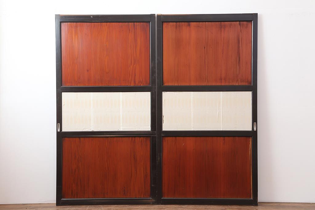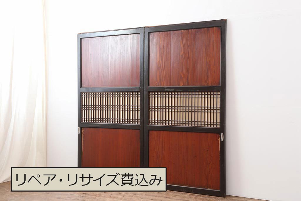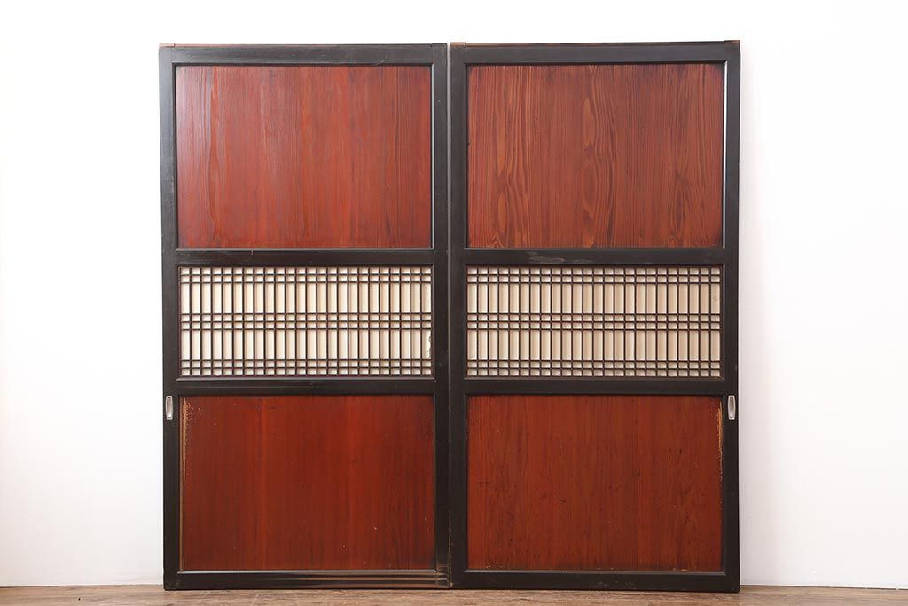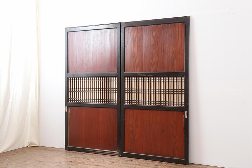 アンティーク建具 明治大正期 上品な空間作りにおすすめの格子帯戸2枚セット(引き戸、障子戸)(R-043989)