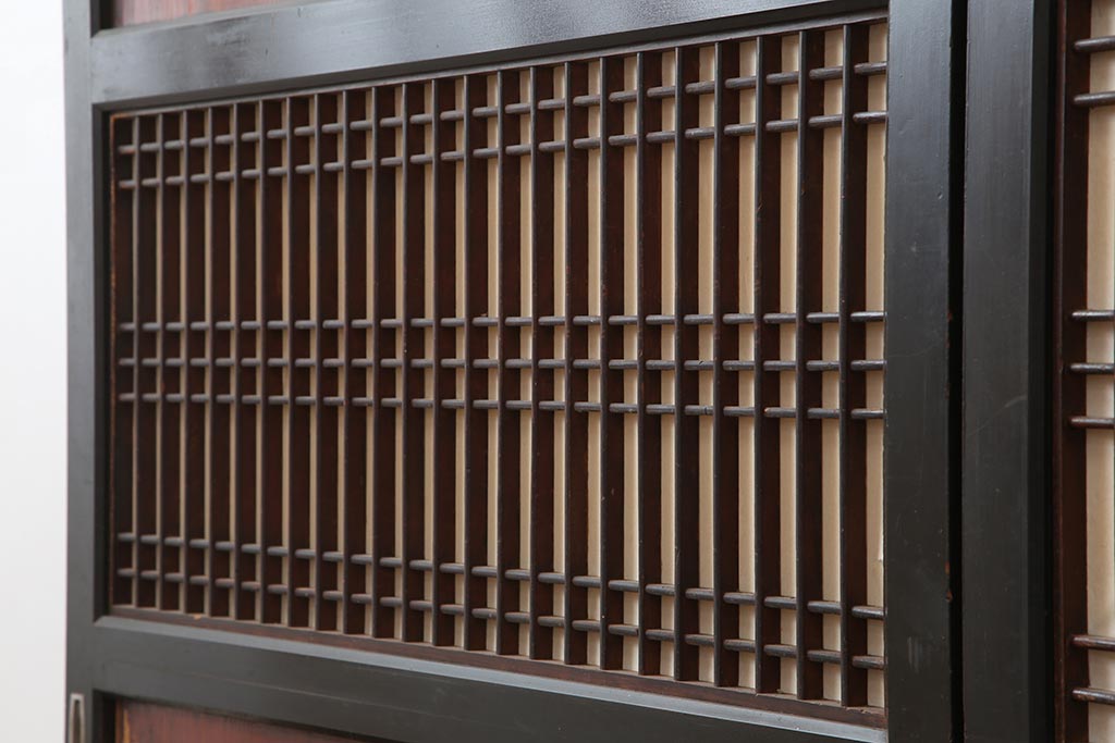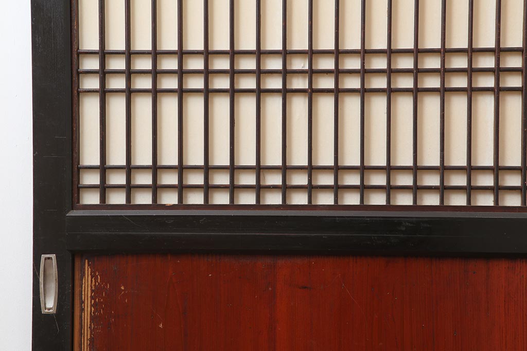 ドア・建具> 引き戸 > アンティーク建具 明治大正期 上品な空間作りにおすすめの格子帯戸2枚セット(引き戸、障子戸)(R-043989)