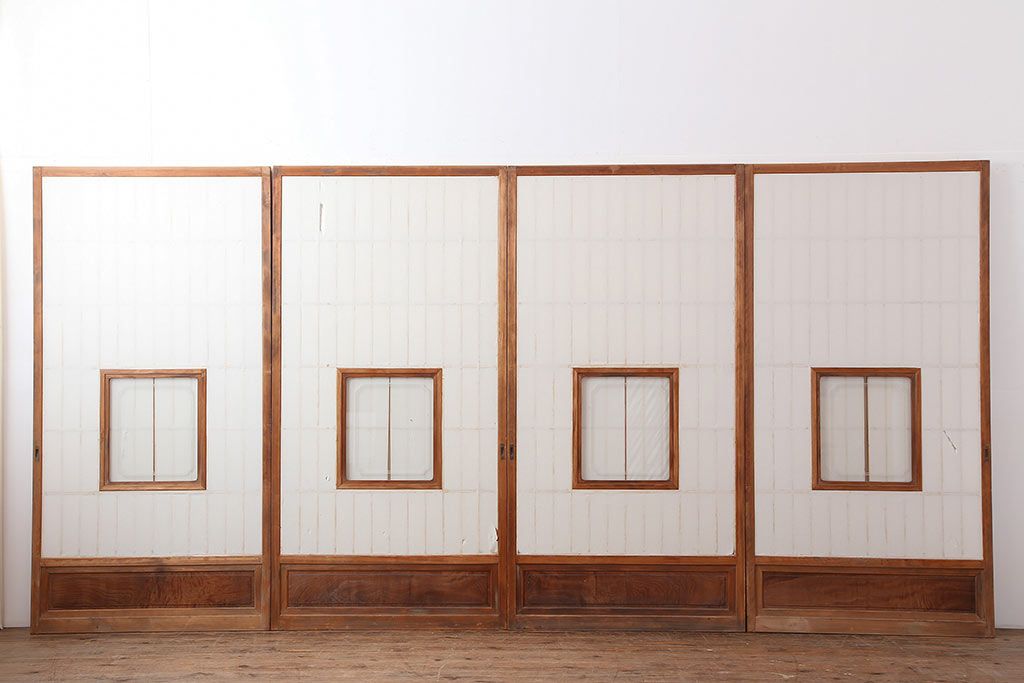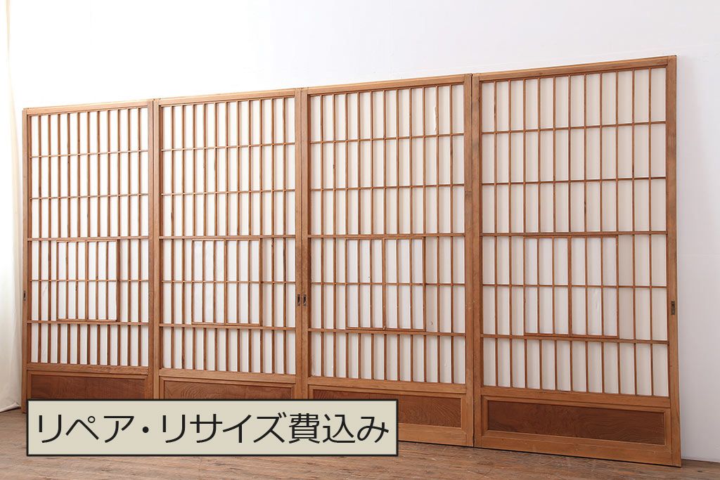 アンティーク建具 和製アンティーク 昭和中期 腰板ケヤキ材 上手物!和の趣たっぷりの障子戸4枚セット(引き戸、障子戸)(R-043938)