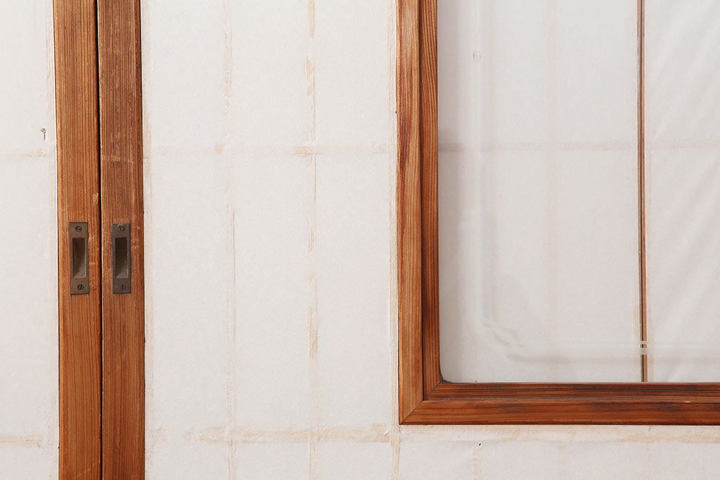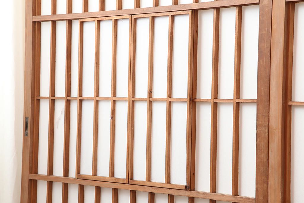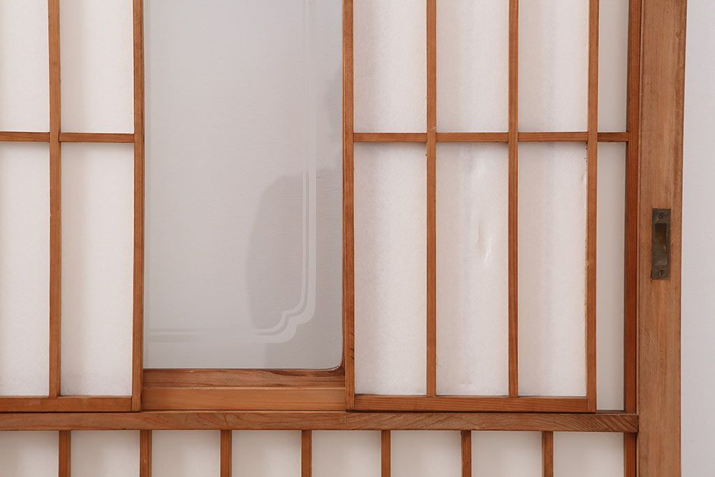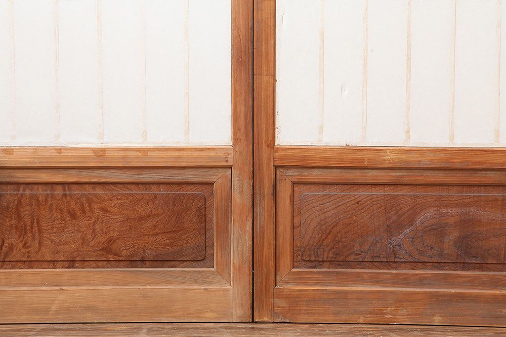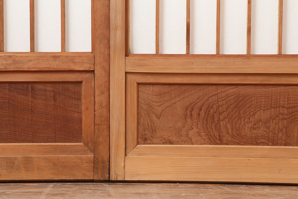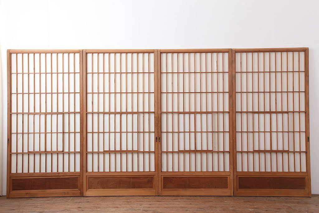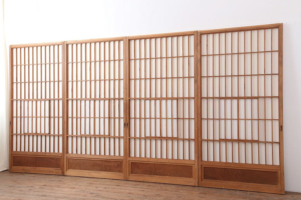 ドア・建具> 障子戸 > アンティーク建具 和製アンティーク 昭和中期 腰板ケヤキ材 上手物!和の趣たっぷりの障子戸4枚セット(引き戸、障子戸)(R-043938)