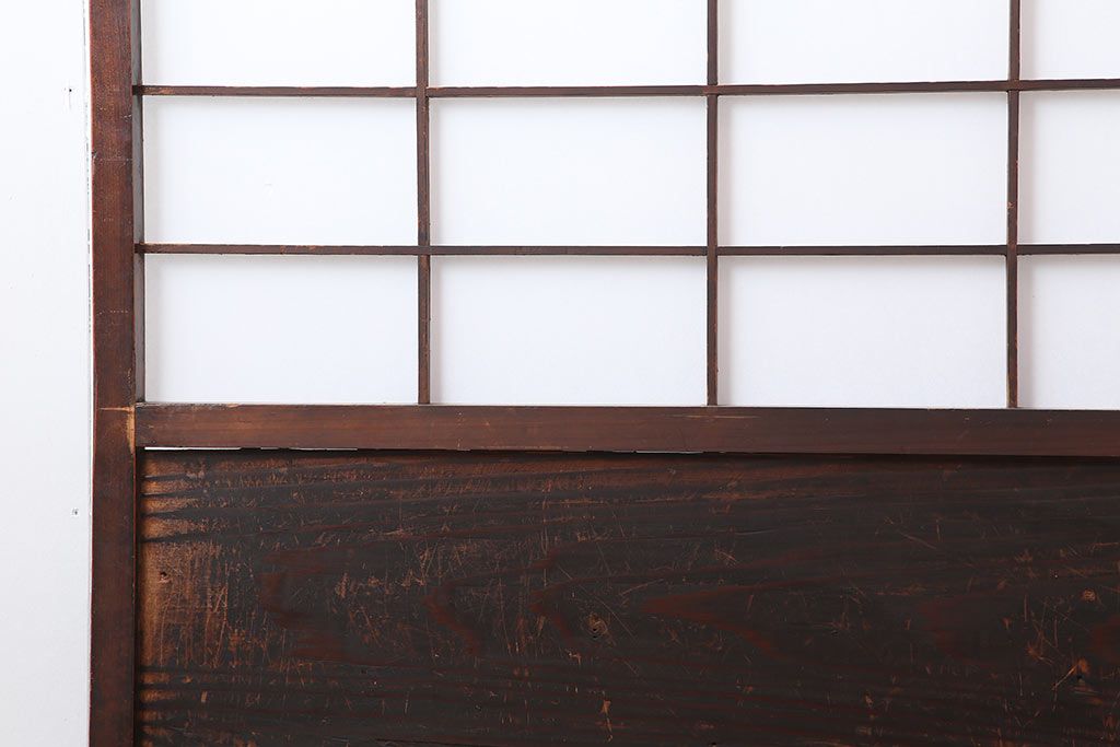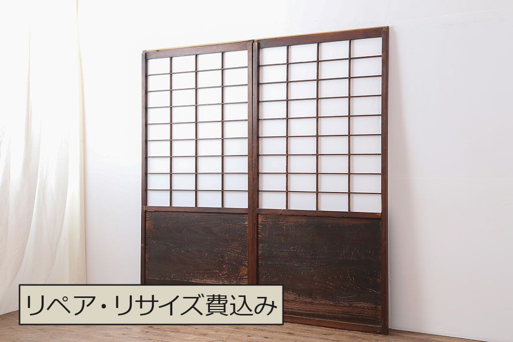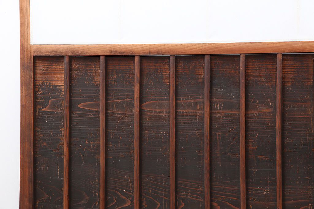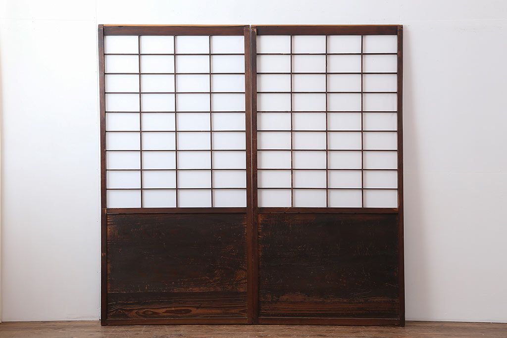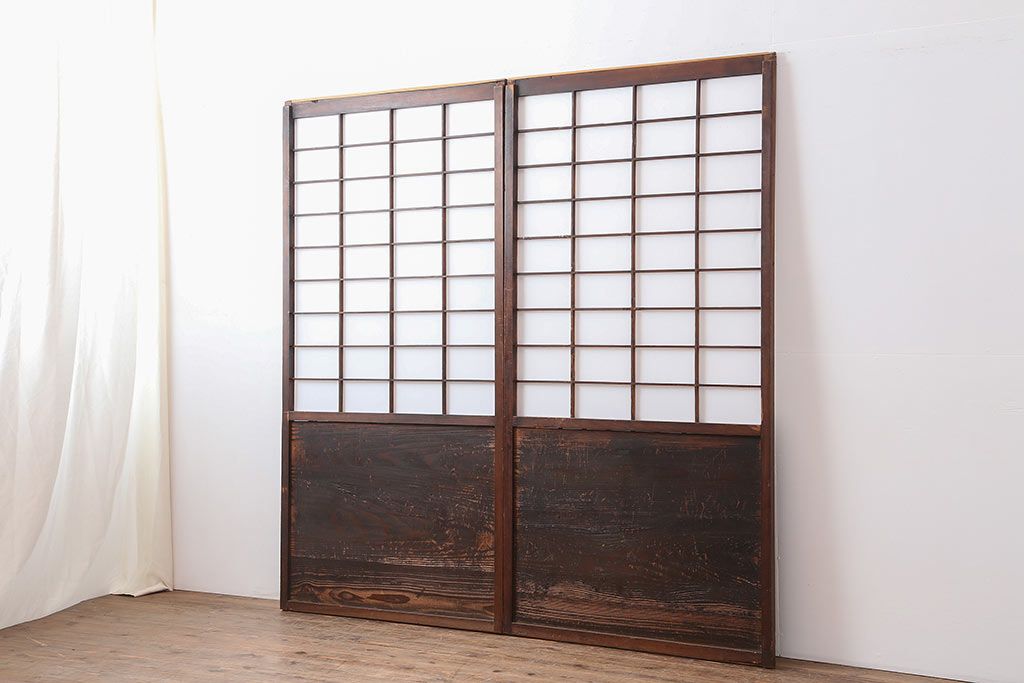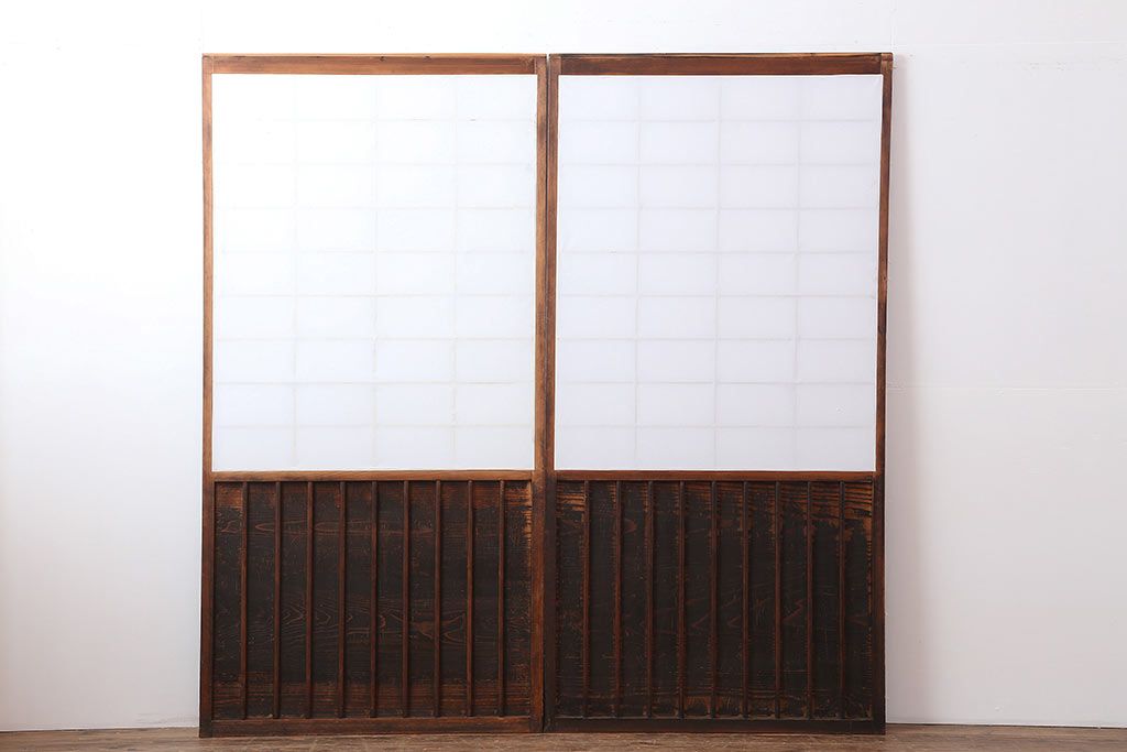 アンティーク建具 和製アンティーク 明治大正期 腰板に縦桟が印象的な障子戸2枚セット(引き戸)(R-043939)