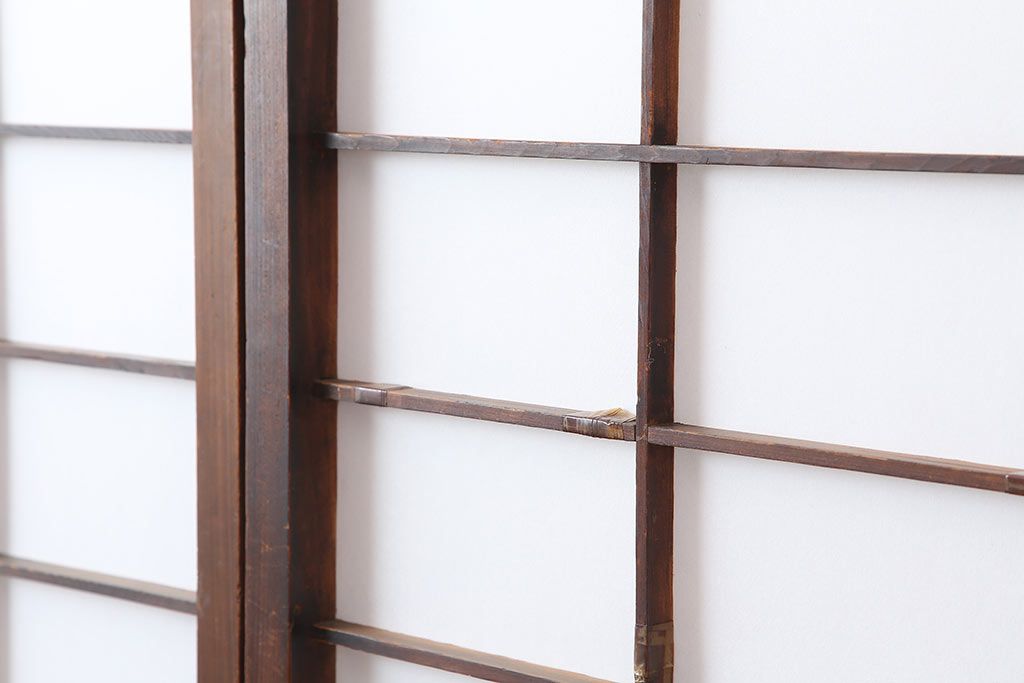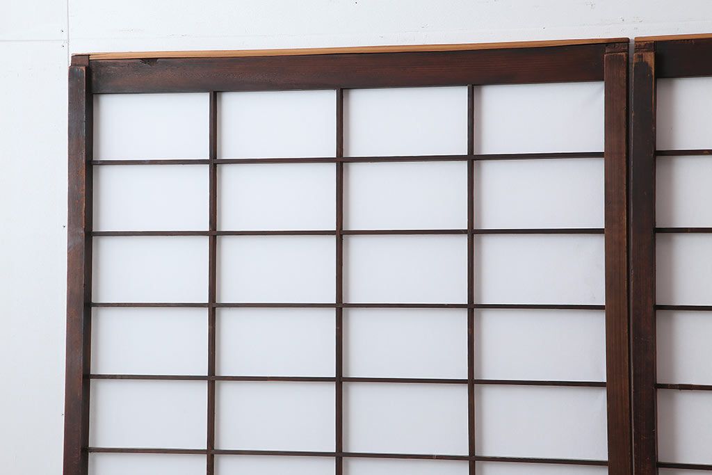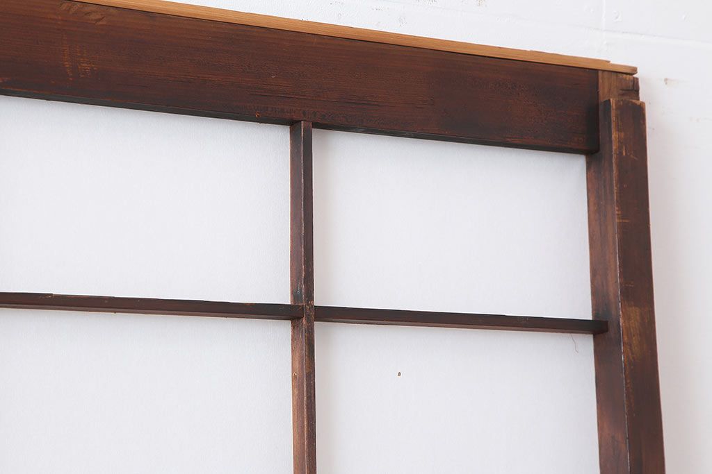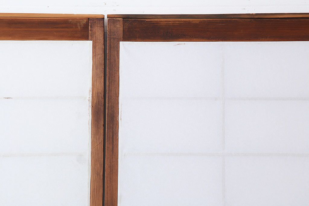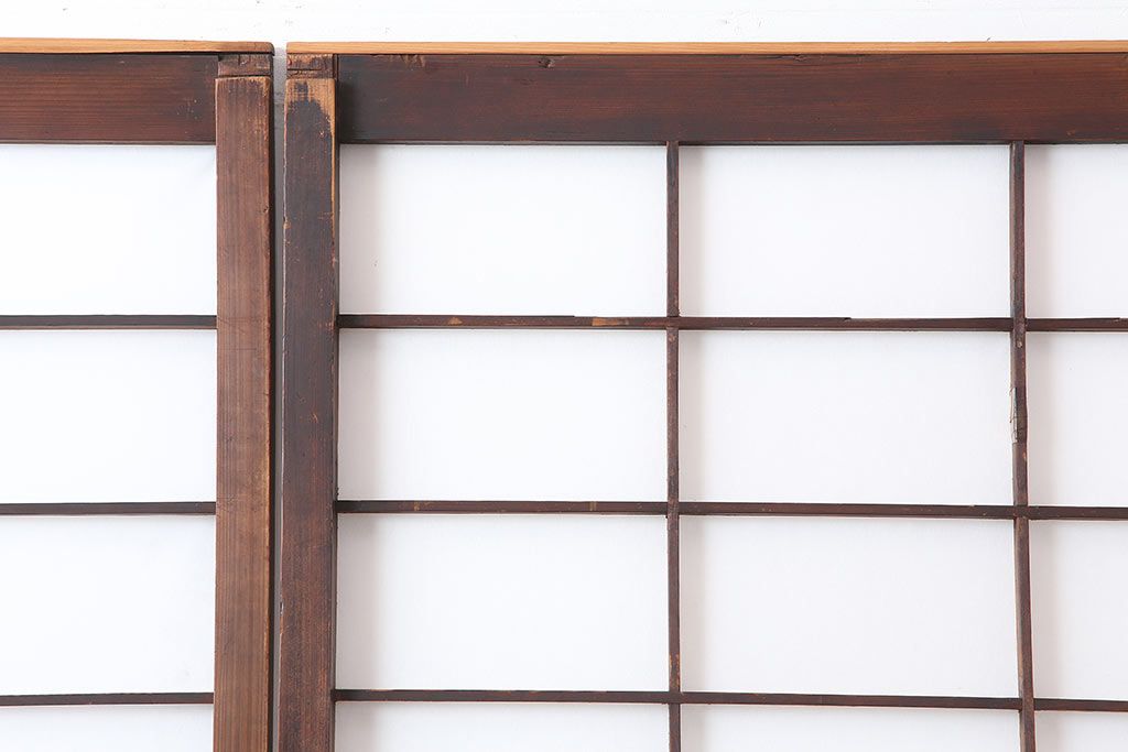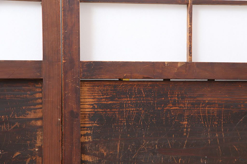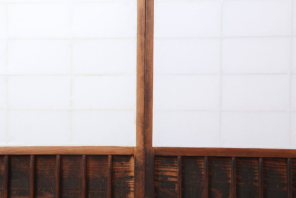 アンティーク建具 和製アンティーク 明治大正期 腰板に縦桟が印象的な障子戸2枚セット(引き戸)(R-043939)