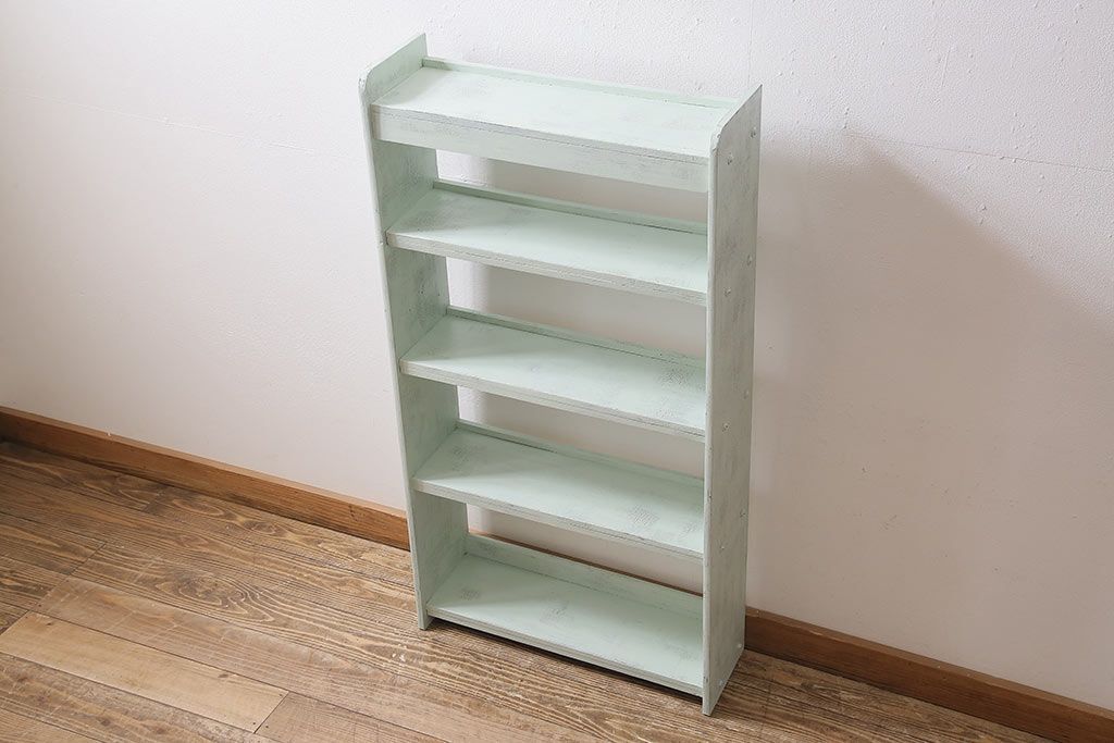 ペイント家具 昭和中期 フレンチカントリーにぴったりなオープンラック(本棚、ウッドシェルフ、収納棚、飾り棚)(R-043887)