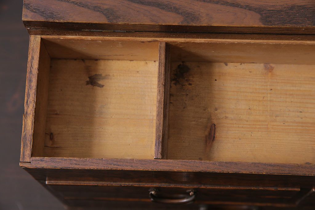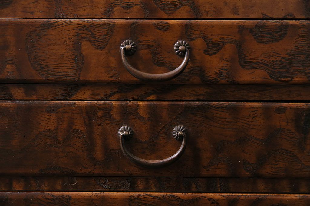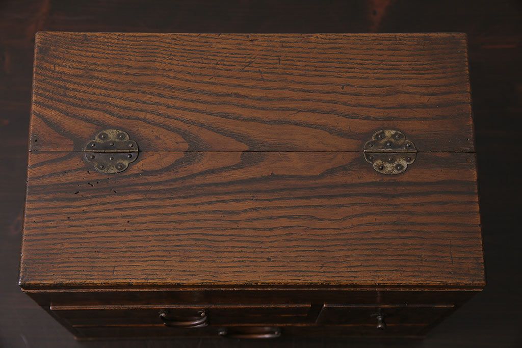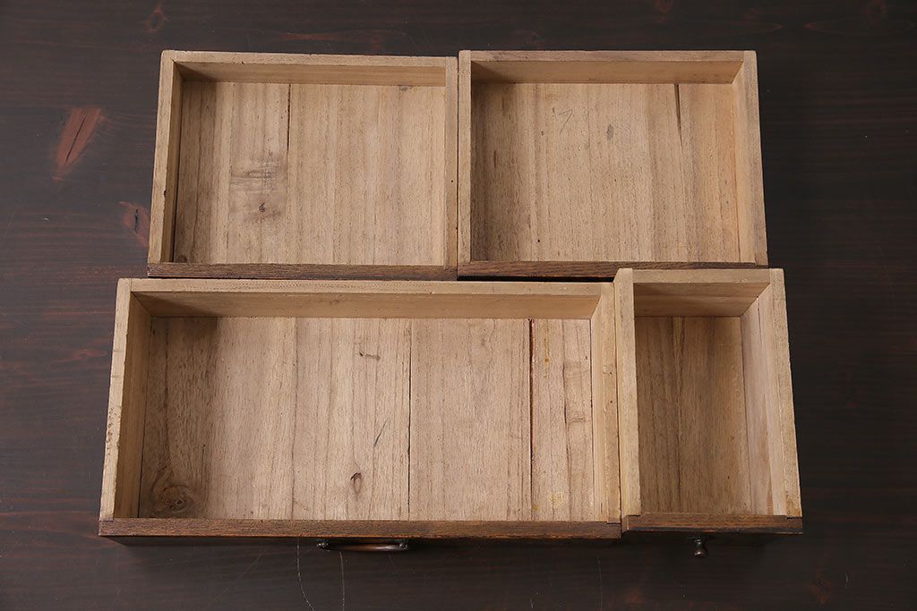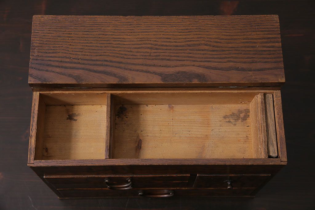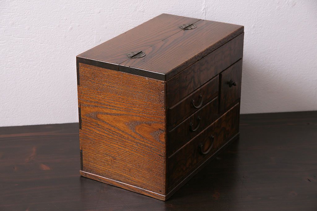 小物収納・トランク> 小引き出し > アンティーク家具 和製アンティーク 昭和中期 タモ材 波のような木目が美しい裁縫箱(ソーイングボックス、小引き出し、小物収納)(R-043906)