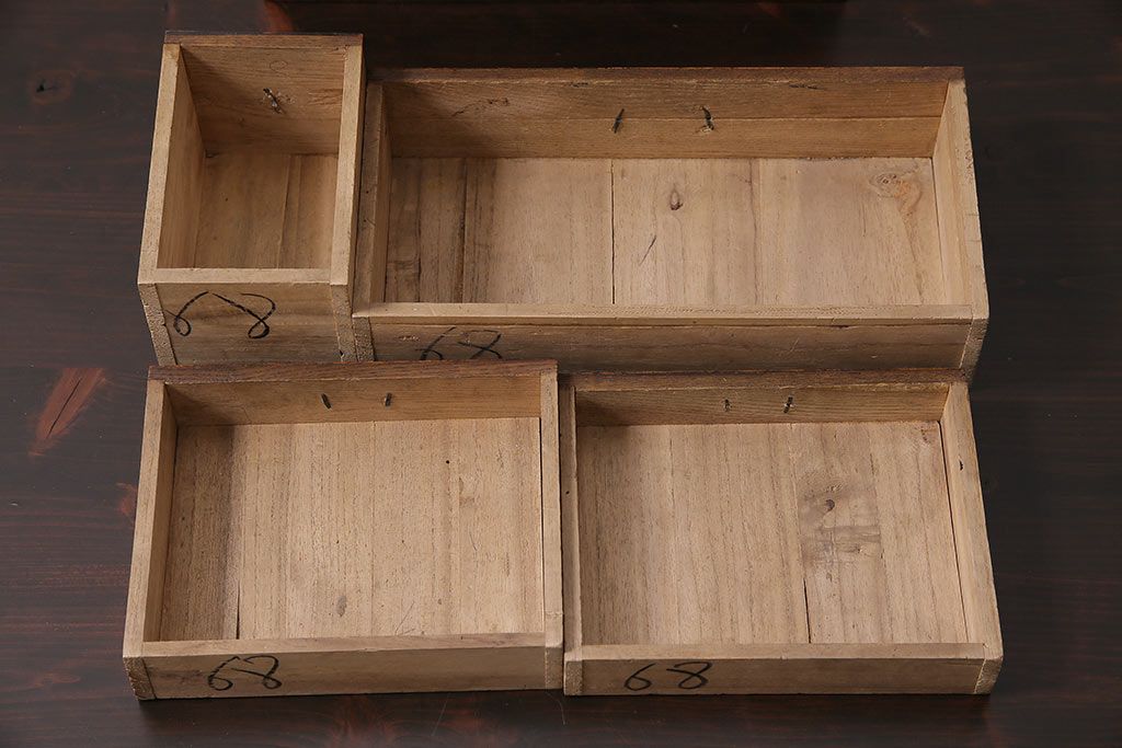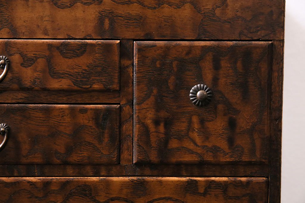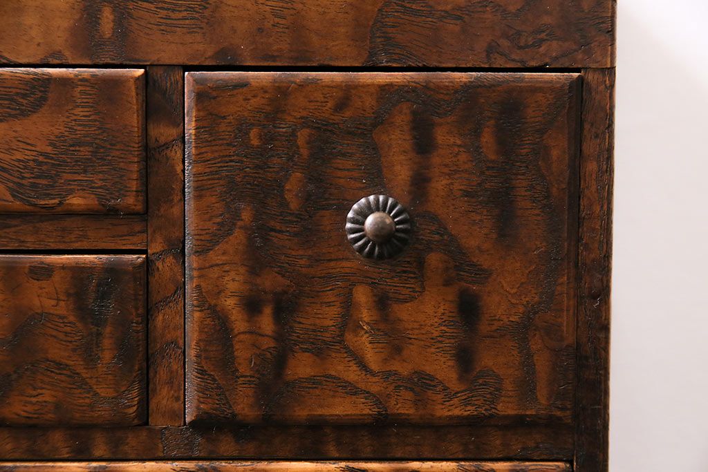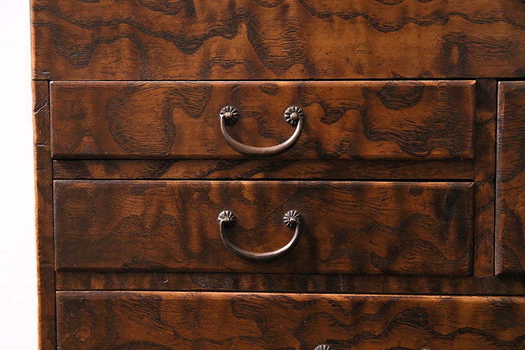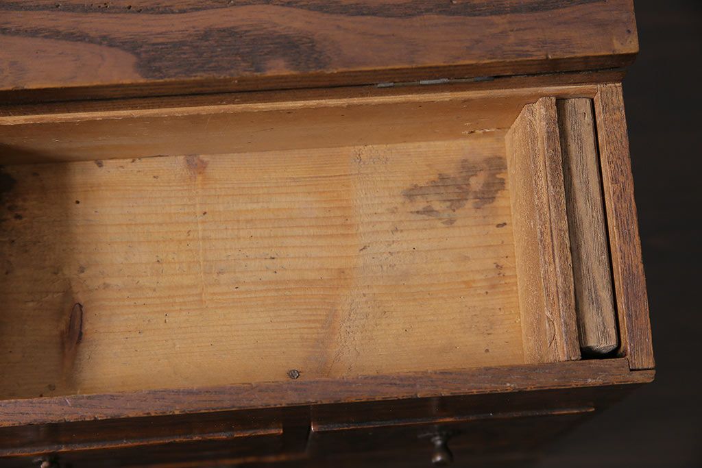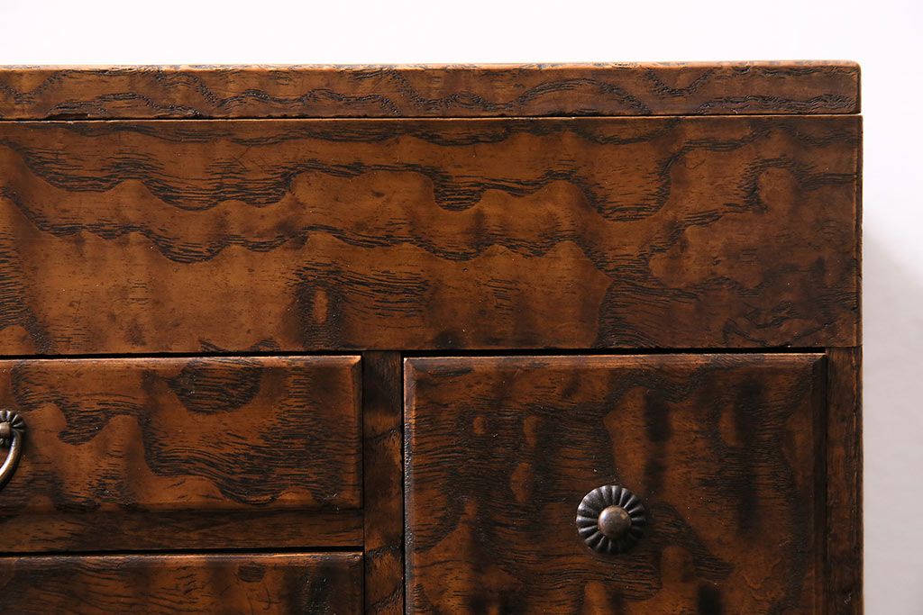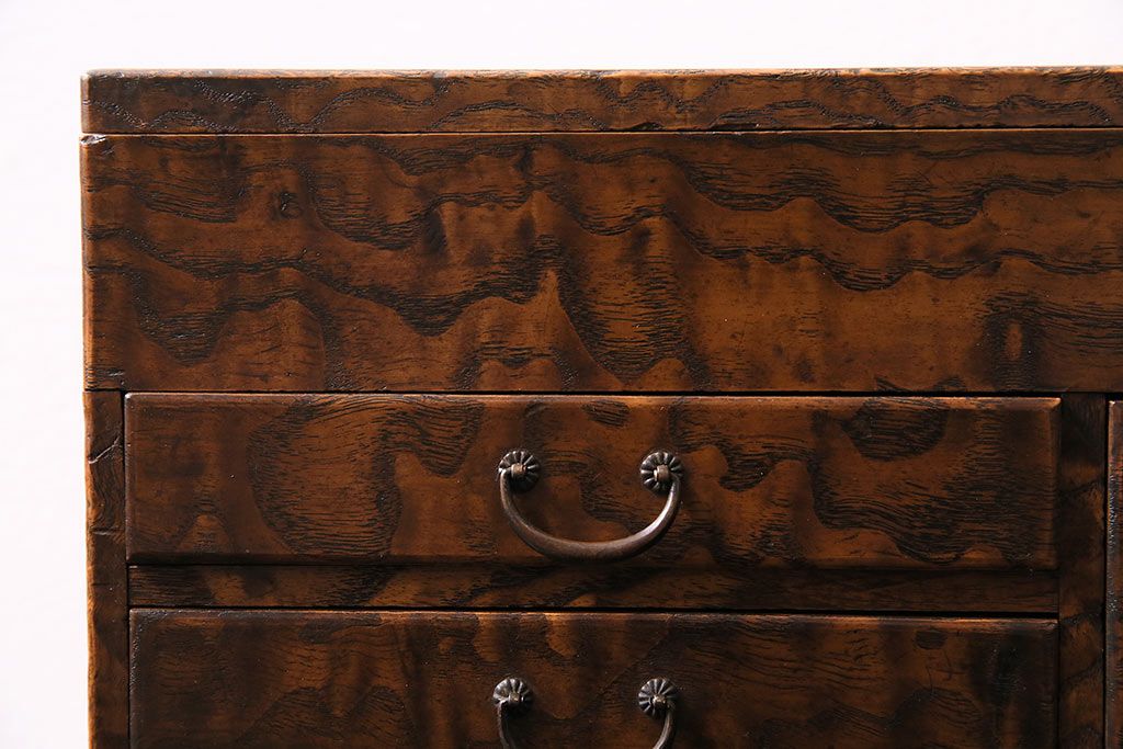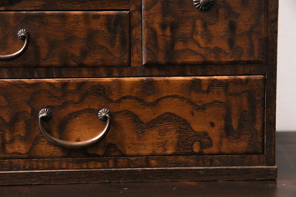 小物収納・トランク > アンティーク家具 和製アンティーク 昭和中期 タモ材 波のような木目が美しい裁縫箱(ソーイングボックス、小引き出し、小物収納)(R-043906)
