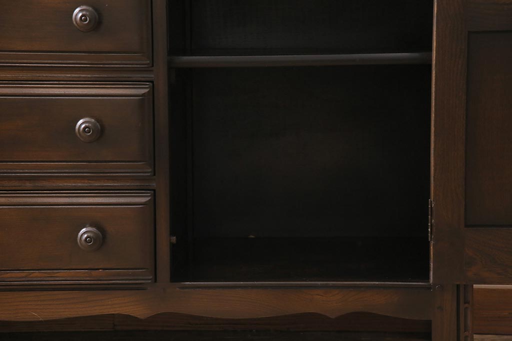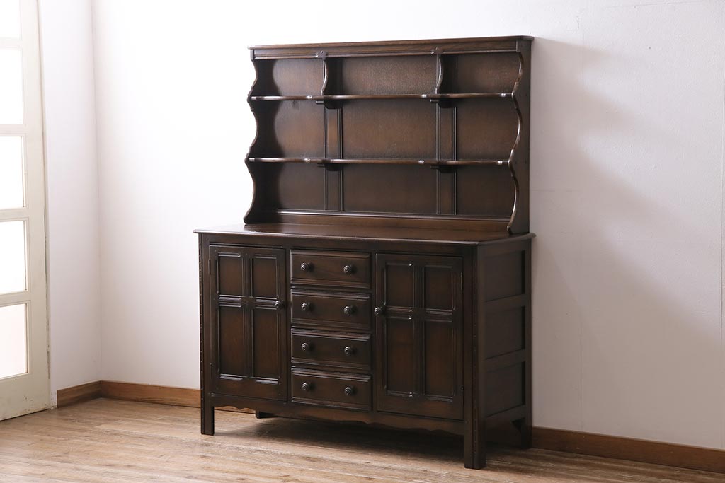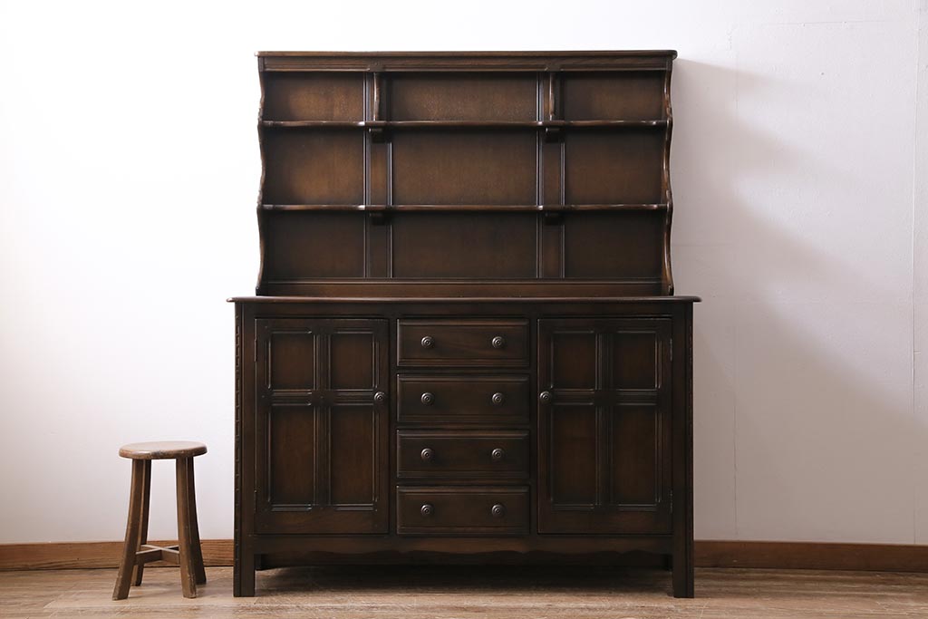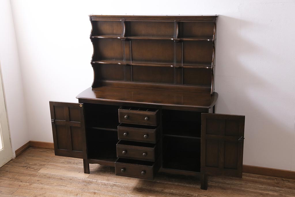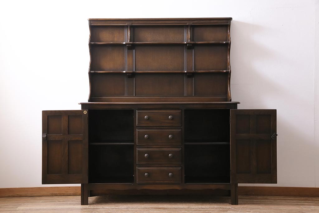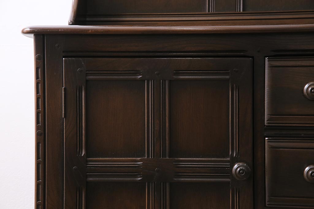 ヴィンテージ家具 イギリスビンテージ ERCOL(アーコール) Old Colonial(オールドコロニアル) 気品と風格が漂うカップボード(収納棚、食器棚)(R-044004)