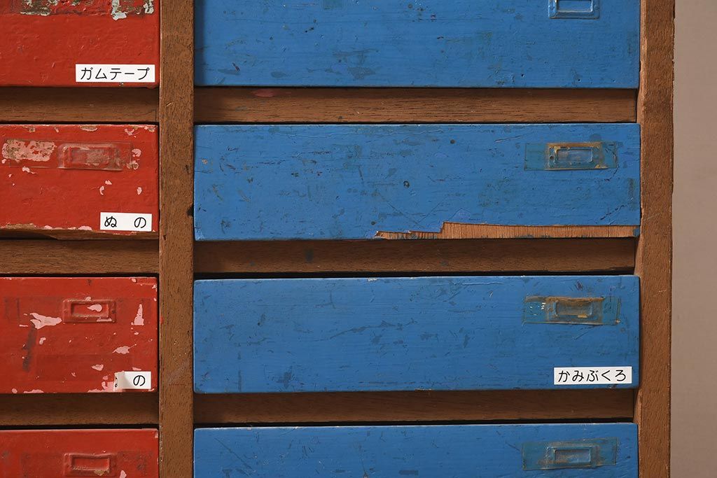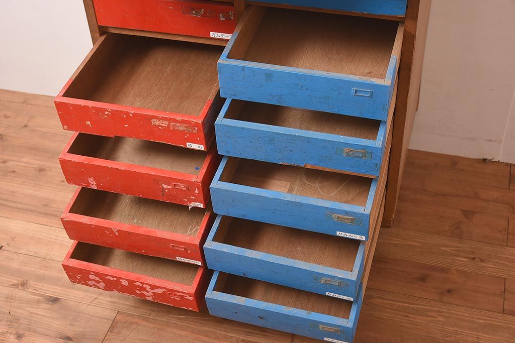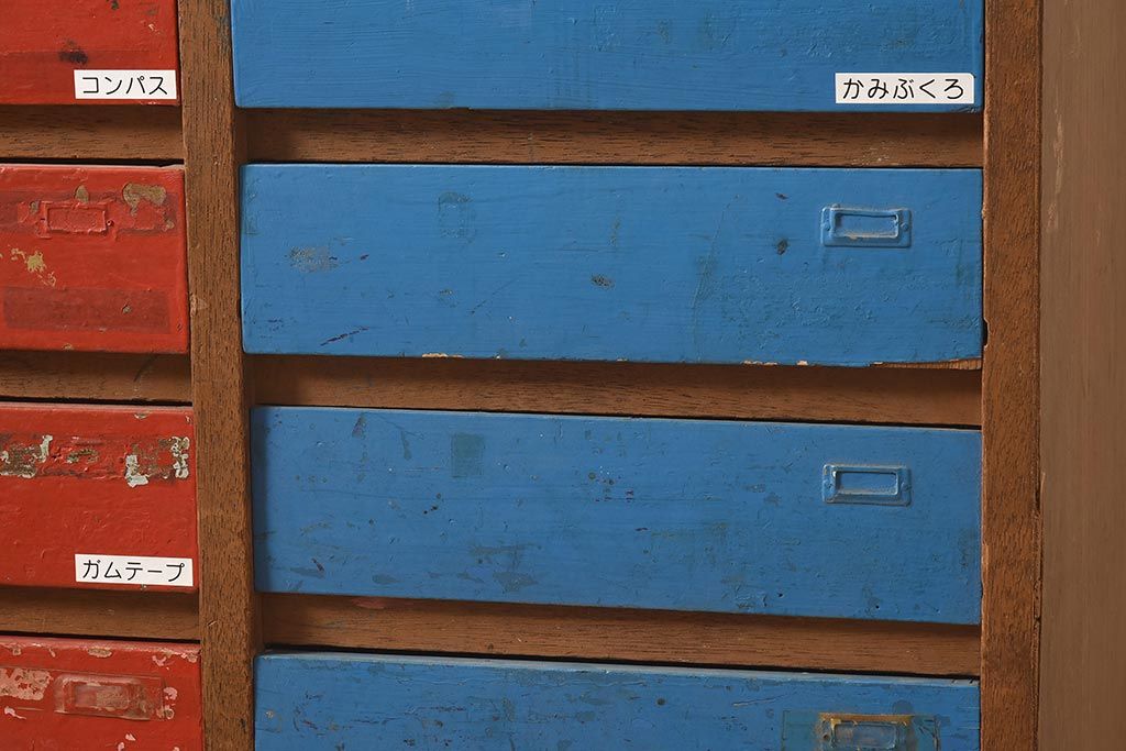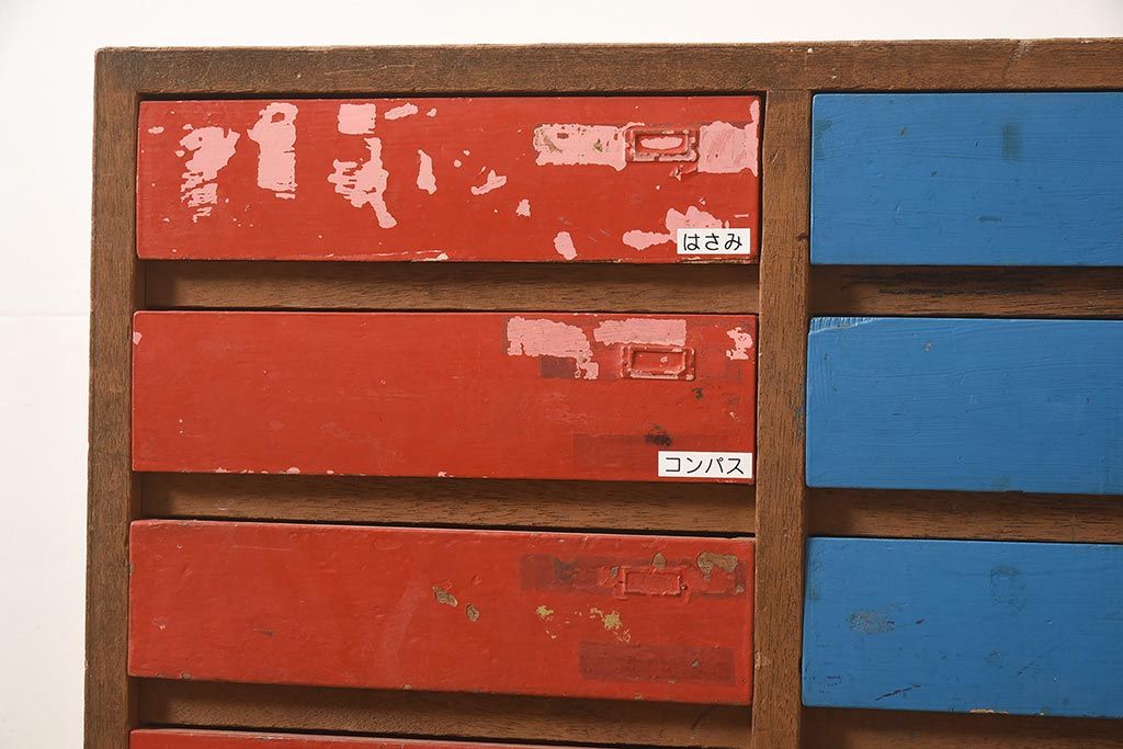 レトロ家具 昭和レトロ 昭和中期 図工室にありそうな趣たっぷりのチェスト(引き出し)(R-044066)