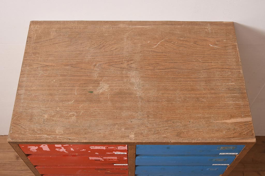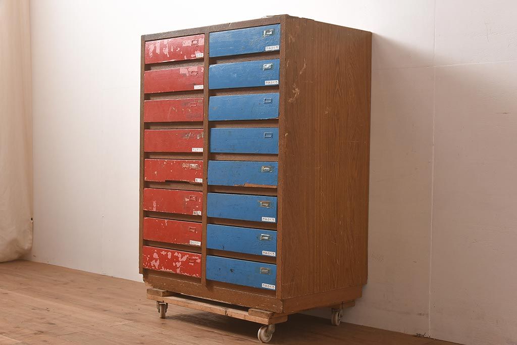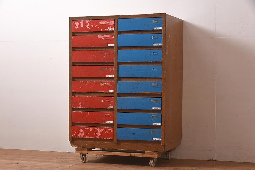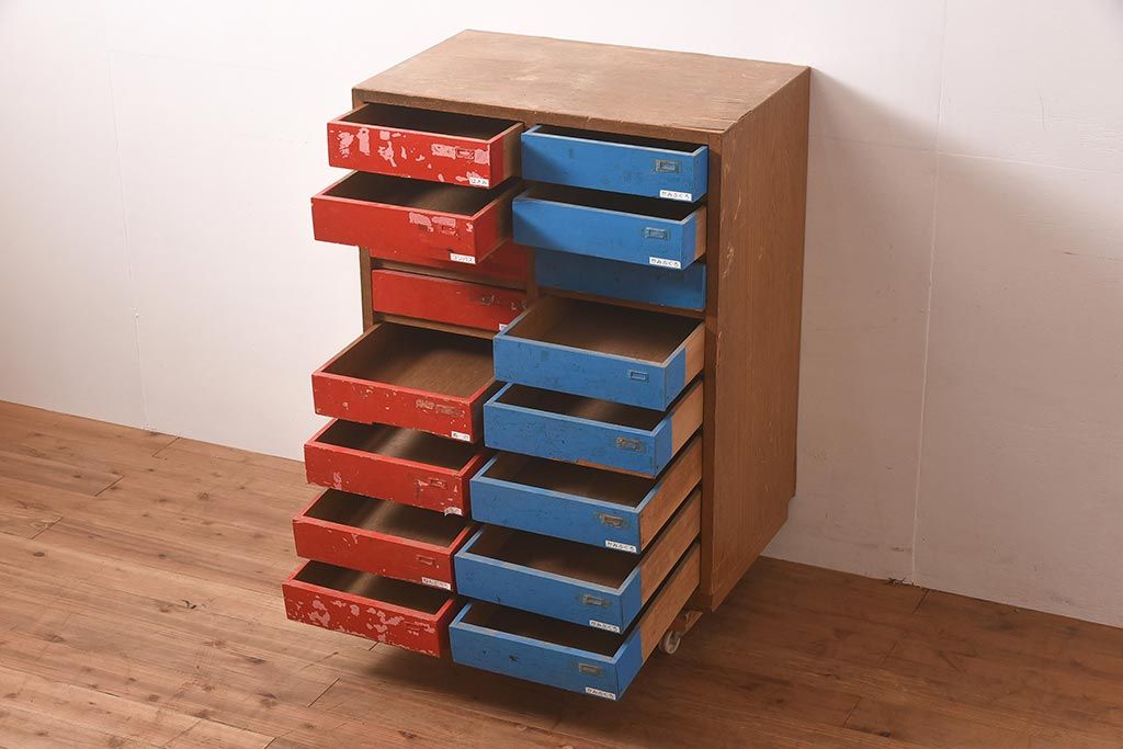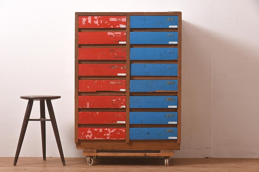 レトロ家具 昭和レトロ 昭和中期 図工室にありそうな趣たっぷりのチェスト(引き出し)(R-044066)