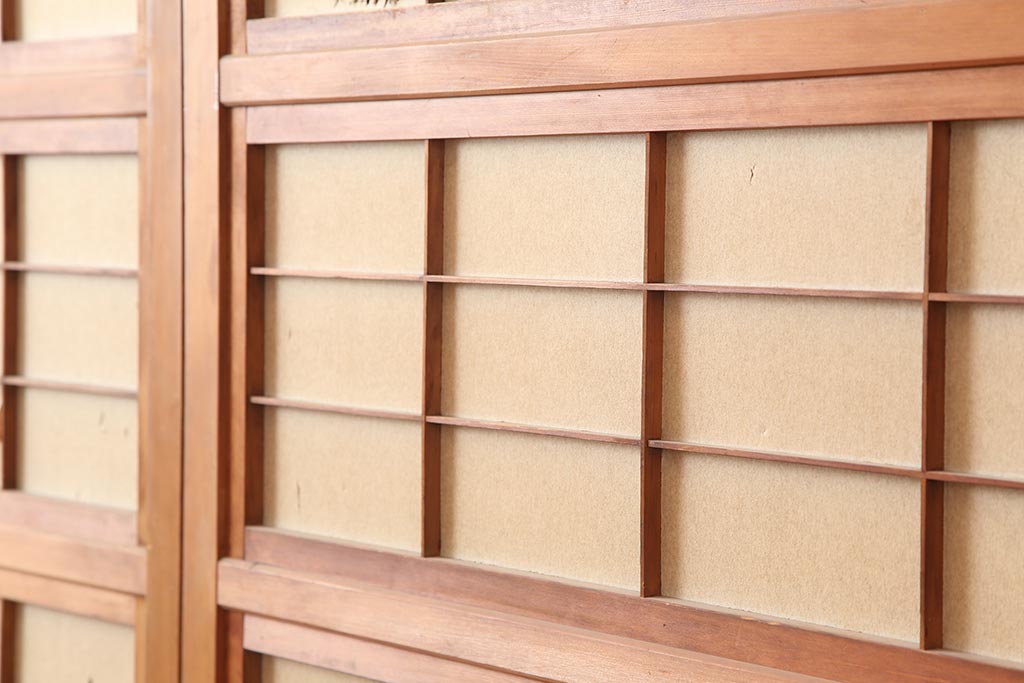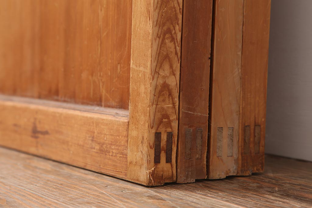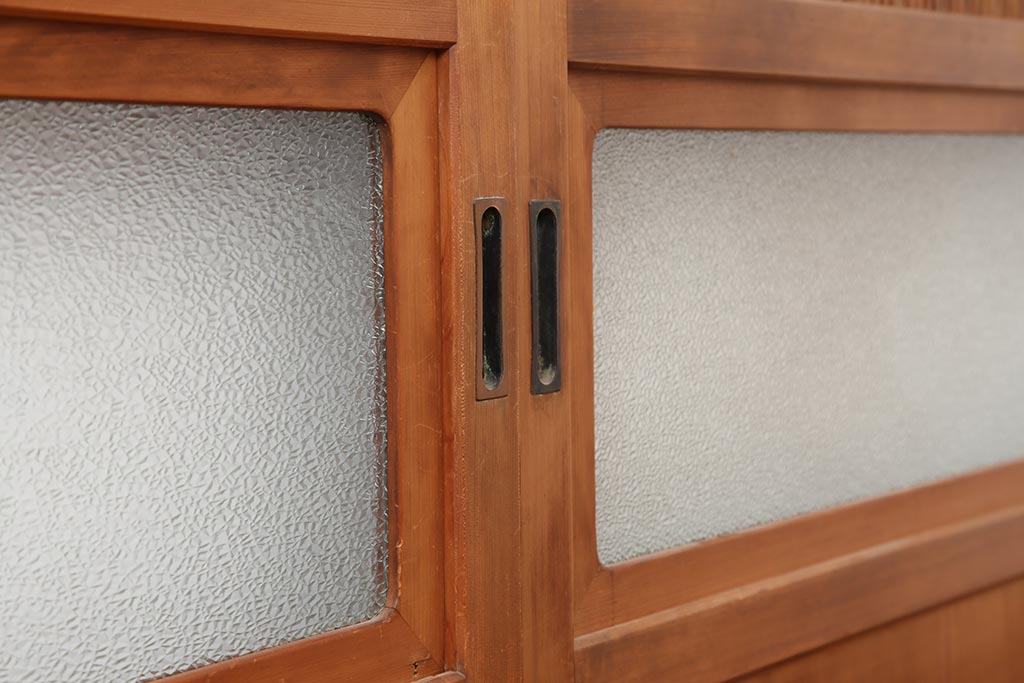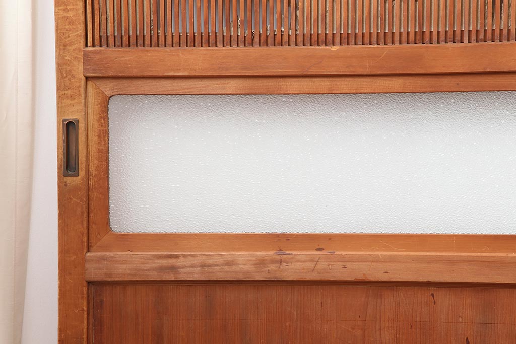 ドア・建具> 格子戸 > アンティーク建具 上手物 昭和初期 裏障子付き 万本格子戸4枚セット(帯ガラス戸、引き戸)(R-044082)