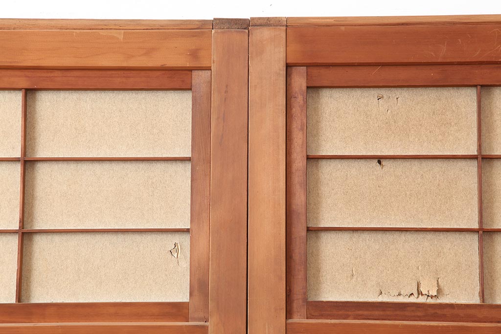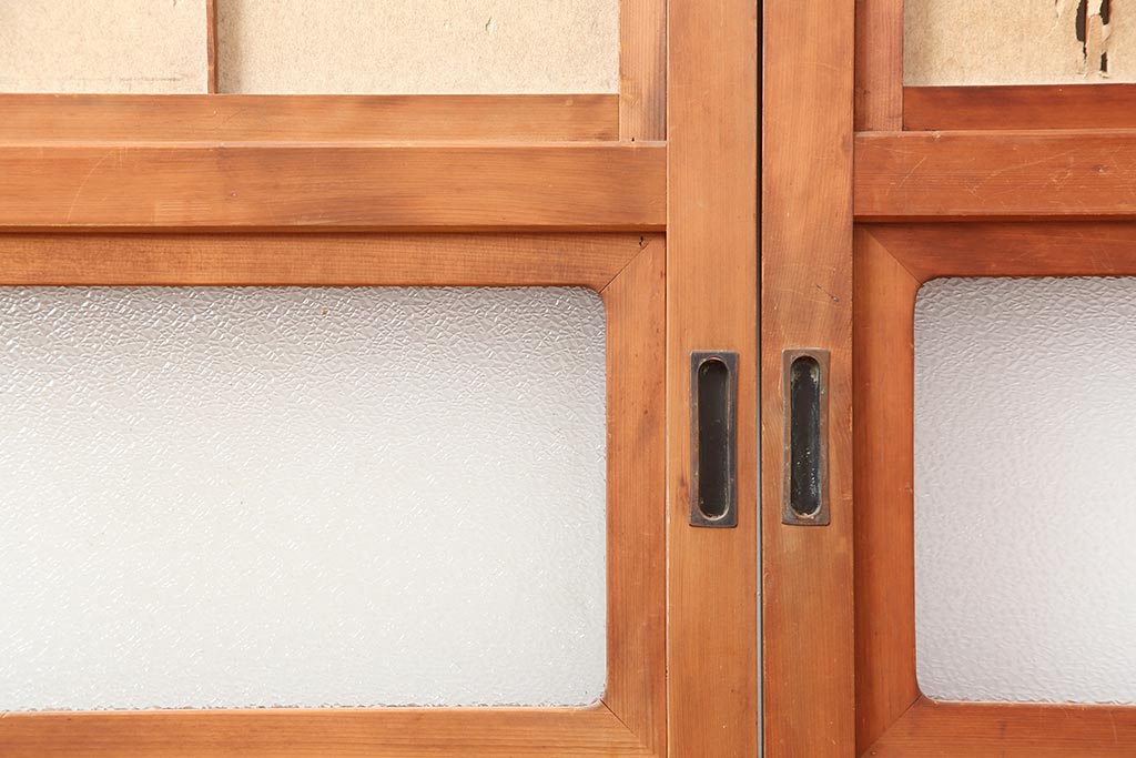アンティーク建具 上手物 昭和初期 裏障子付き 万本格子戸4枚セット(帯ガラス戸、引き戸)(R-044082)