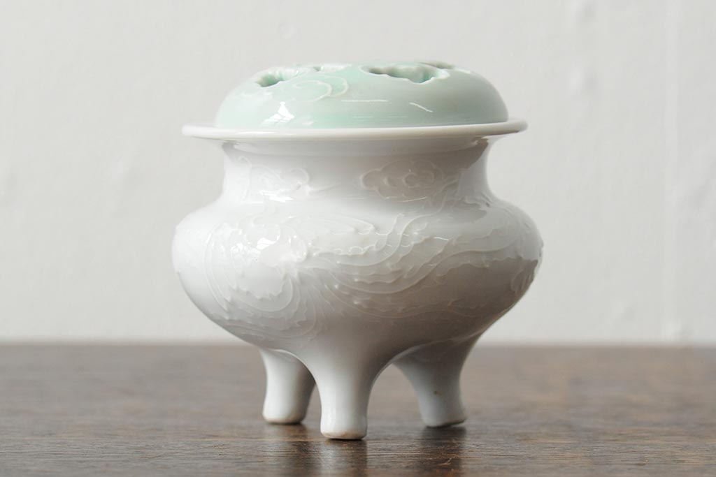 善夫銘 鳳香炉(白磁、青磁、共箱、茶道具)(R-043731)