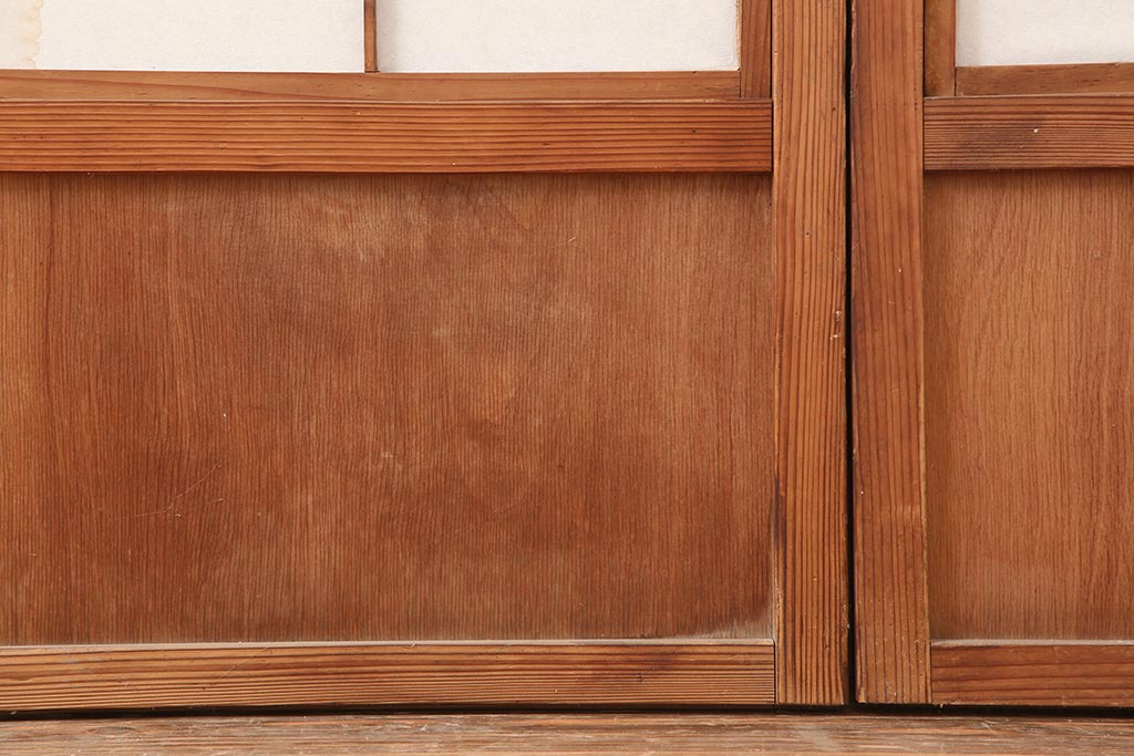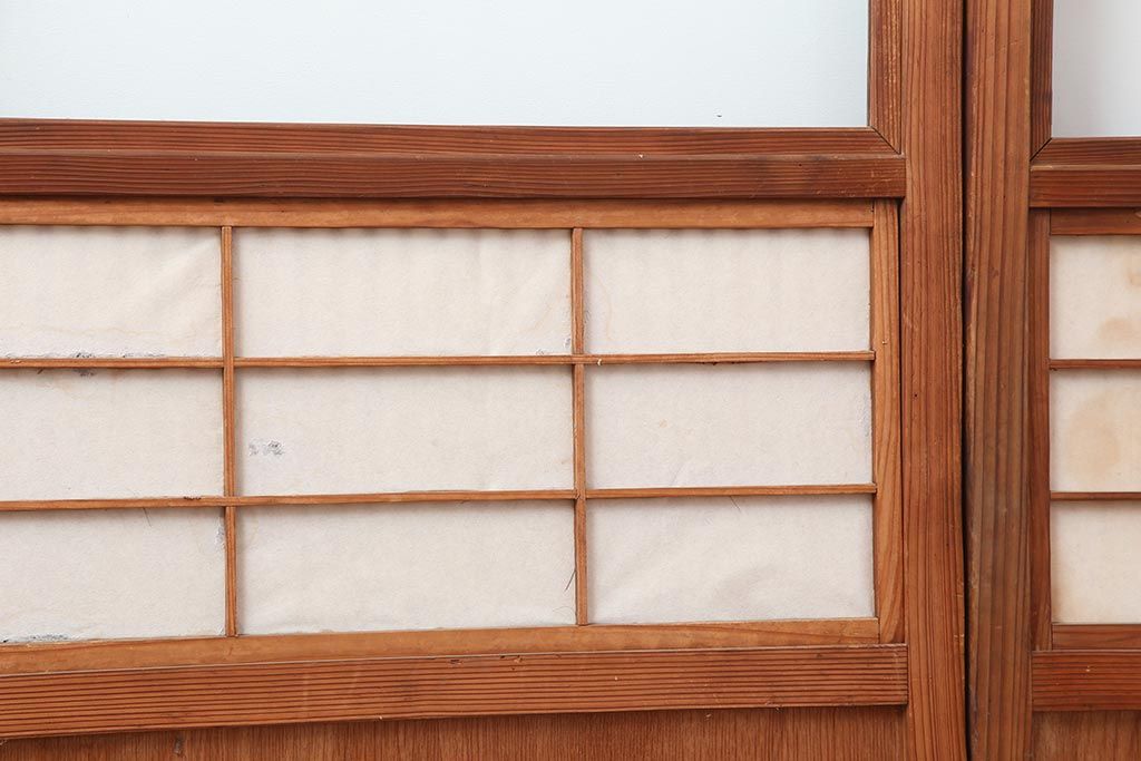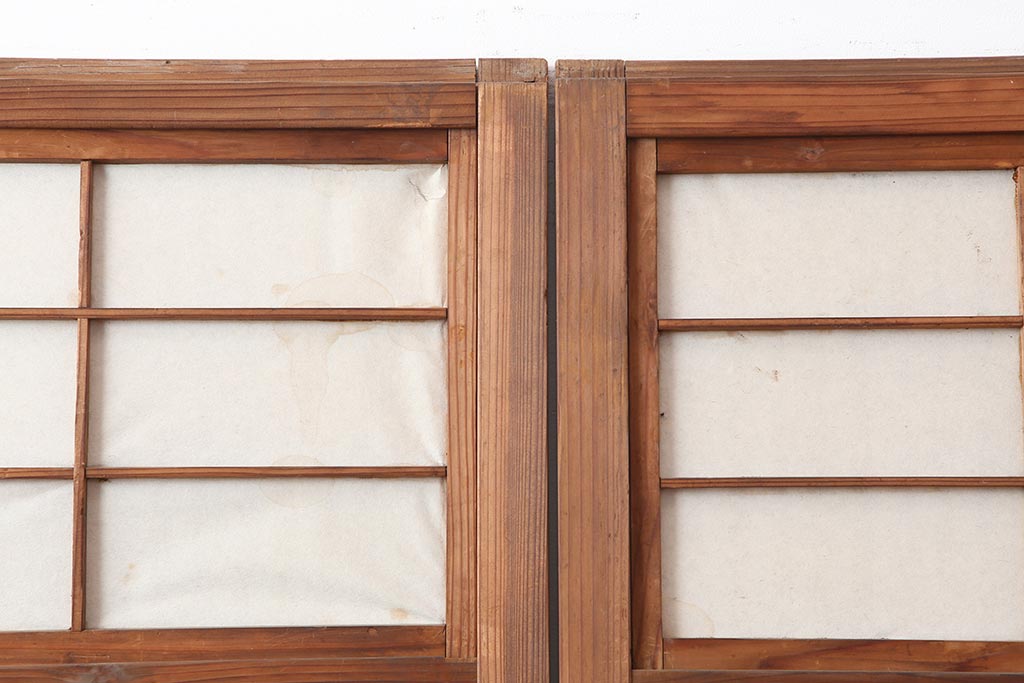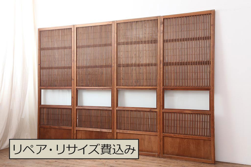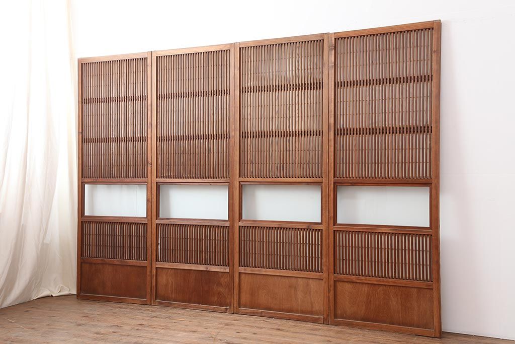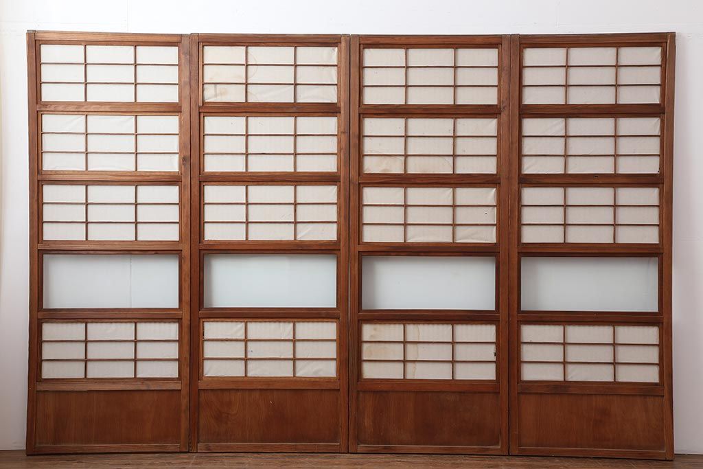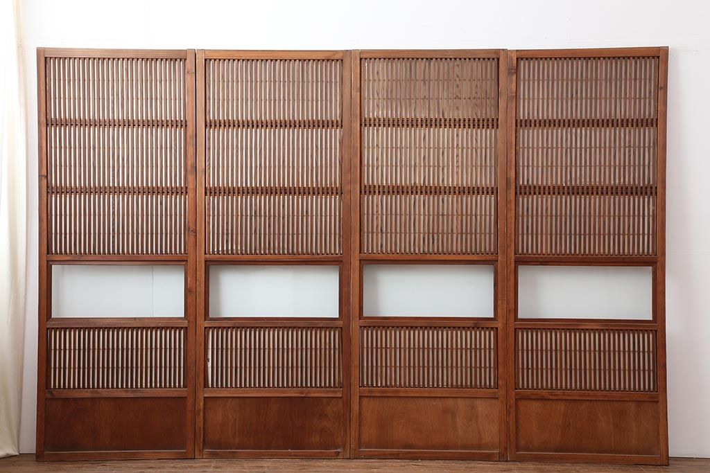 ドア・建具> 障子戸 > アンティーク建具 裏障子付き 和風の空間づくりにおすすめな格子戸4枚セット(ガラス帯戸、引き戸、建具)(R-044118)