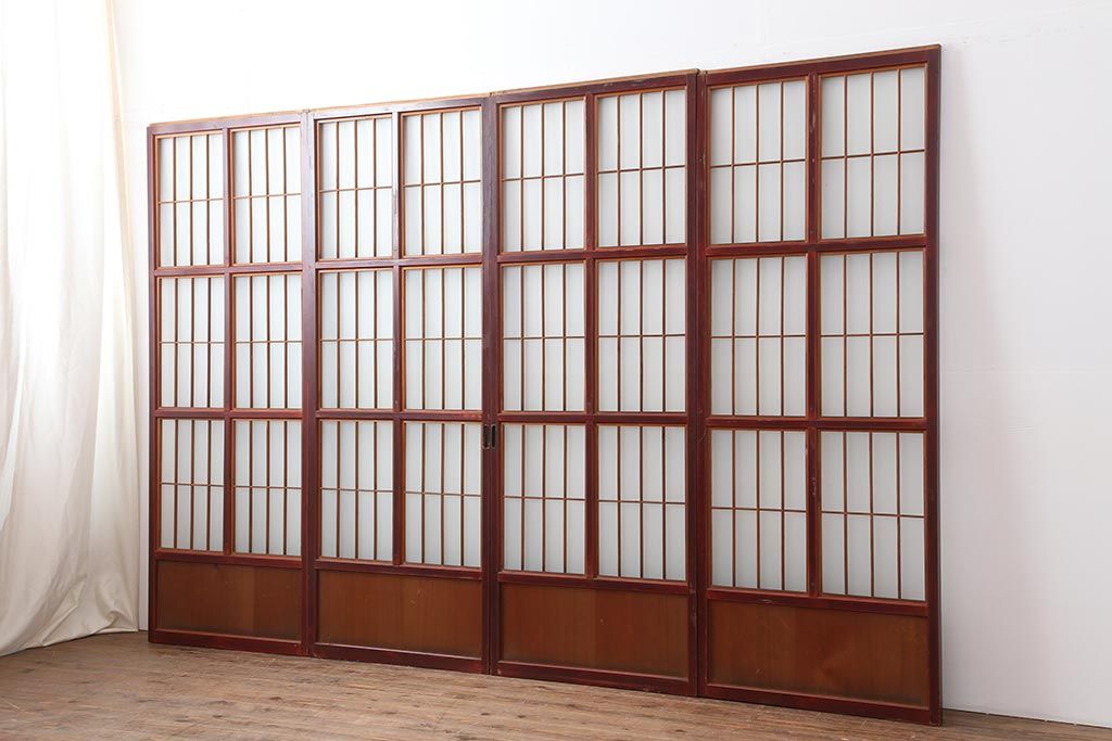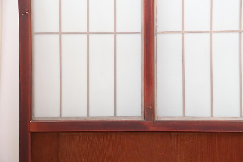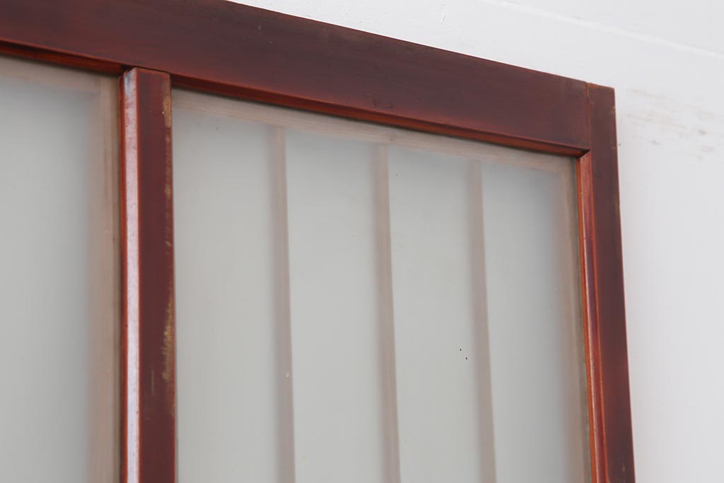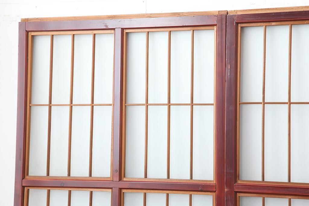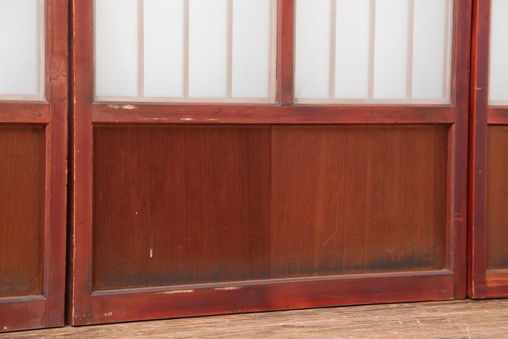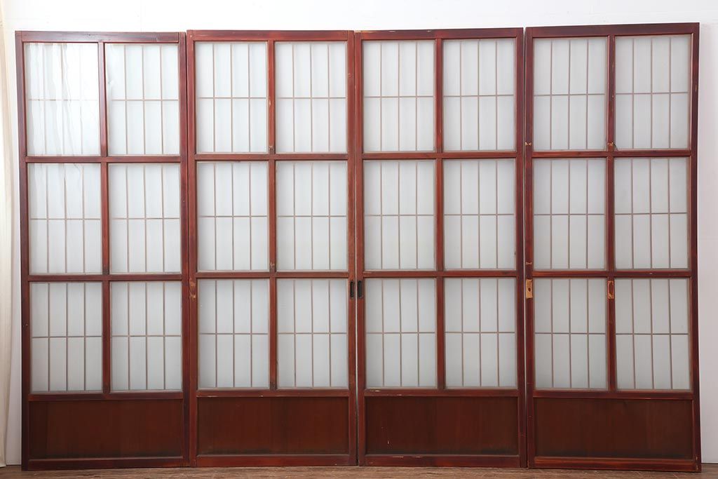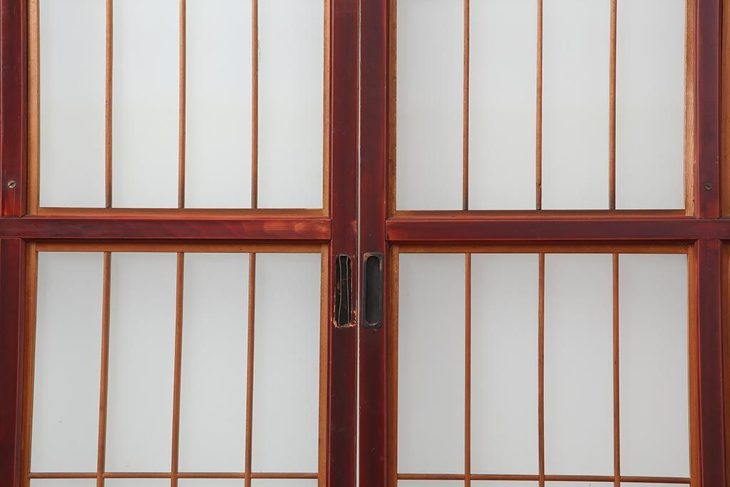 アンティーク建具 大正昭和初期 大正ロマン 赤褐色の木肌が美しいガラス戸4枚セット(引き戸、建具)(R-044146)