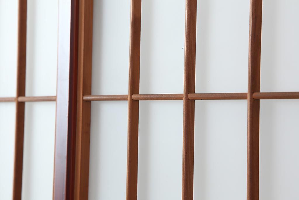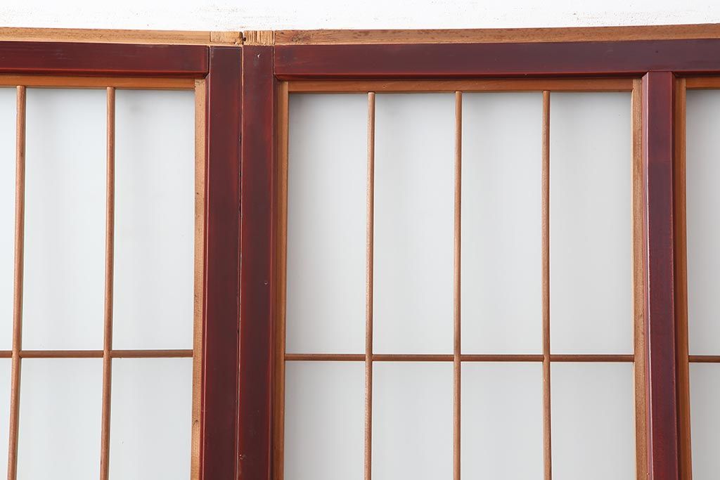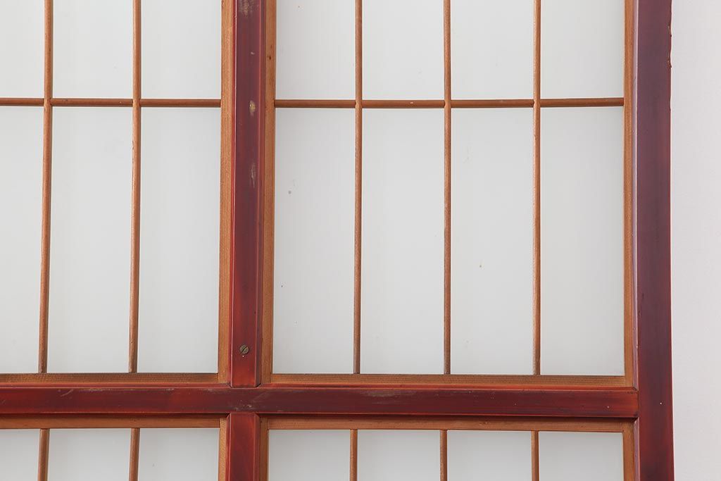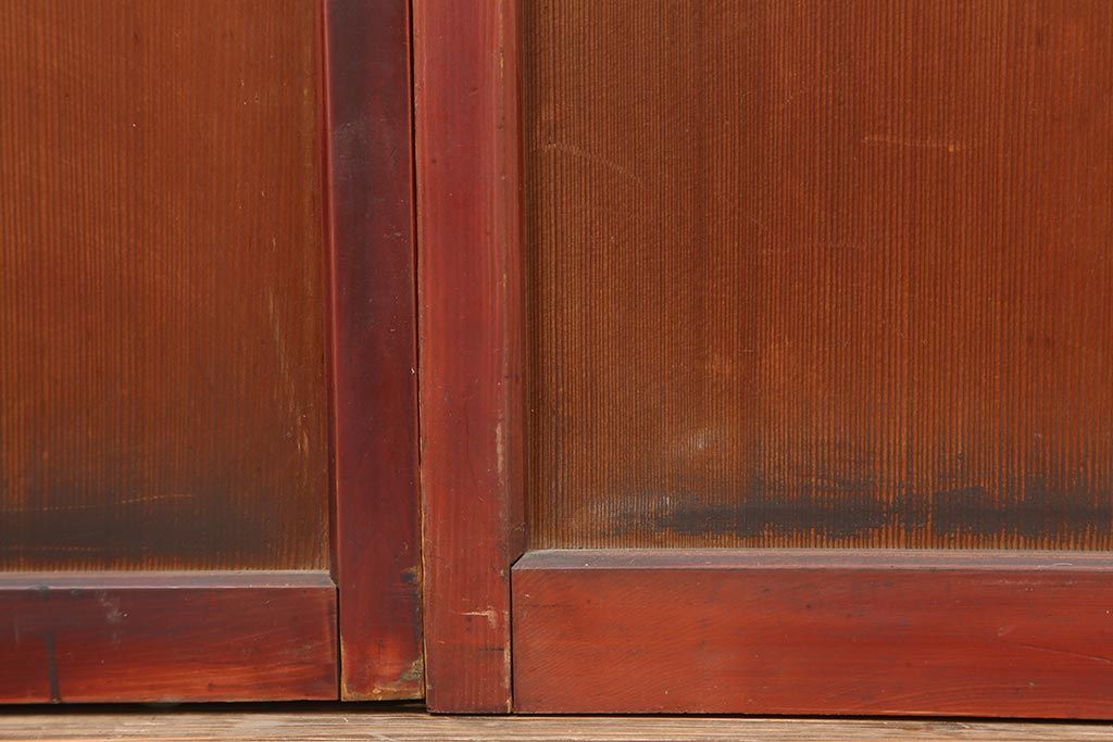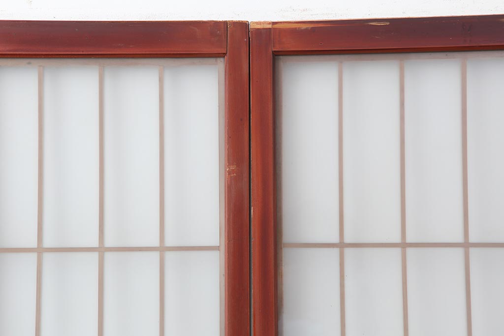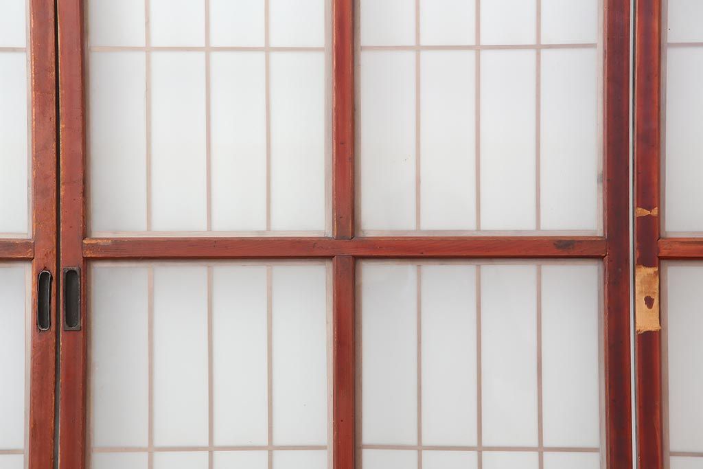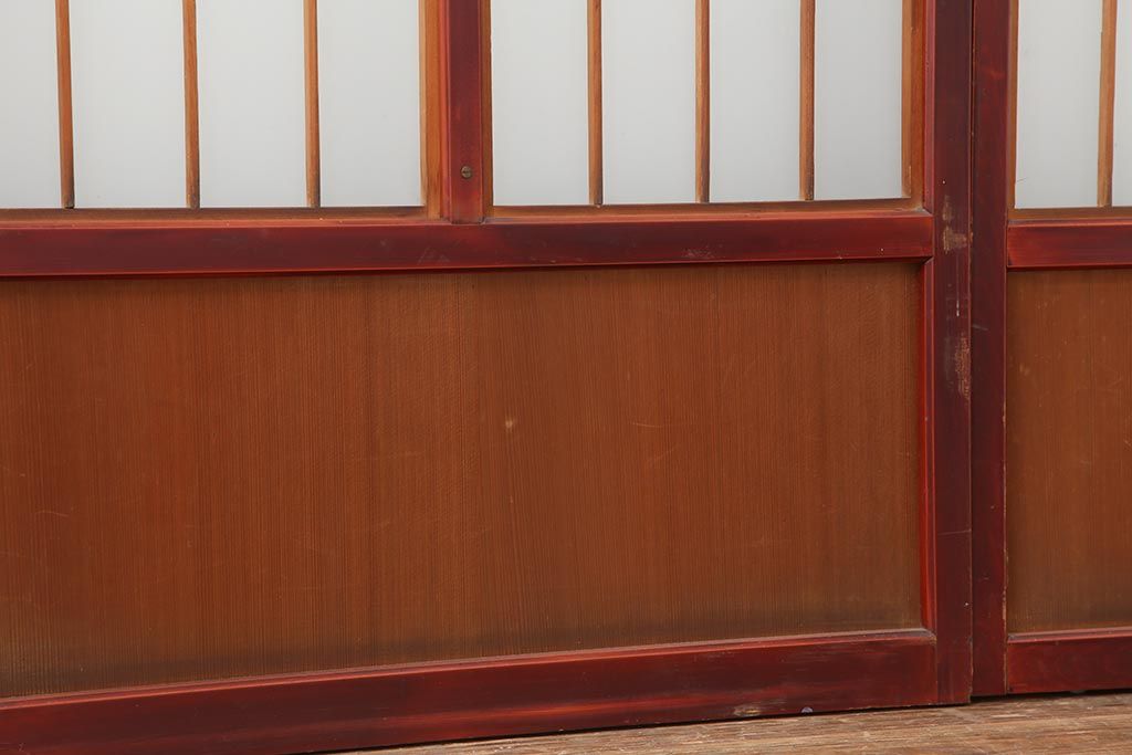 アンティーク建具 大正昭和初期 大正ロマン 赤褐色の木肌が美しいガラス戸4枚セット(引き戸、建具)(R-044146)