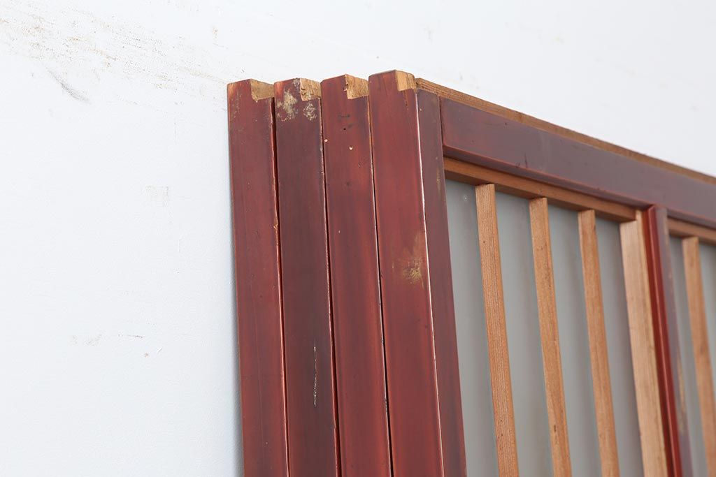 ラフジュ工房> ドア・建具> 格子戸 > アンティーク建具 大正昭和初期 大正ロマン 赤褐色の木肌が美しいガラス戸4枚セット(引き戸、建具)(R-044146)
