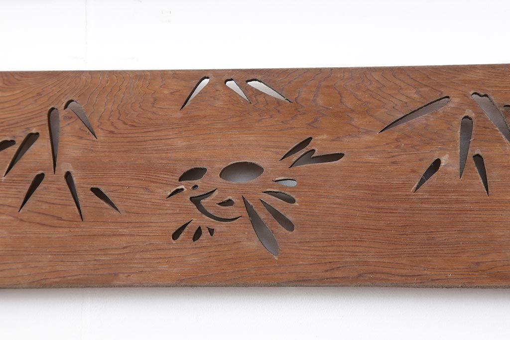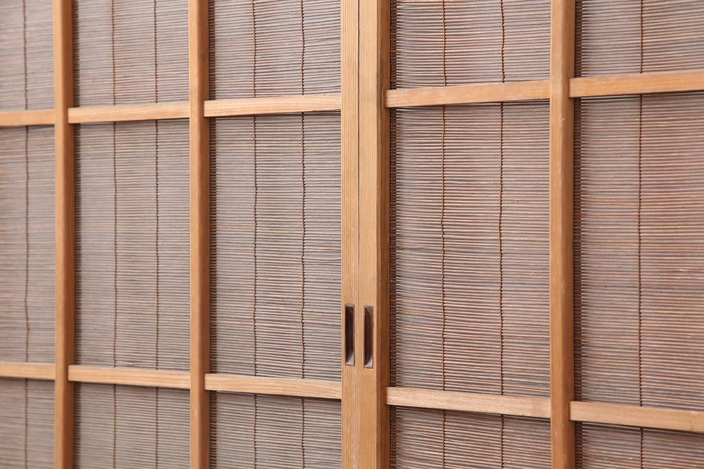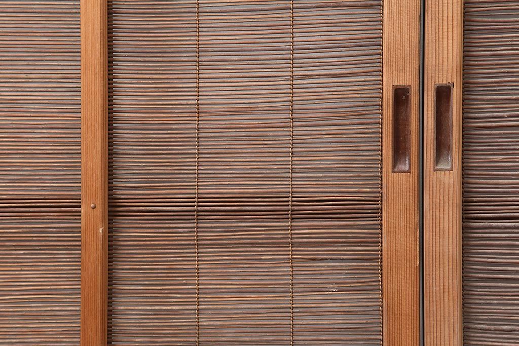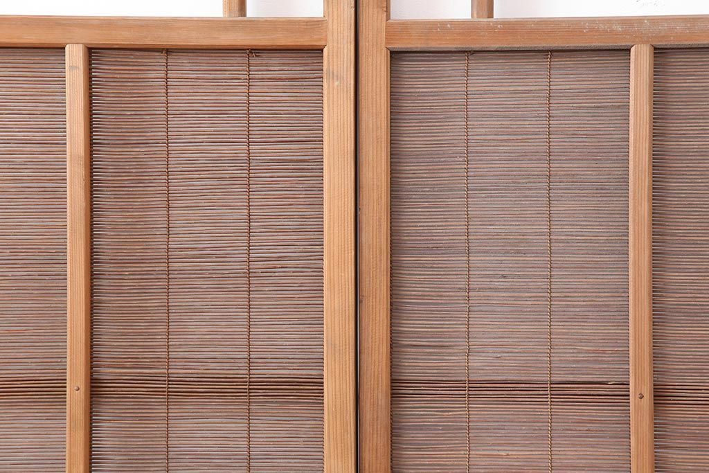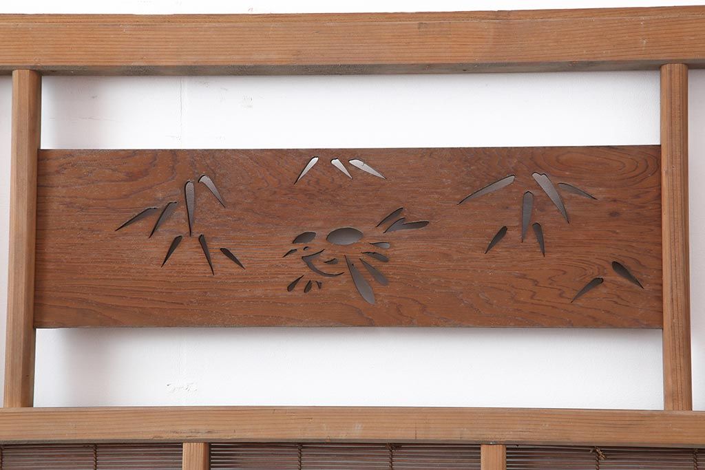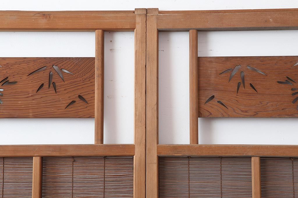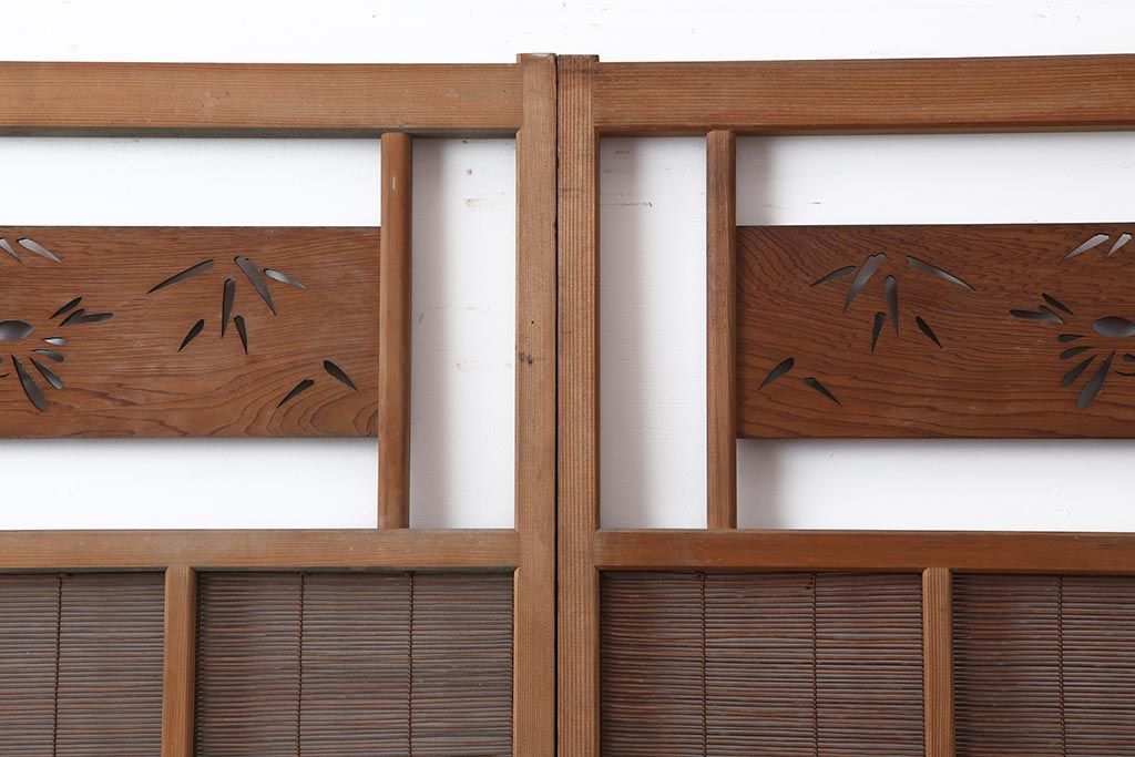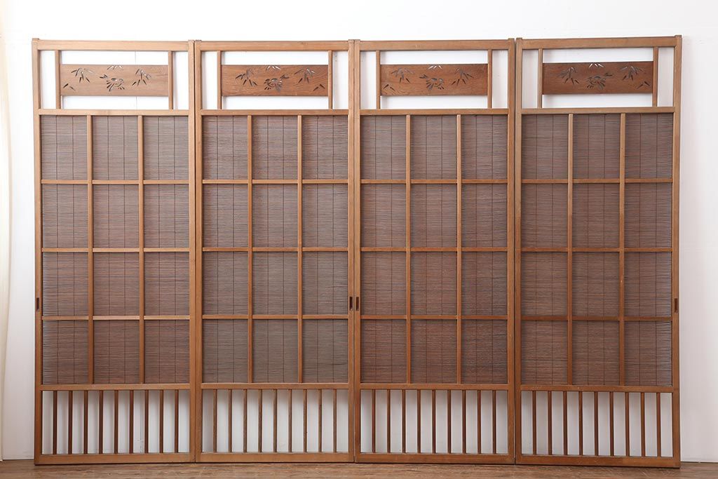 ドア・建具> 引き戸 > アンティーク建具 昭和中期 竹に雀の透かし彫りが風情のある御簾戸4枚セット(簾戸、簀戸、葭戸、夏障子、夏戸、葦戸)(R-044047)