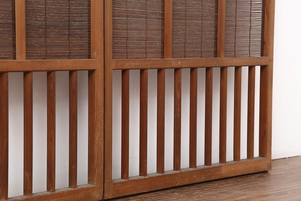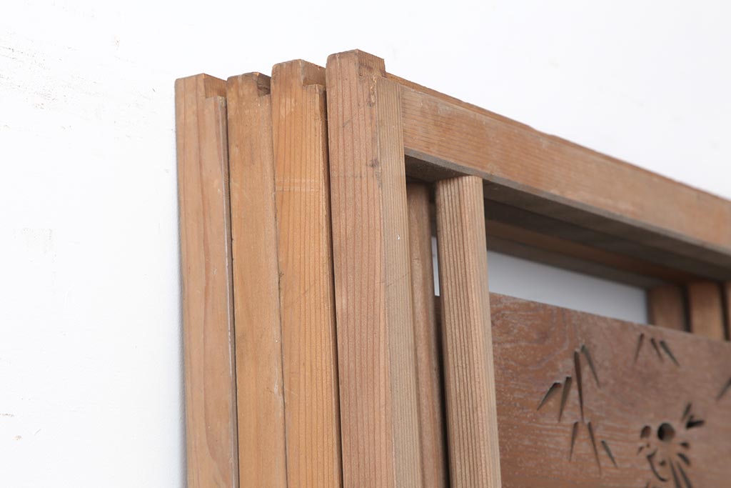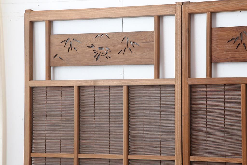 ドア・建具> 4枚〜セット > アンティーク建具 昭和中期 竹に雀の透かし彫りが風情のある御簾戸4枚セット(簾戸、簀戸、葭戸、夏障子、夏戸、葦戸)(R-044047)