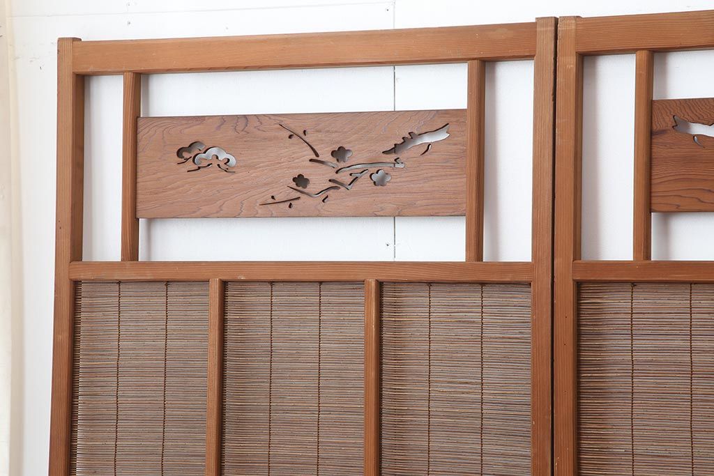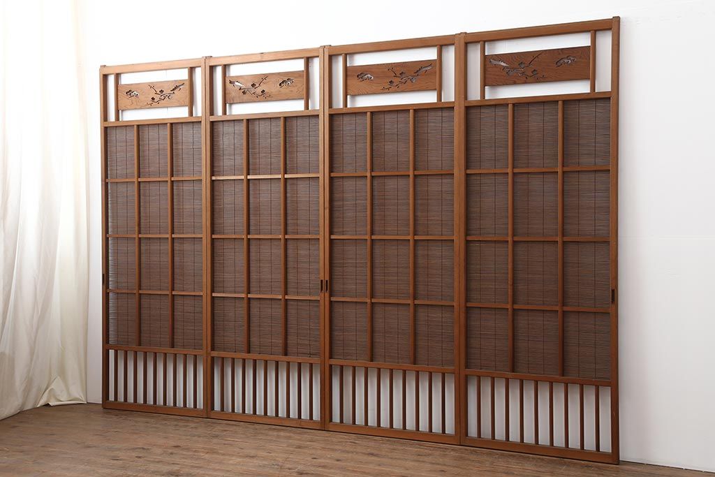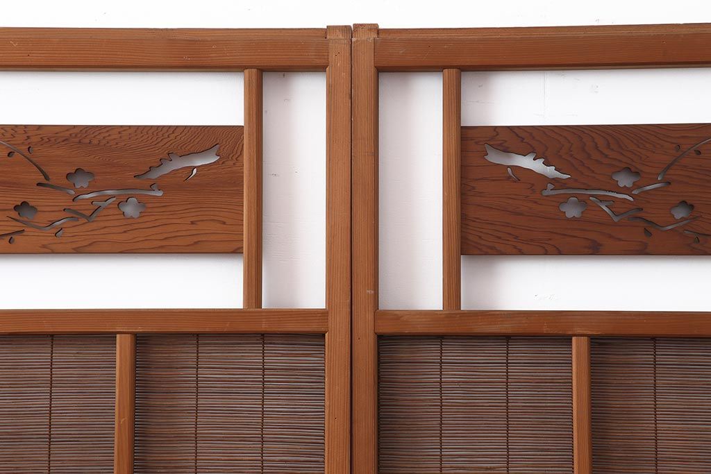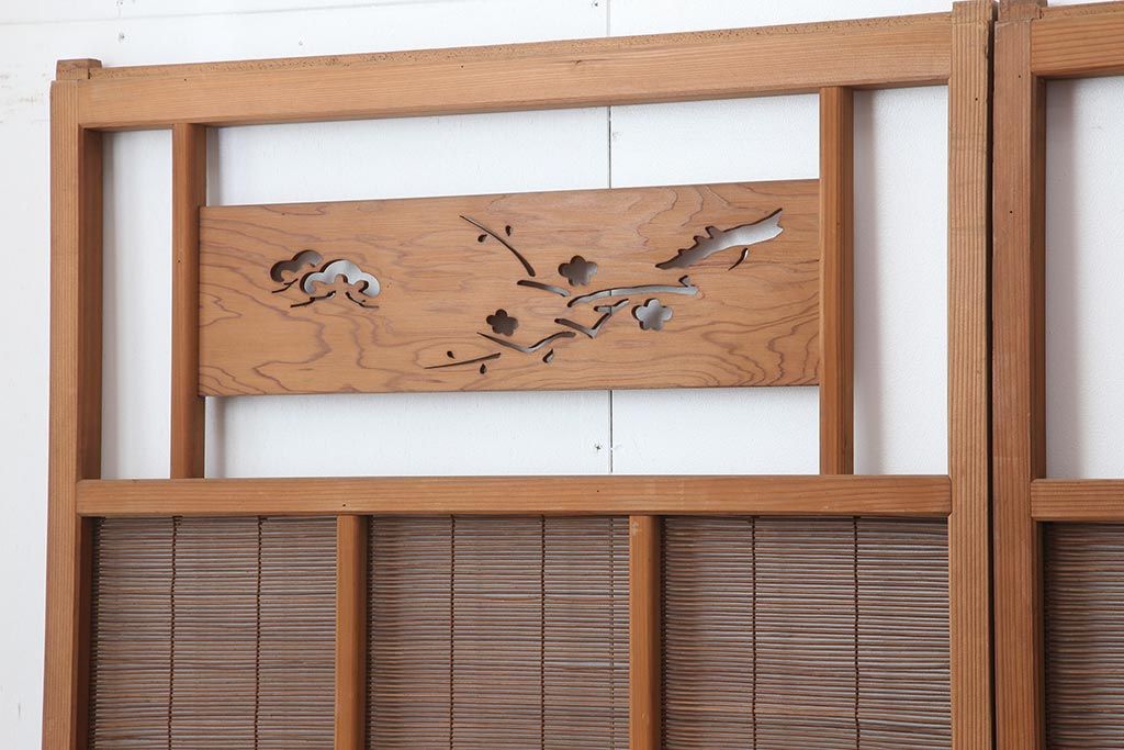 ドア・建具> 引き戸 > アンティーク建具 昭和中期 松と梅の透かし彫りが風情のある御簾戸4枚セット(簾戸、簀戸、葭戸、夏障子、夏戸、葦戸)(R-044046)