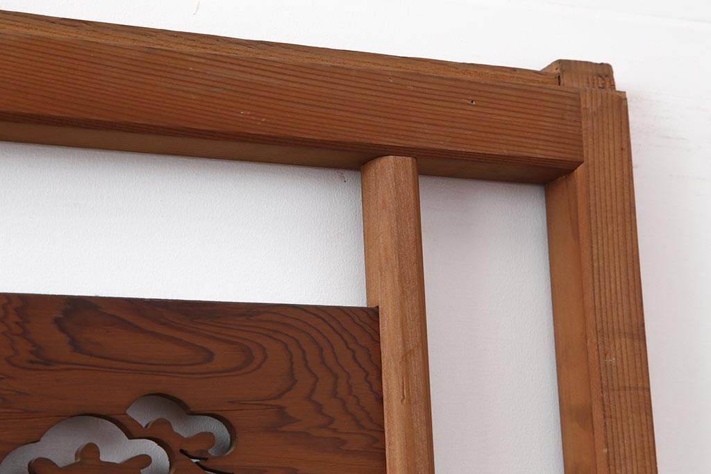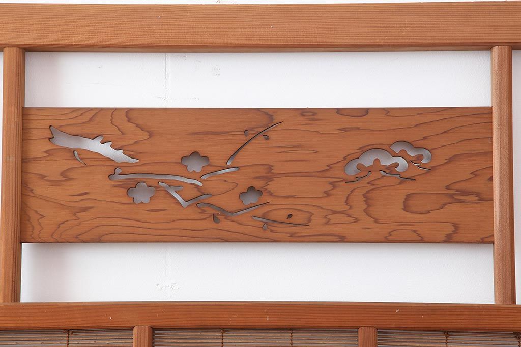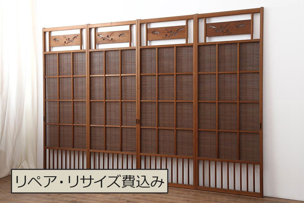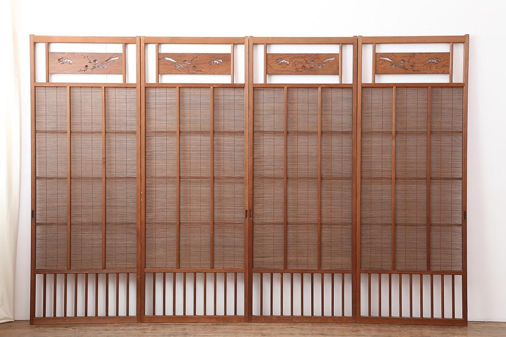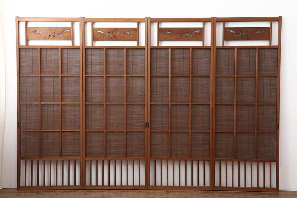 ドア・建具> 引き戸 > アンティーク建具 昭和中期 松と梅の透かし彫りが風情のある御簾戸4枚セット(簾戸、簀戸、葭戸、夏障子、夏戸、葦戸)(R-044046)