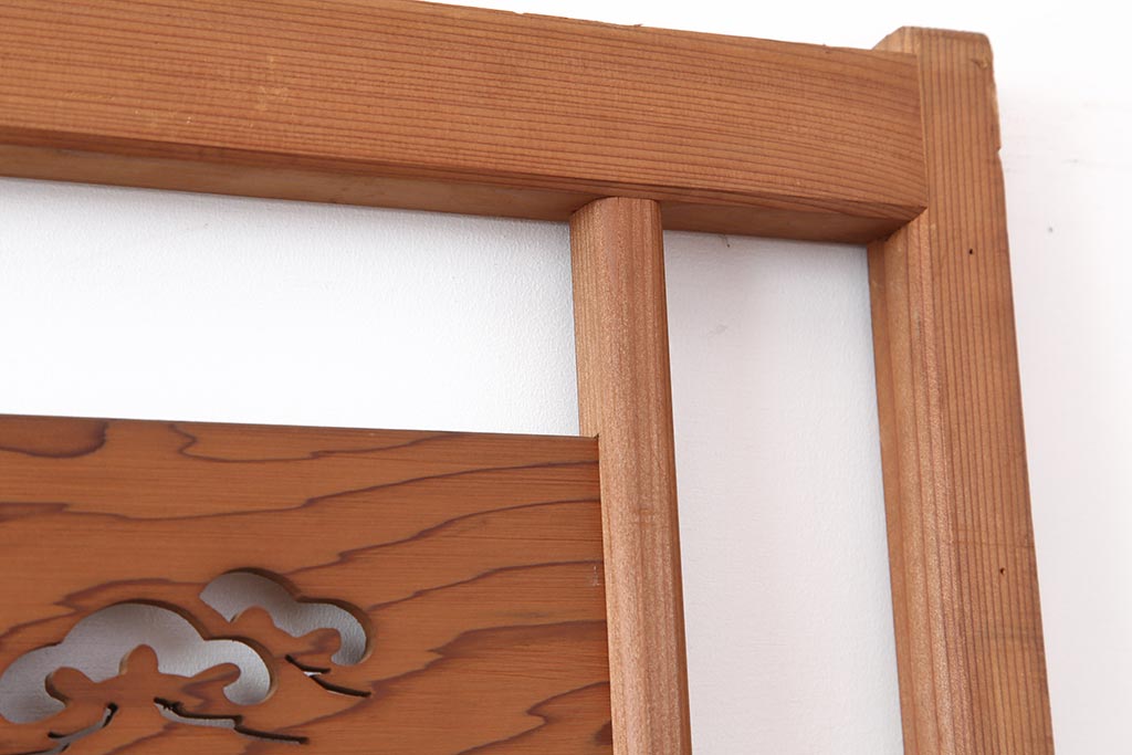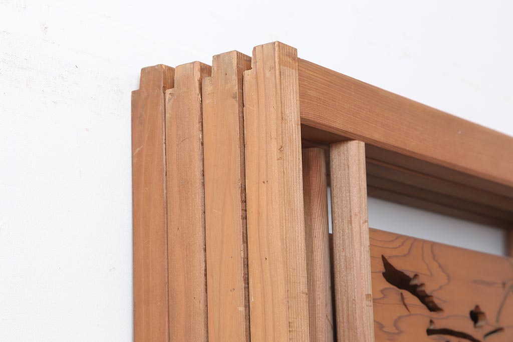 ドア・建具> 4枚〜セット > アンティーク建具 昭和中期 松と梅の透かし彫りが風情のある御簾戸4枚セット(簾戸、簀戸、葭戸、夏障子、夏戸、葦戸)(R-044046)