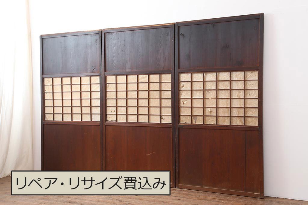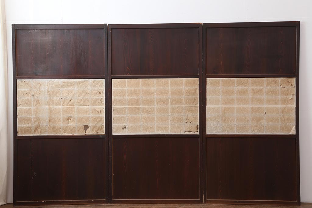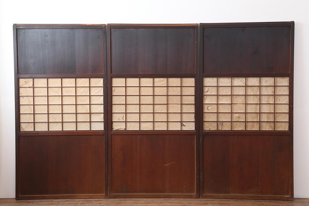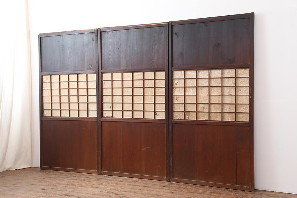 アンティーク建具 大正期 趣あふれる障子帯戸3枚セット(障子戸、格子戸、板戸、建具、引き戸)(R-044064)