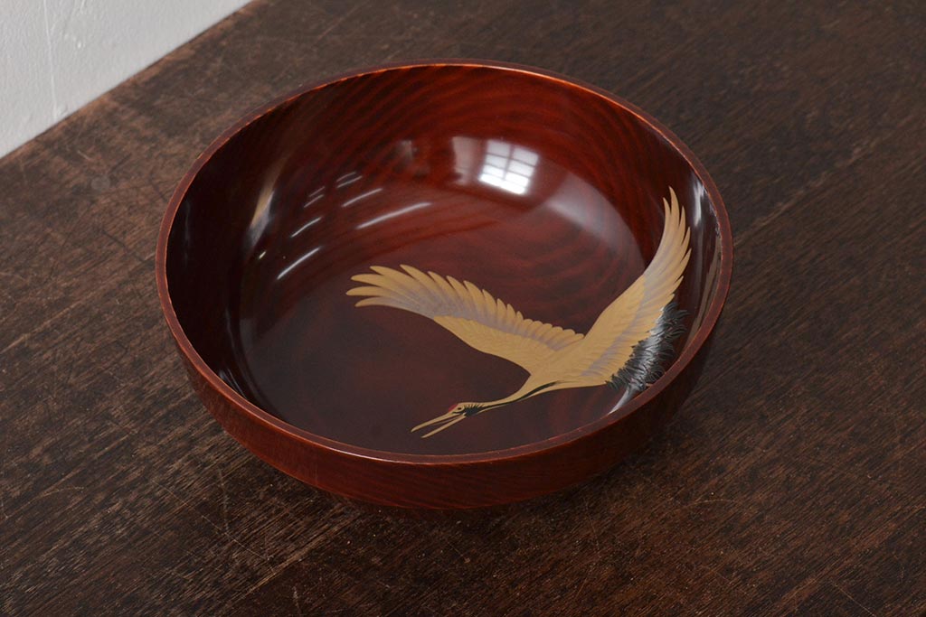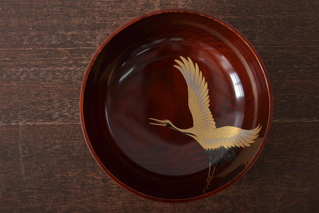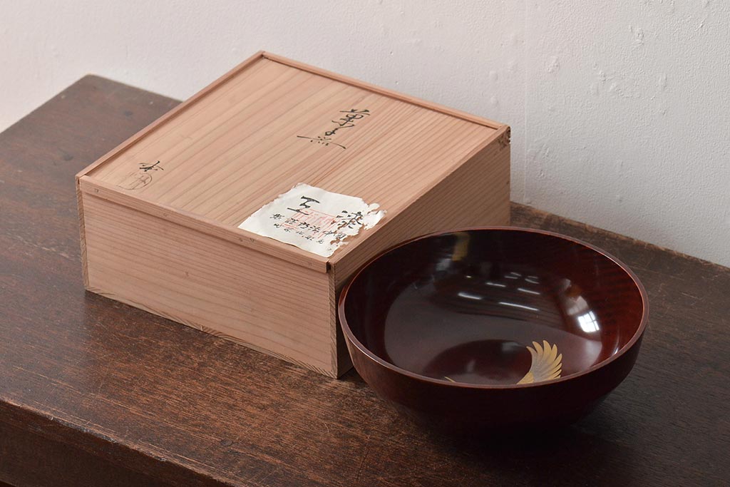 ラフジュ工房> 和食器・茶道具 > アンティーク雑貨 昭和初期 鶴蒔絵 木製菓子器(漆器)(R-043460)